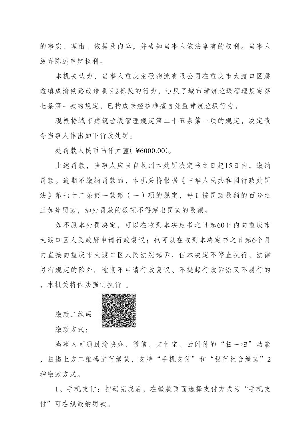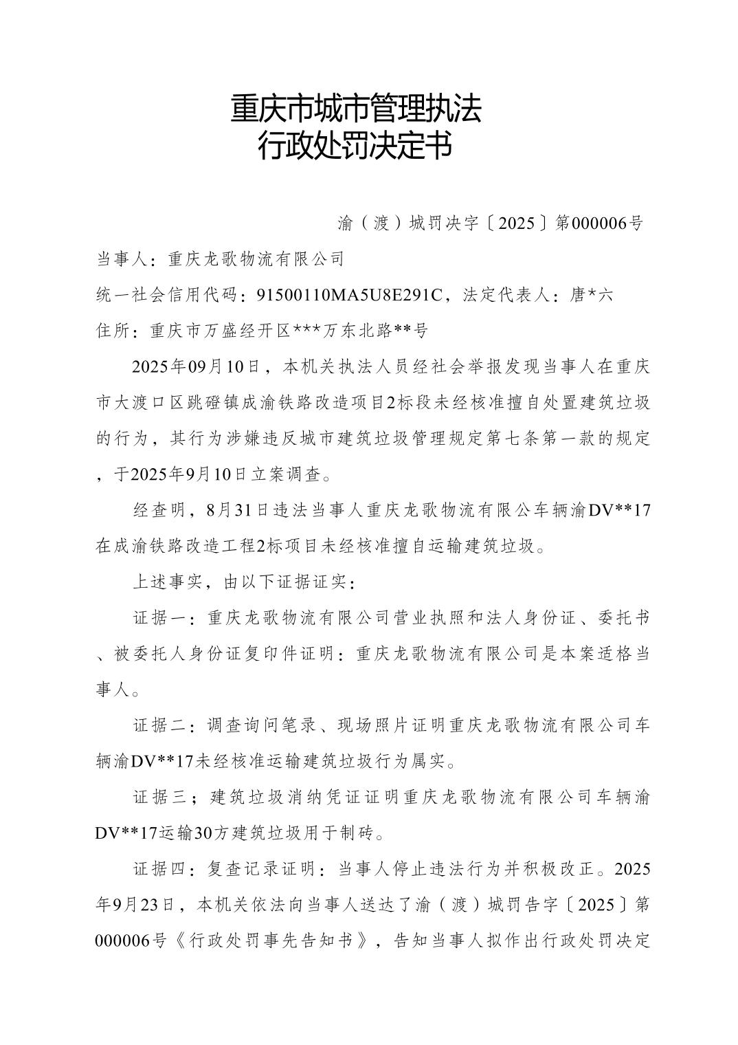 重庆市城市管理执法行政处罚决定书渝(渡)城罚决字〔2025〕第000006号