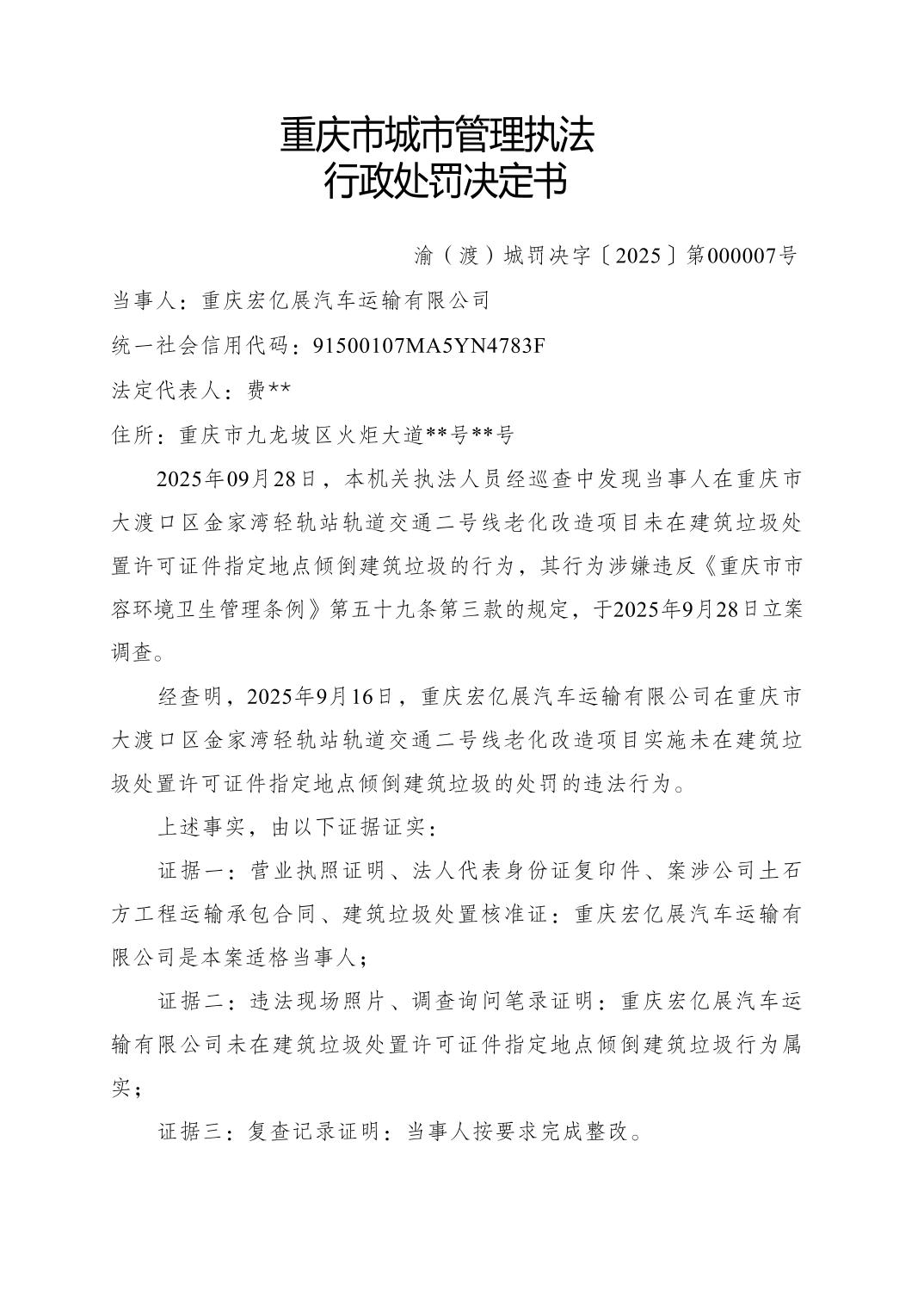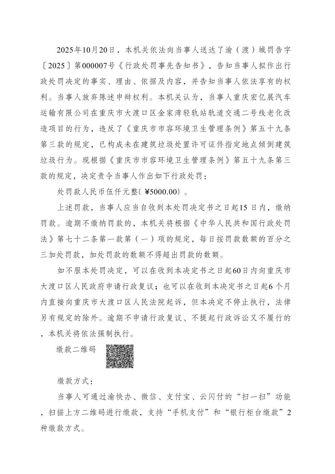重庆市城市管理执法行政处罚决定书渝(渡)城罚决字〔2025〕第000007号