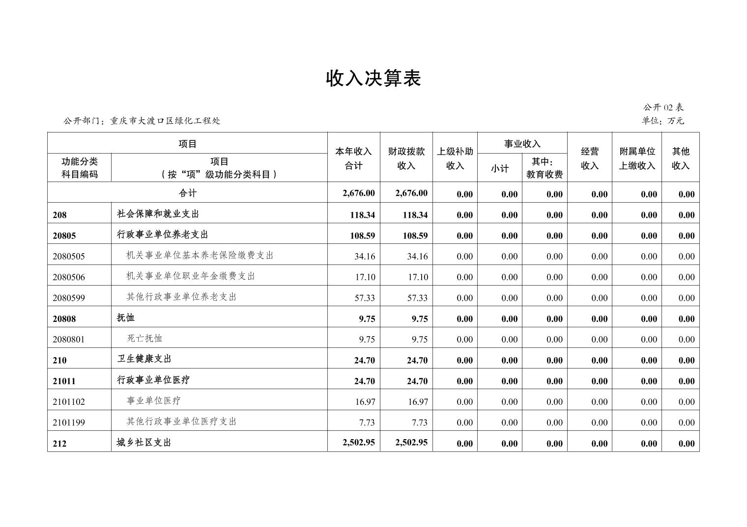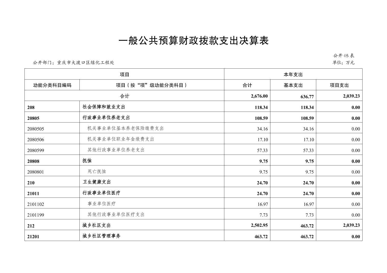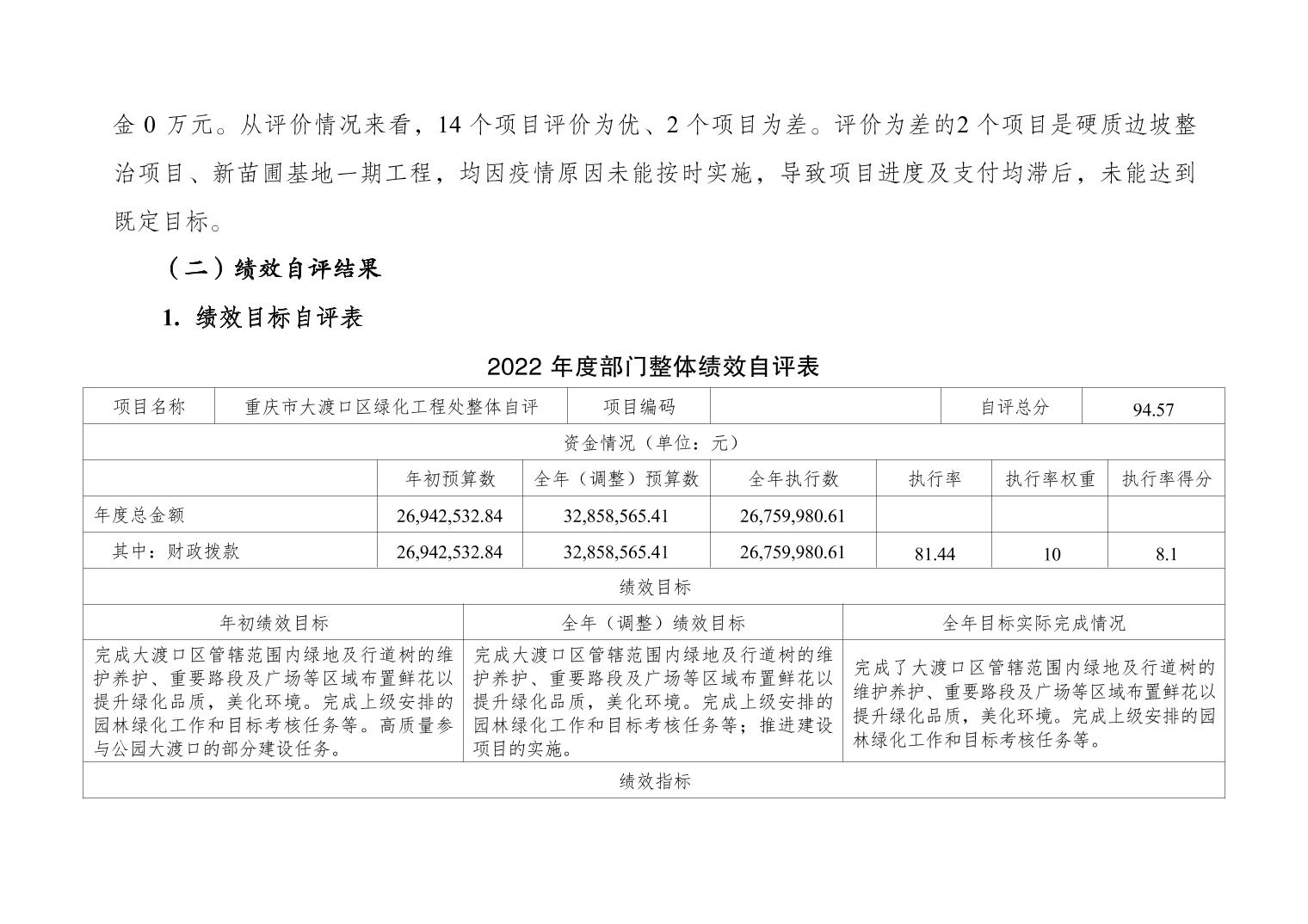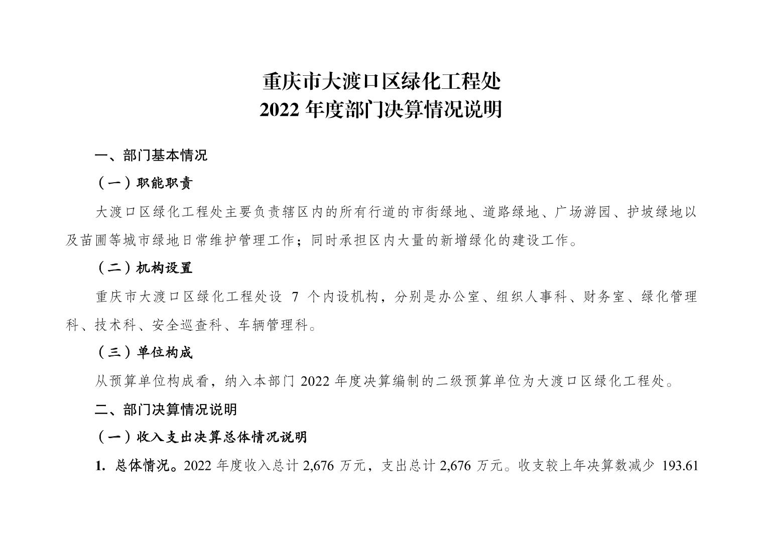 重庆市大渡口区绿化工程处2022年度部门决算情况说明