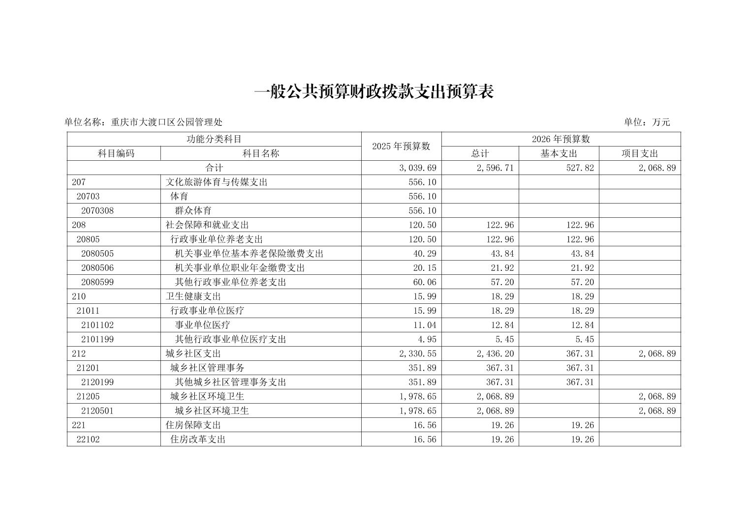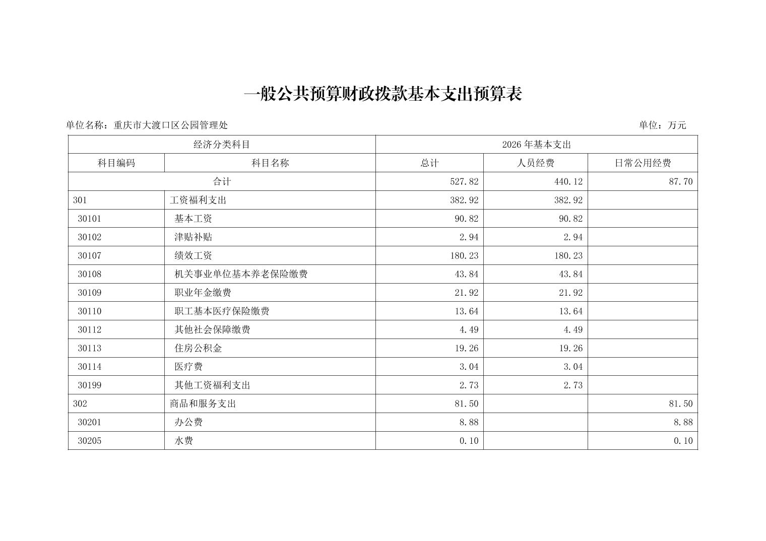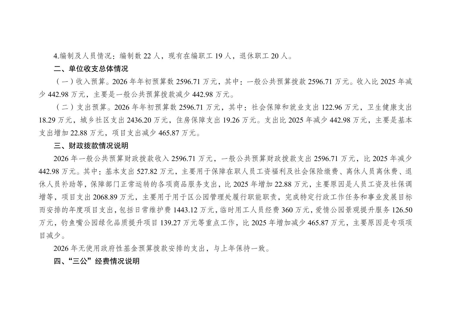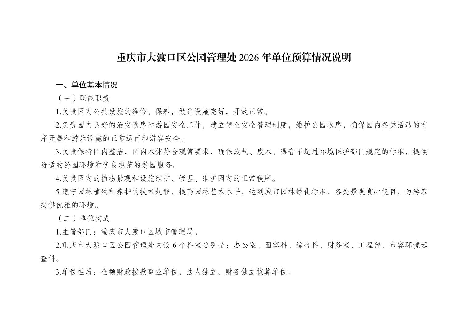 重庆市大渡口区公园管理处2026年单位预算情况说明