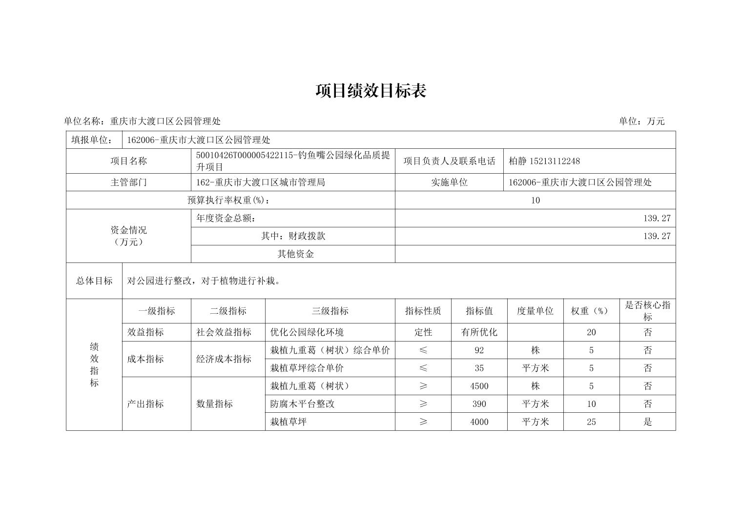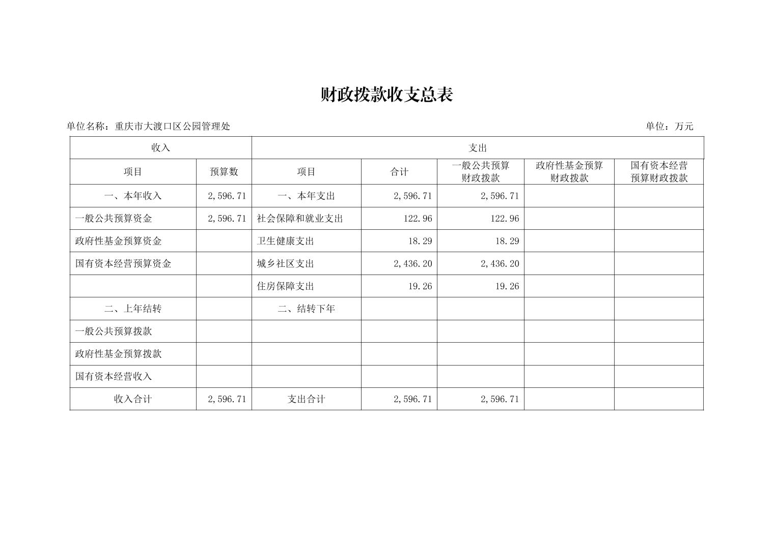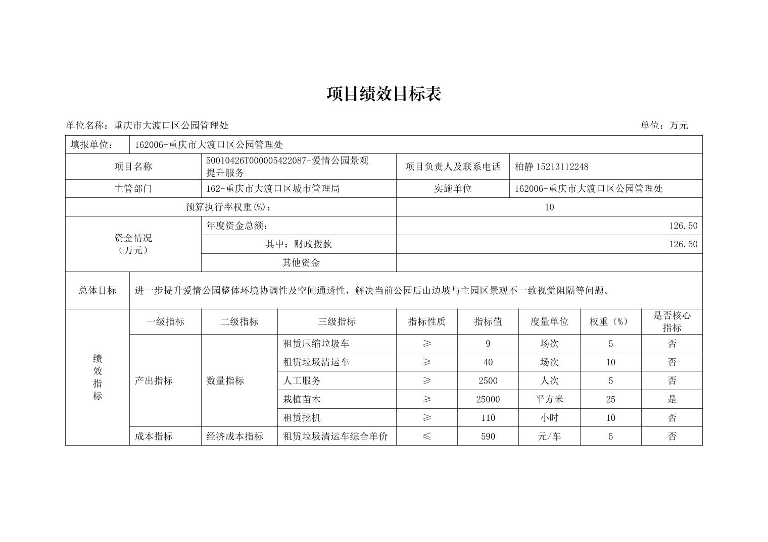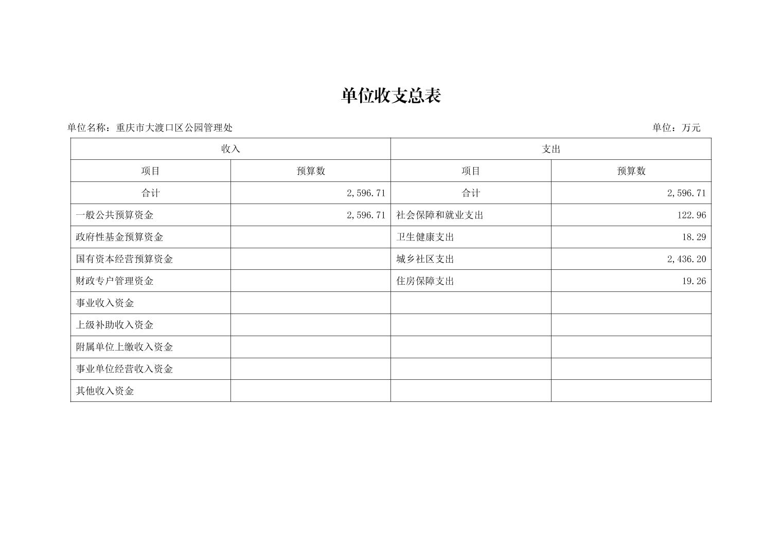 重庆市大渡口区公园管理处2026年单位预算情况说明