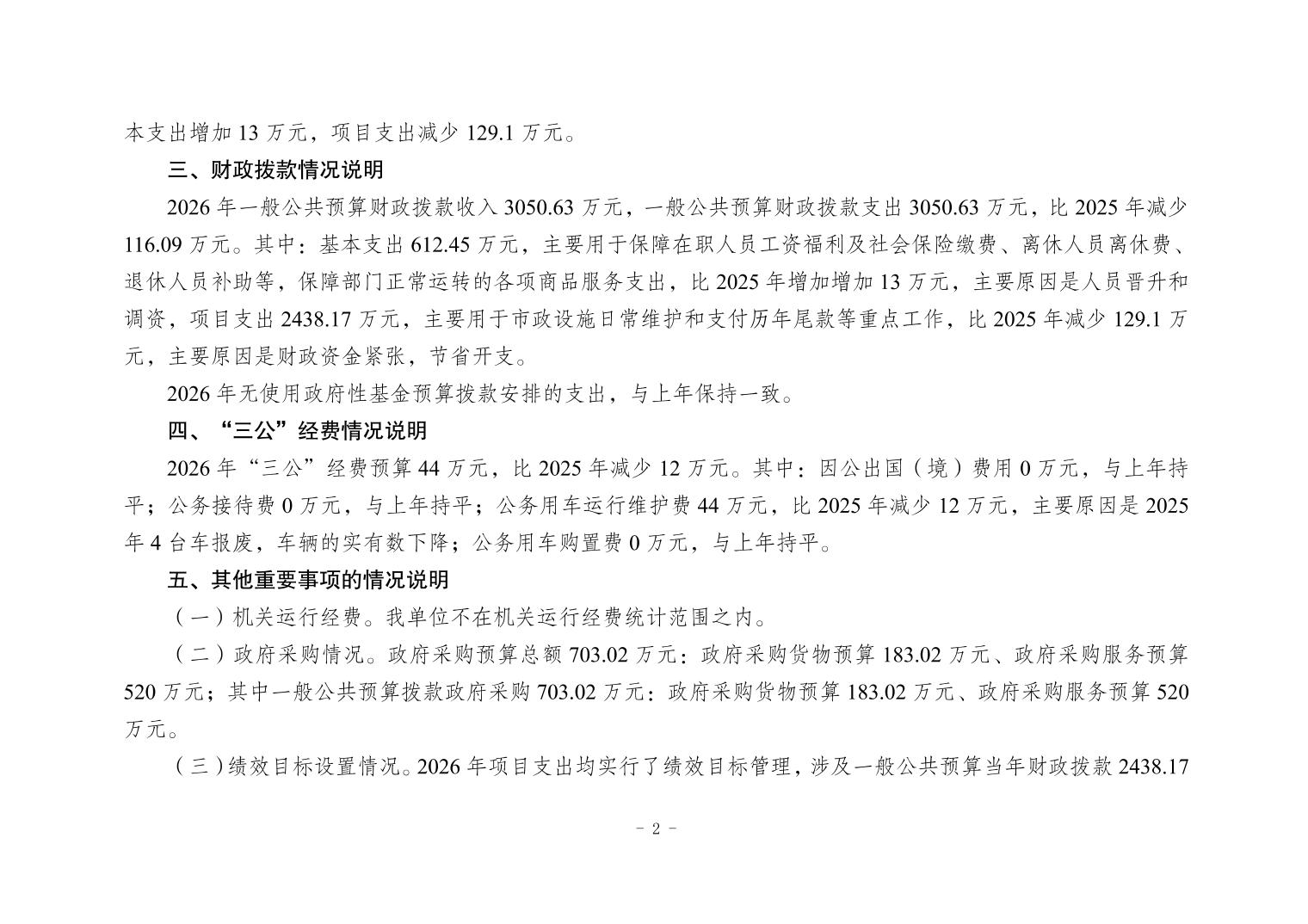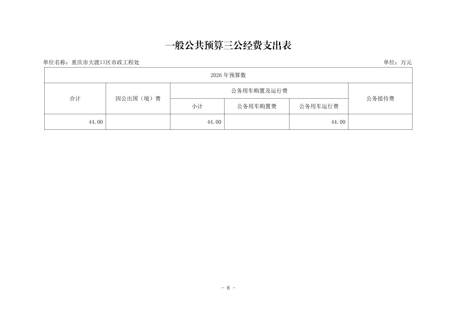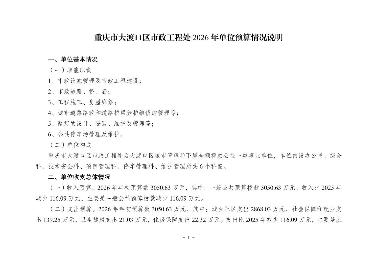重庆市大渡口区市政工程处2026年单位预算情况说明