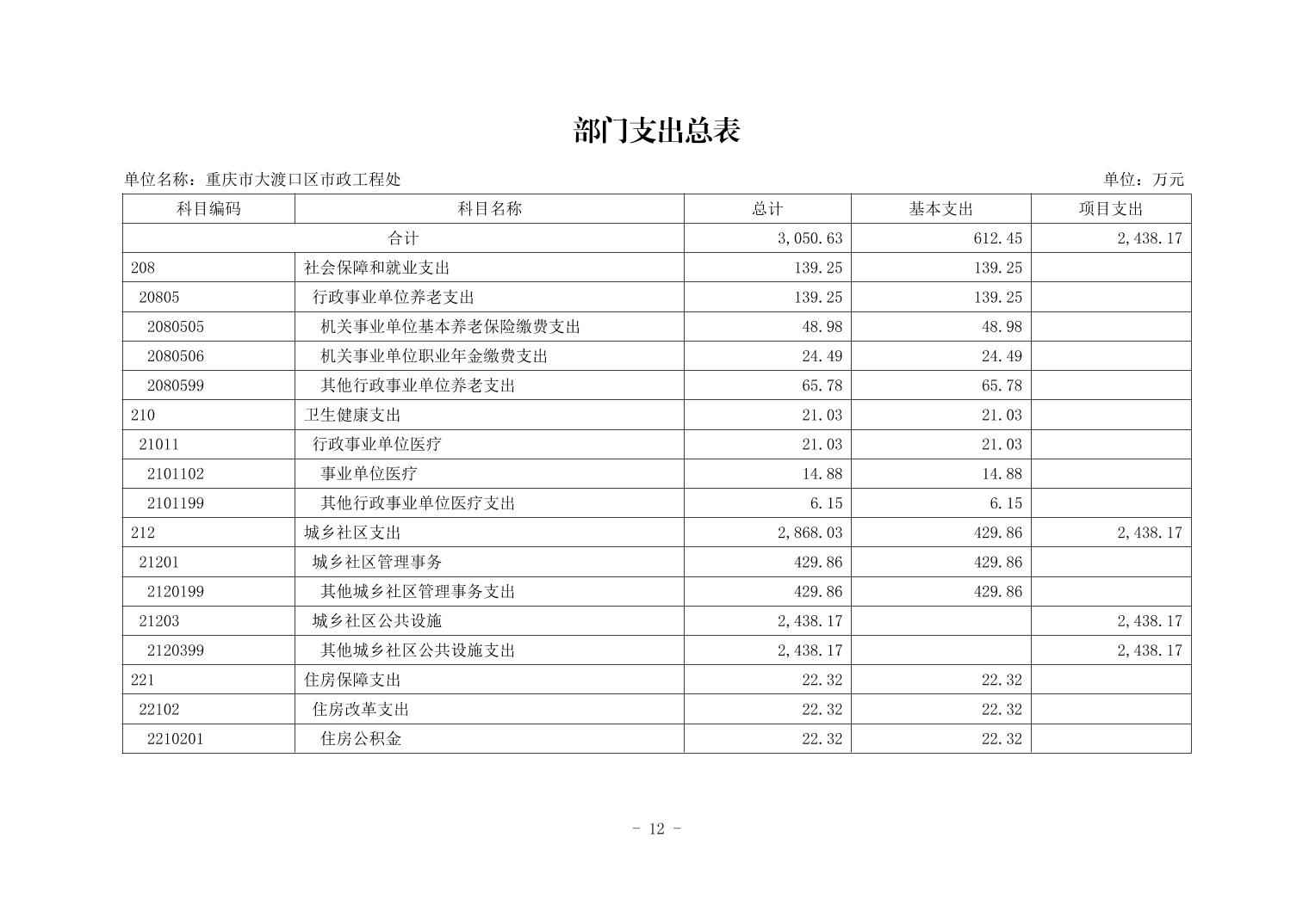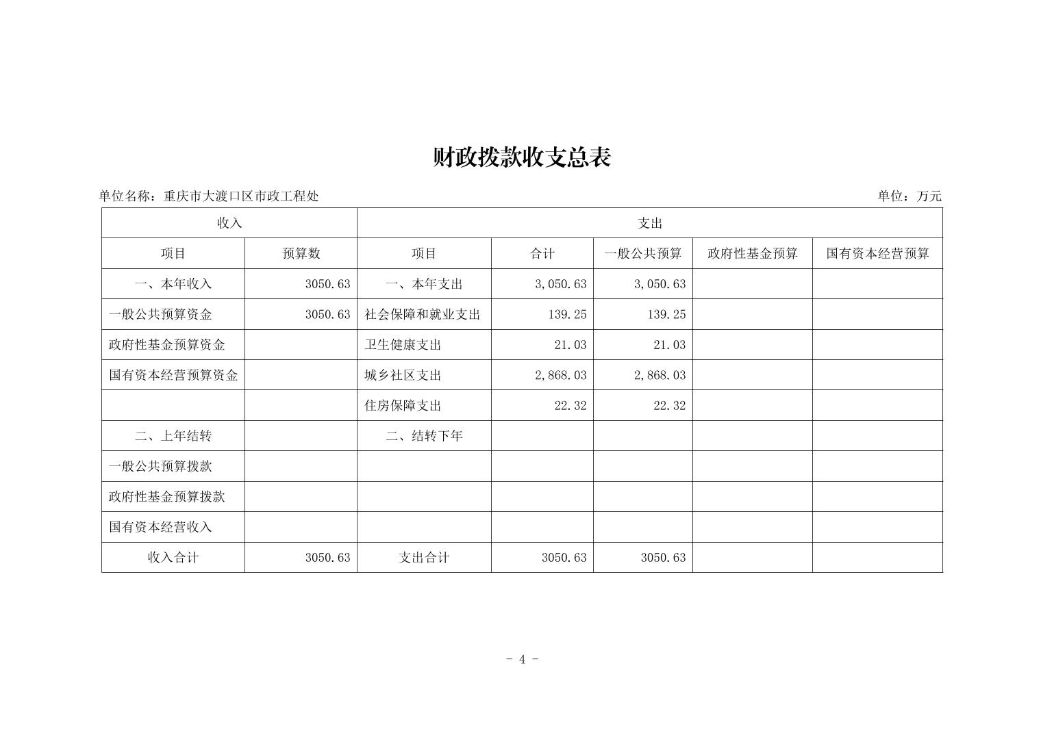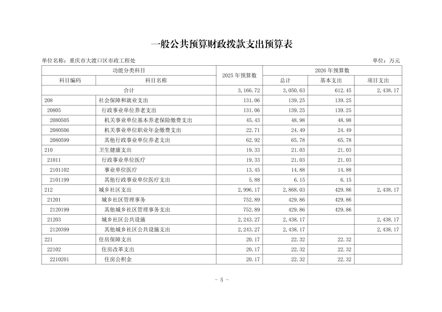 重庆市大渡口区市政工程处2026年单位预算情况说明