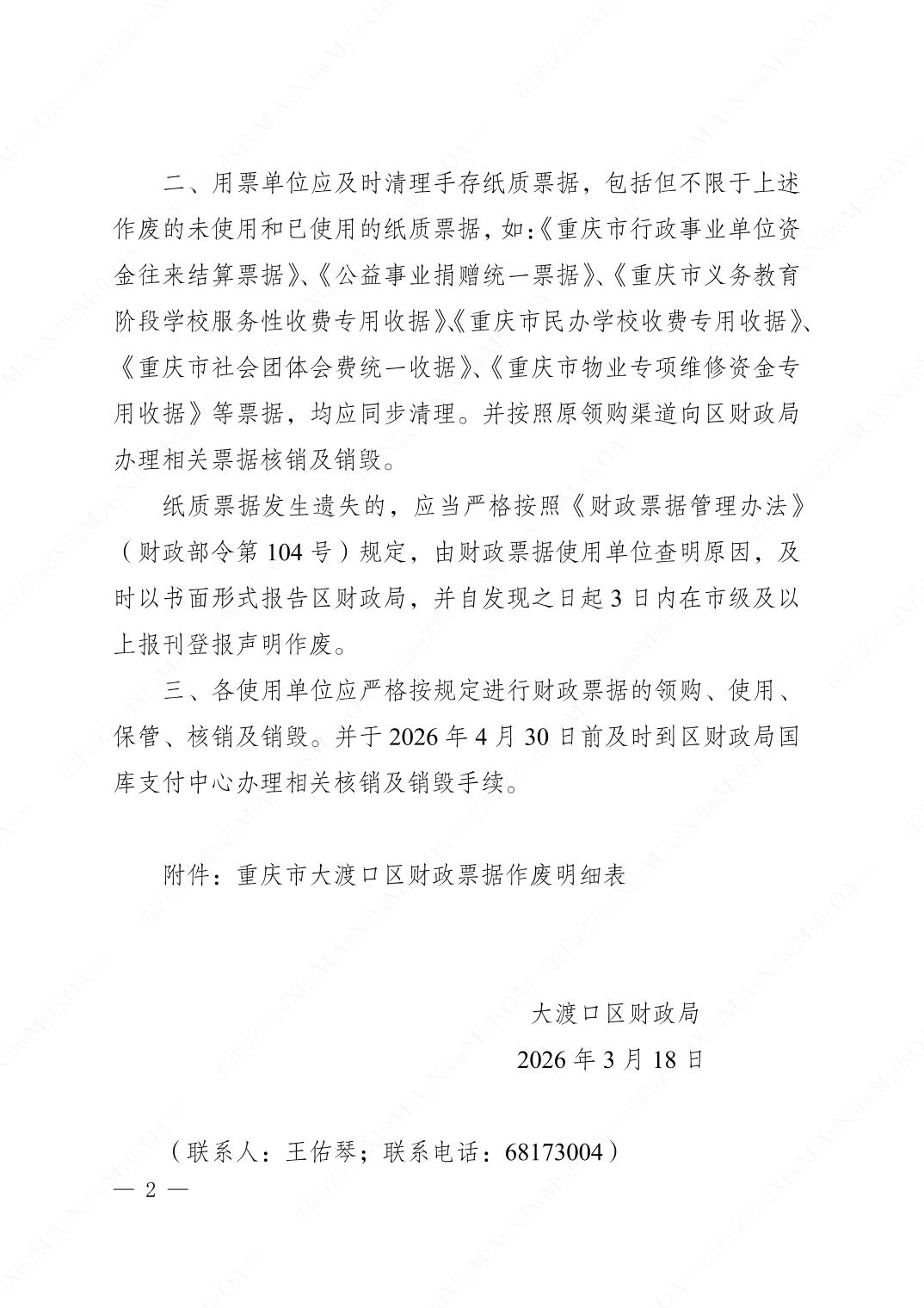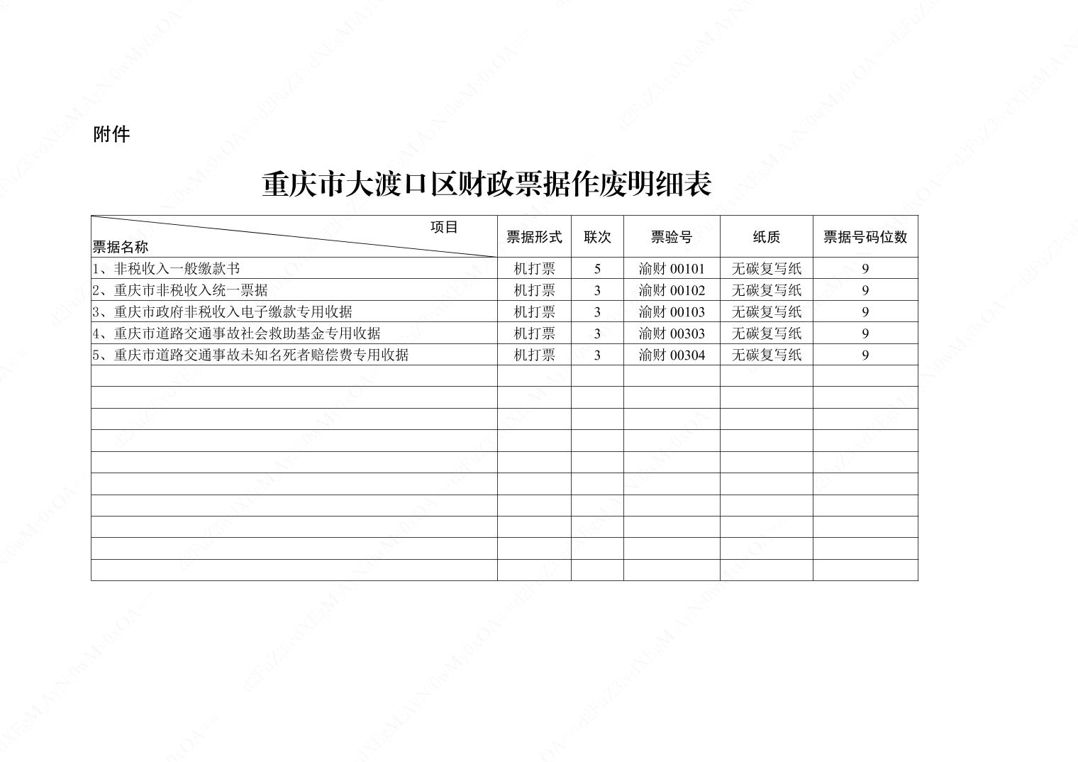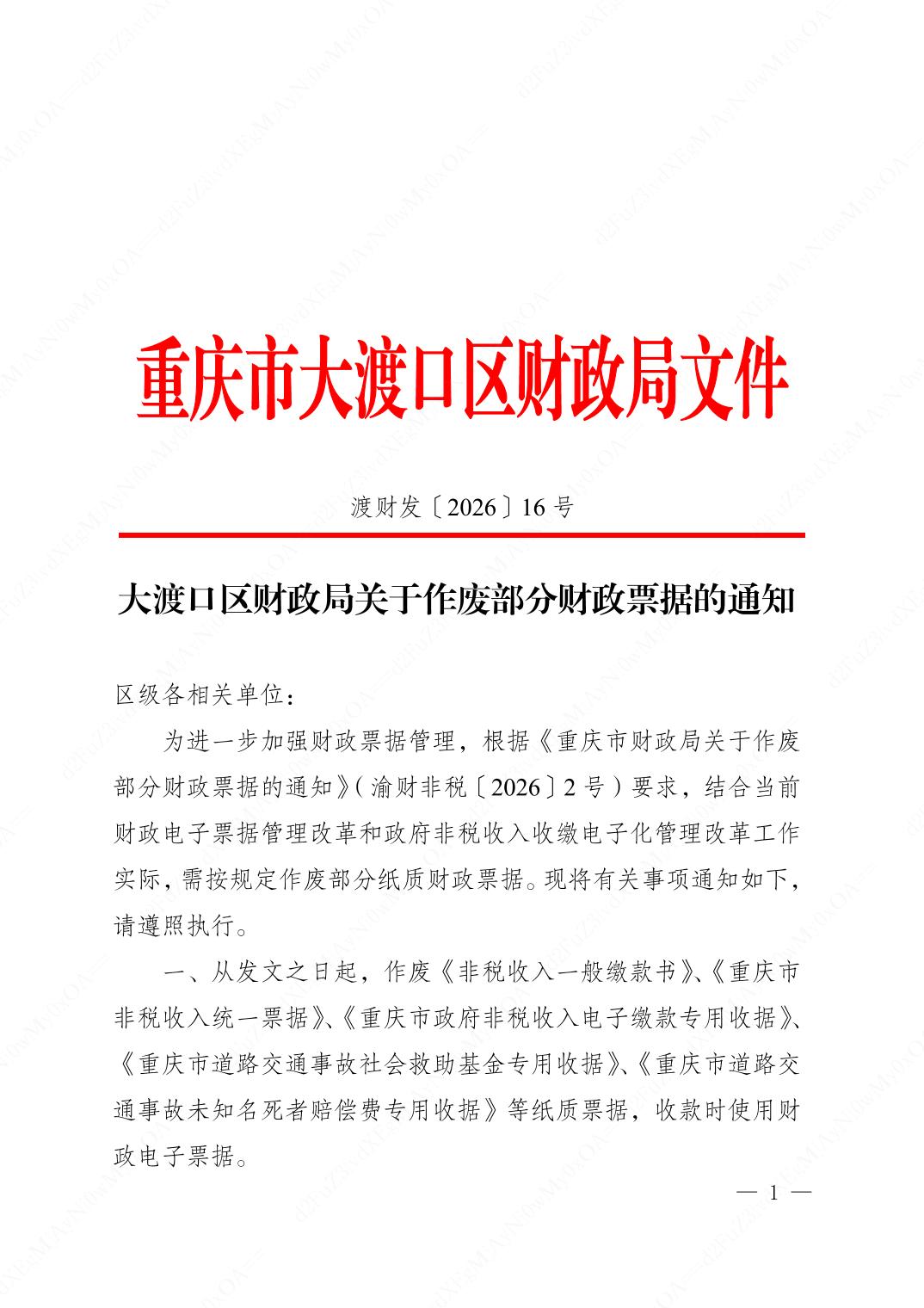 大渡口区财政局关于作废部分财政票据的通知