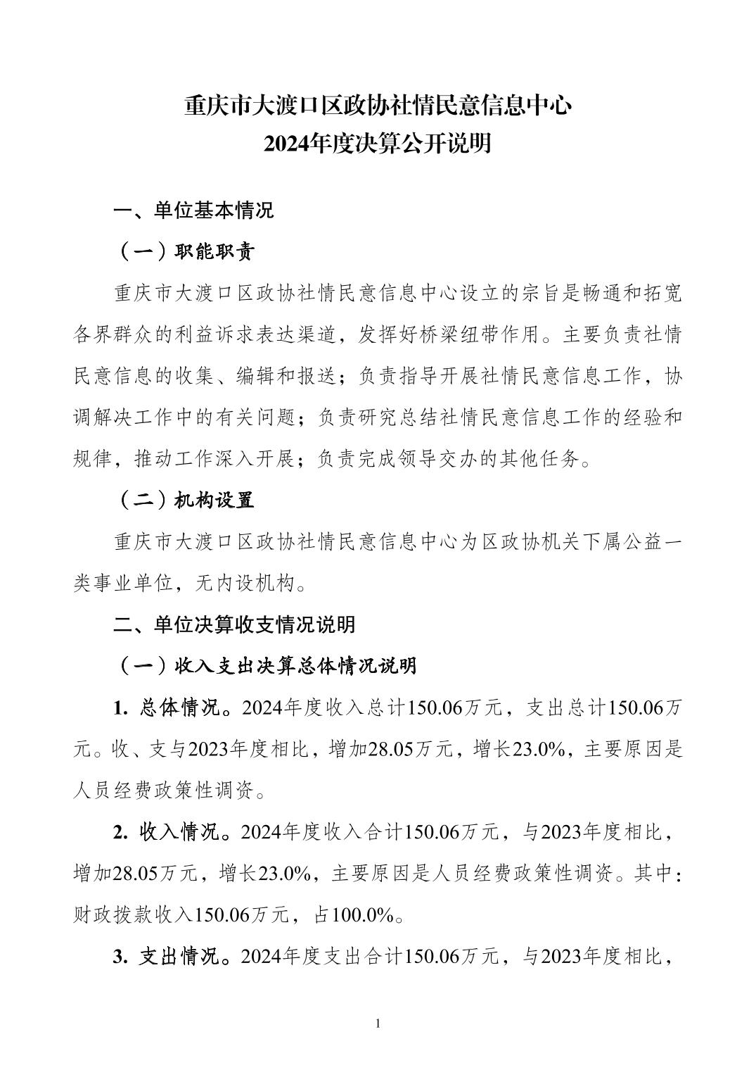 重庆市大渡口区政协社情民意信息中心2024年度决算公开说明