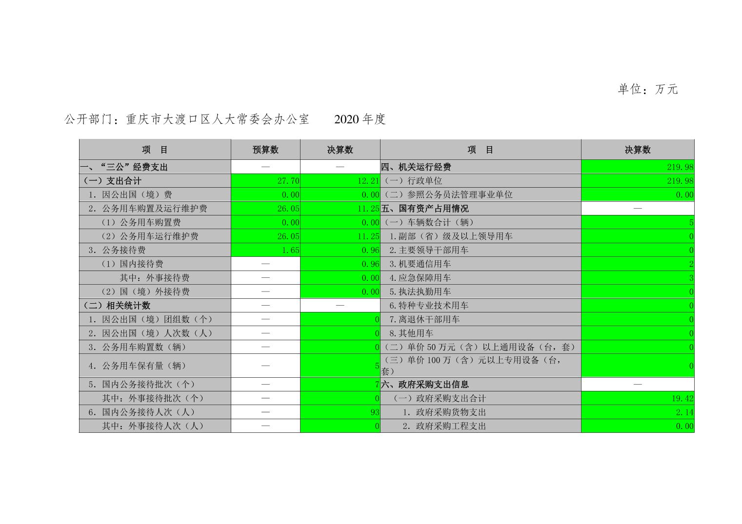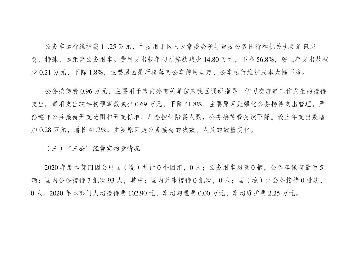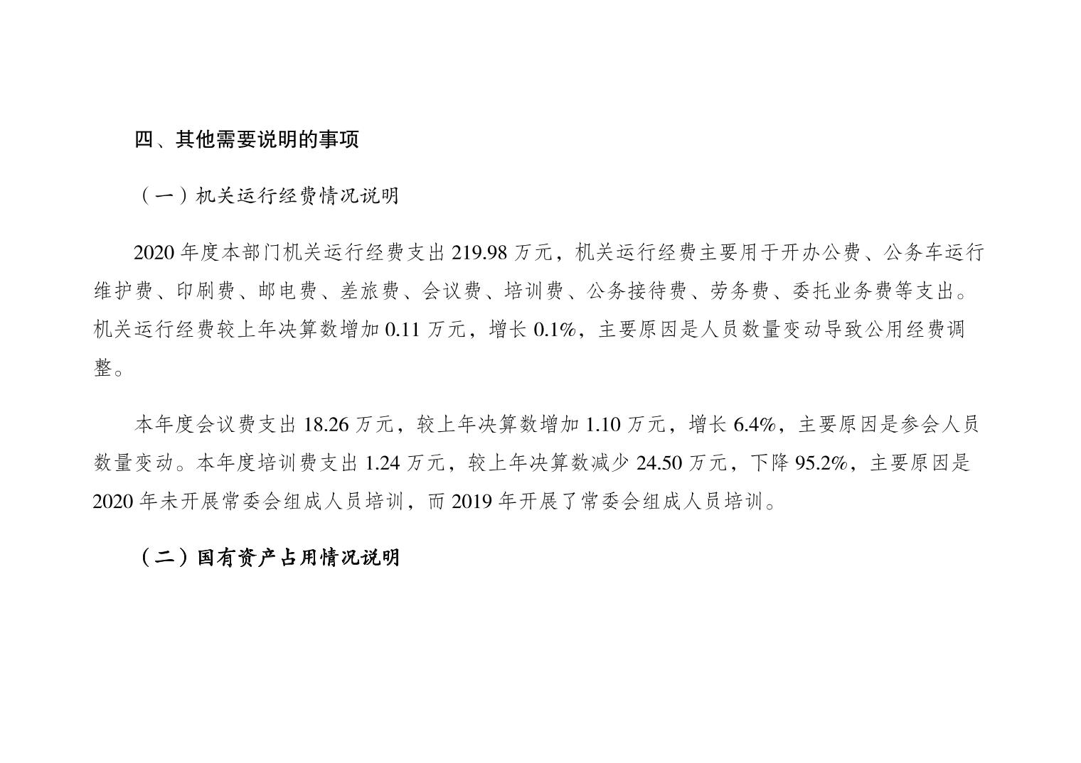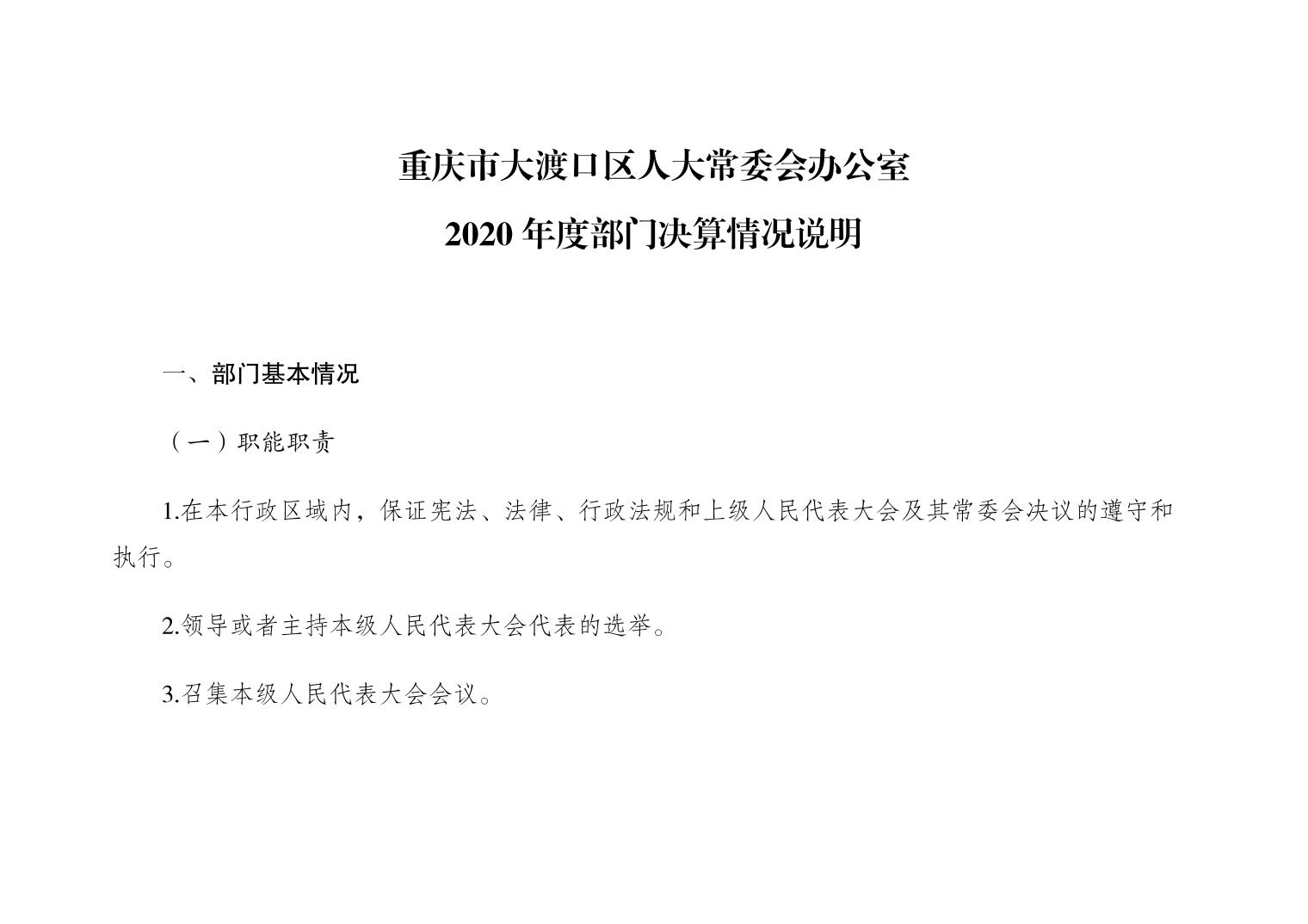 重庆市大渡口区人大常委会办公室2020年部门决算情况说明