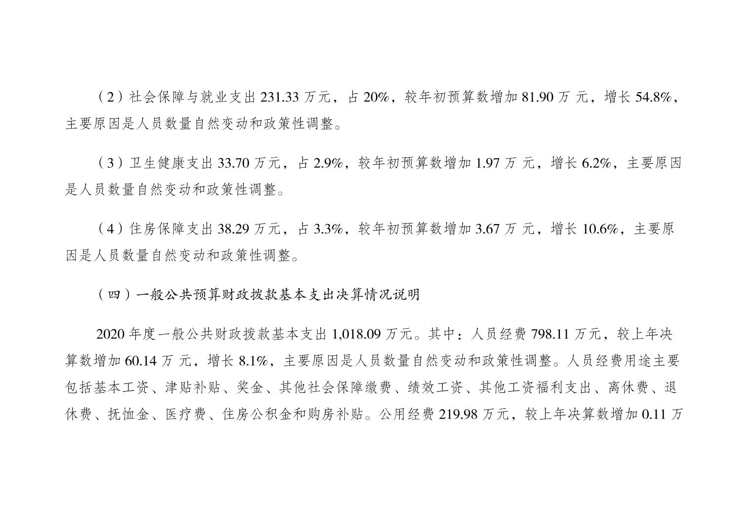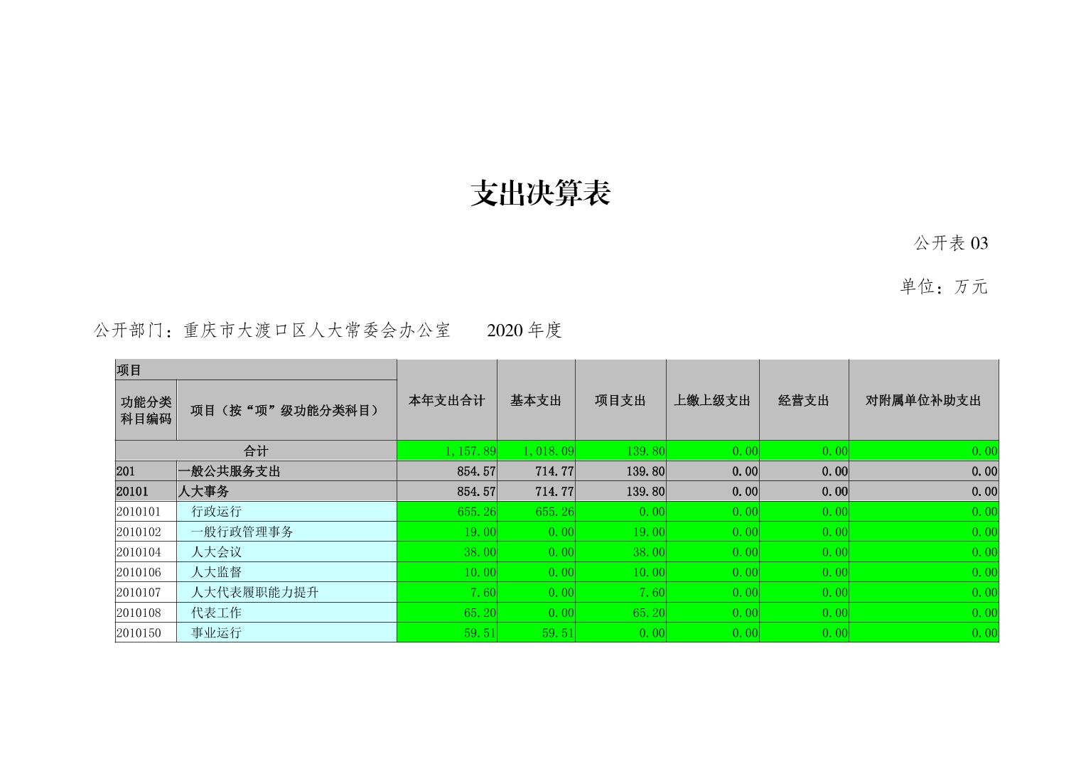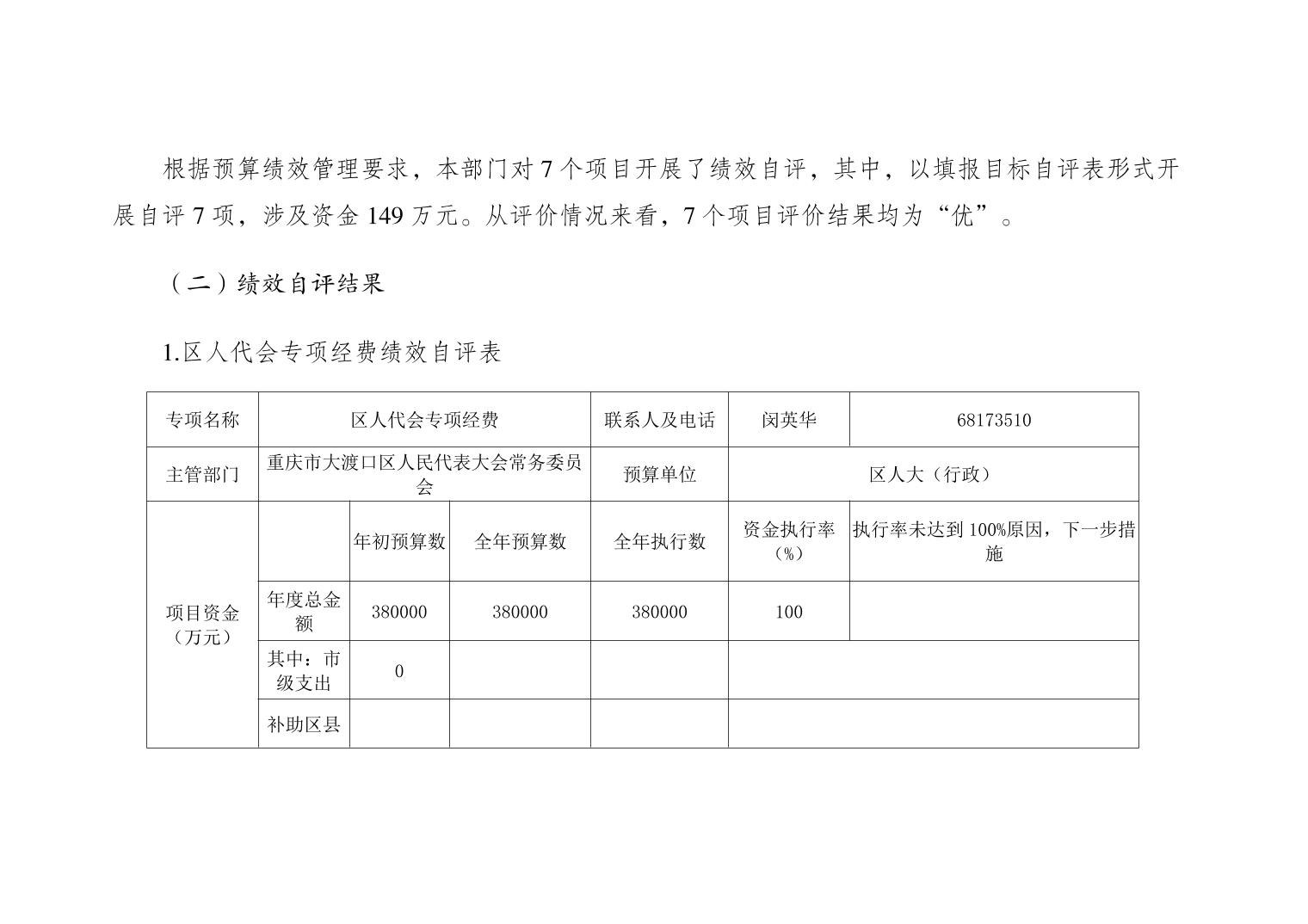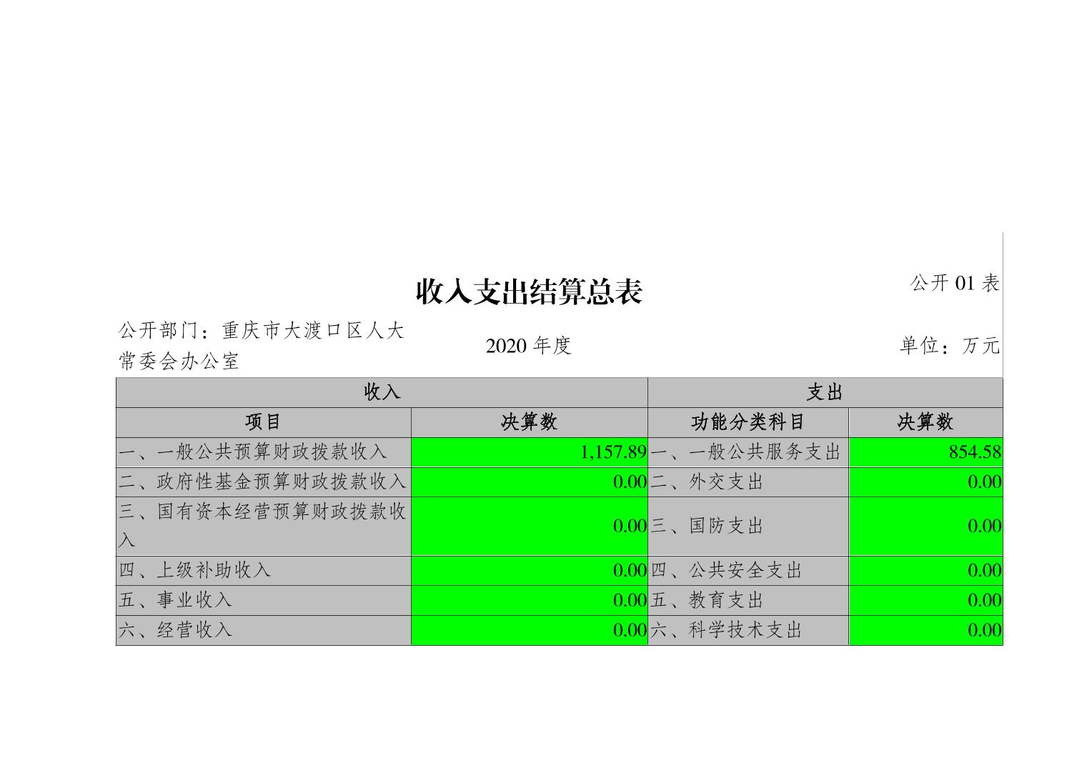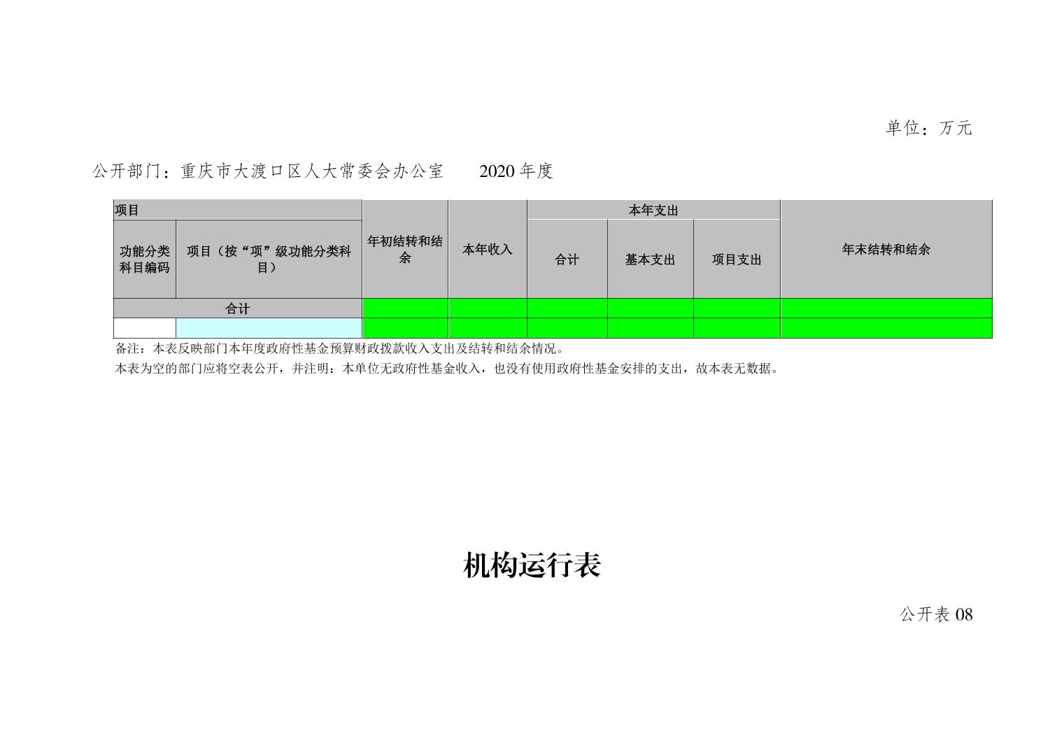 重庆市大渡口区人大常委会办公室2020年部门决算情况说明