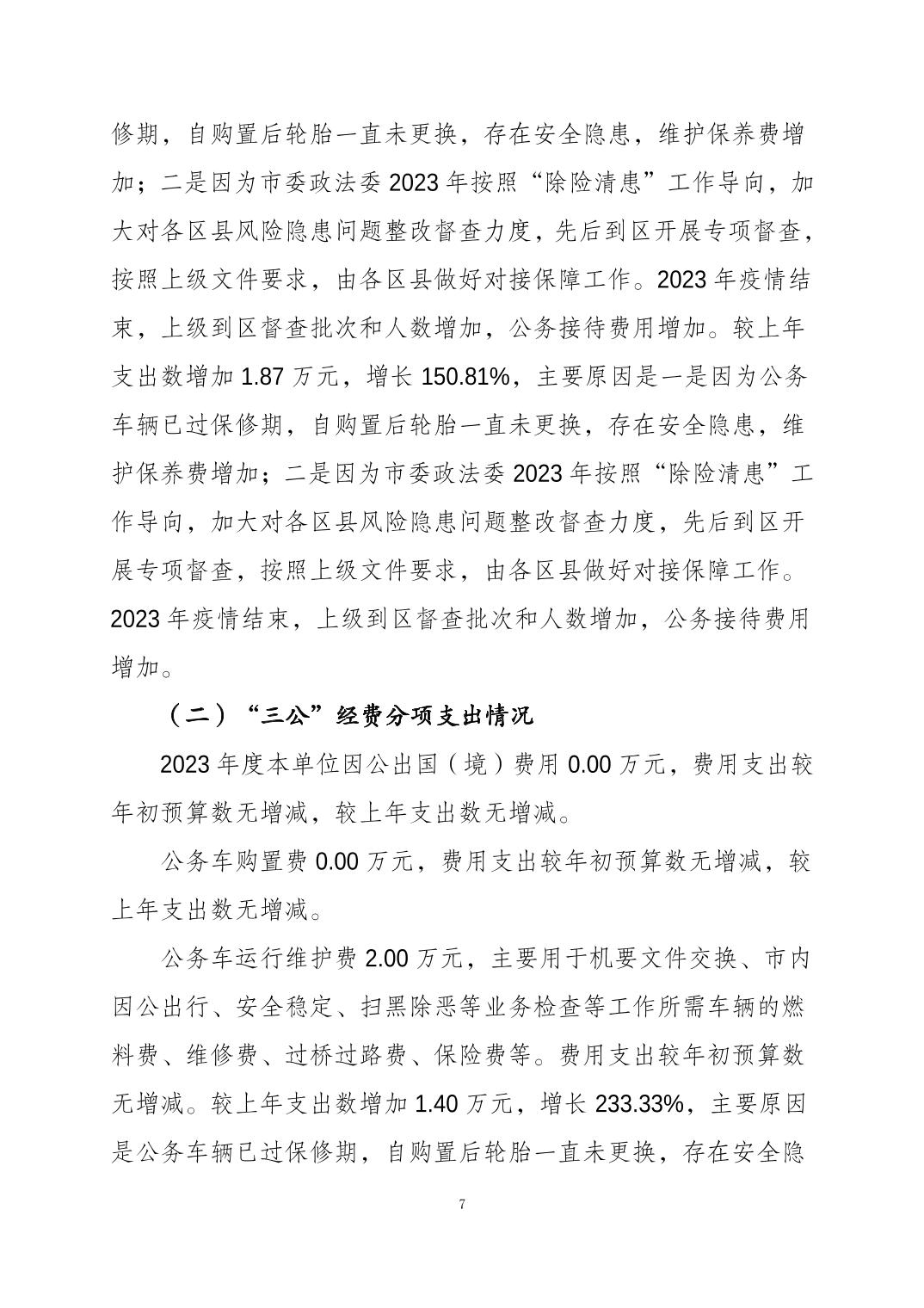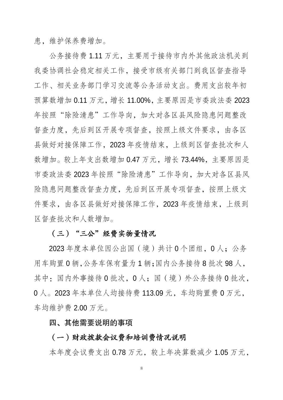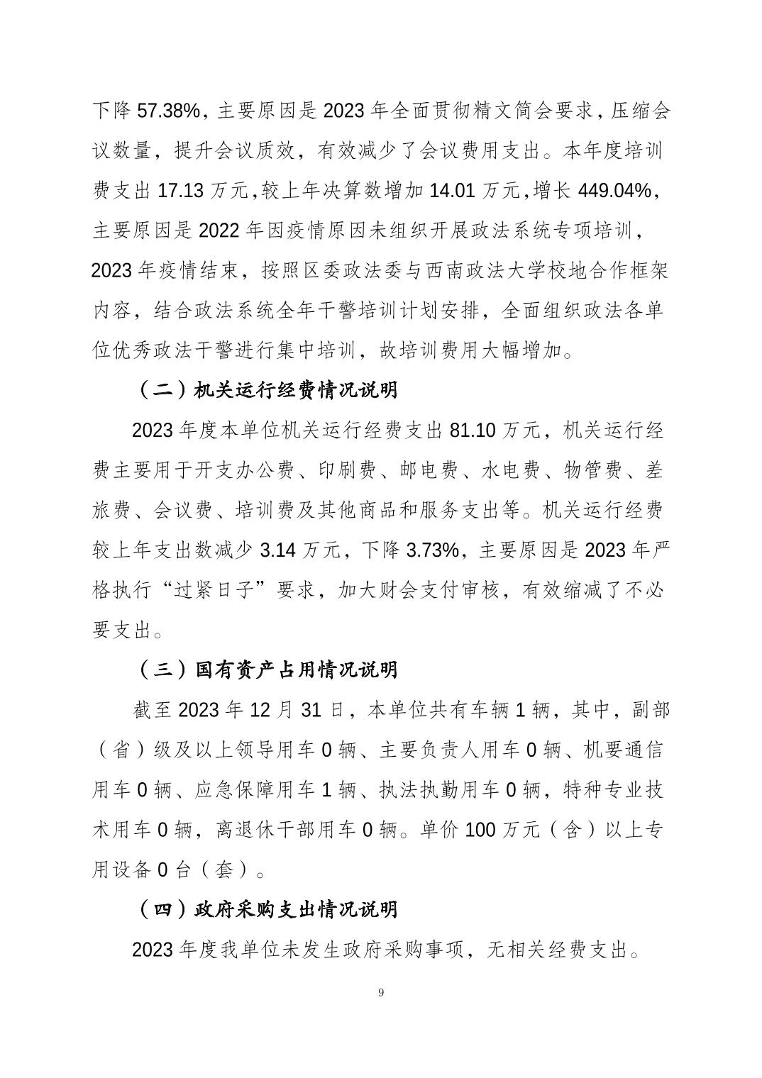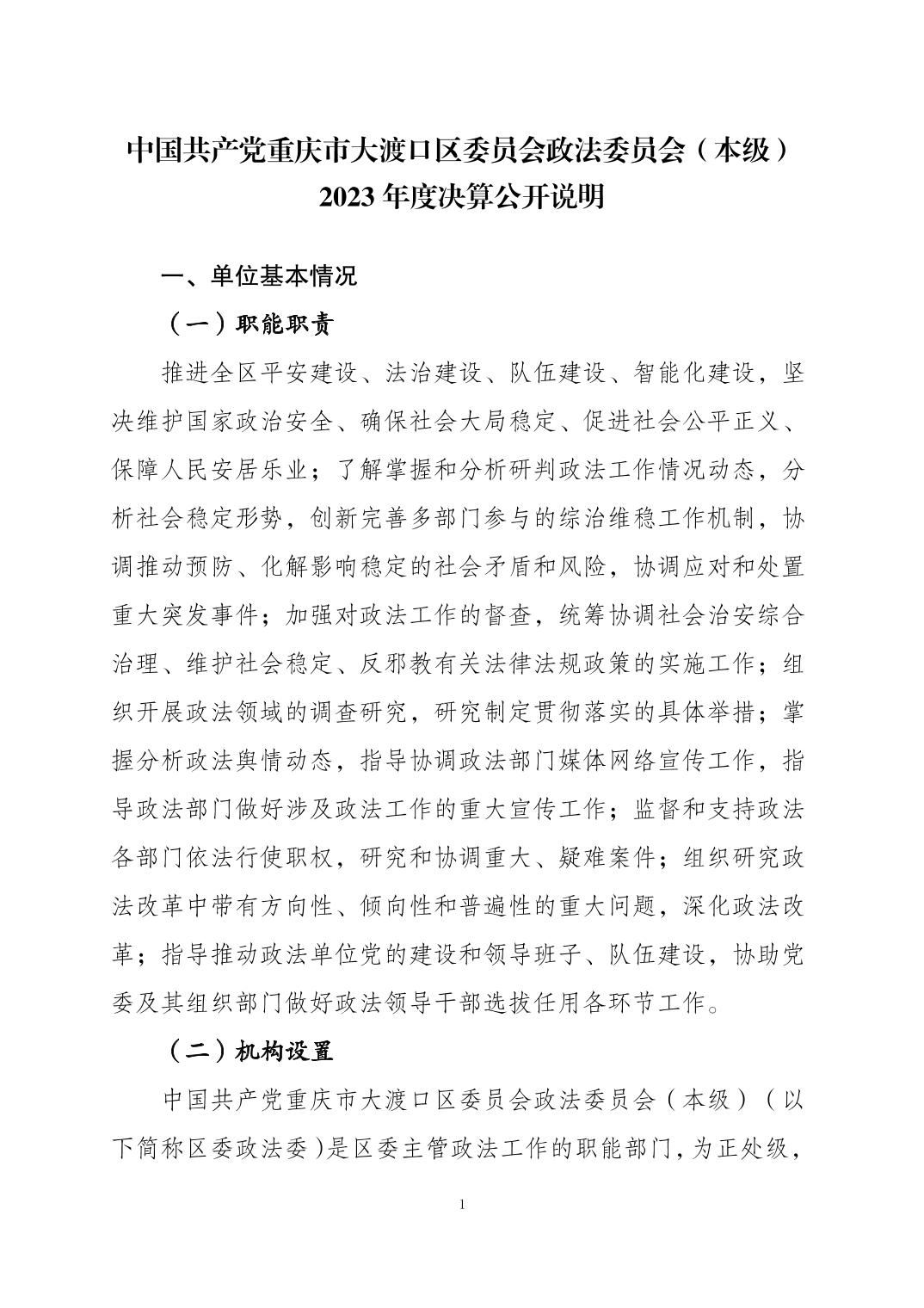 中国共产党重庆市大渡口区委员会政法委员会(本级)2023年度决算公开说明
