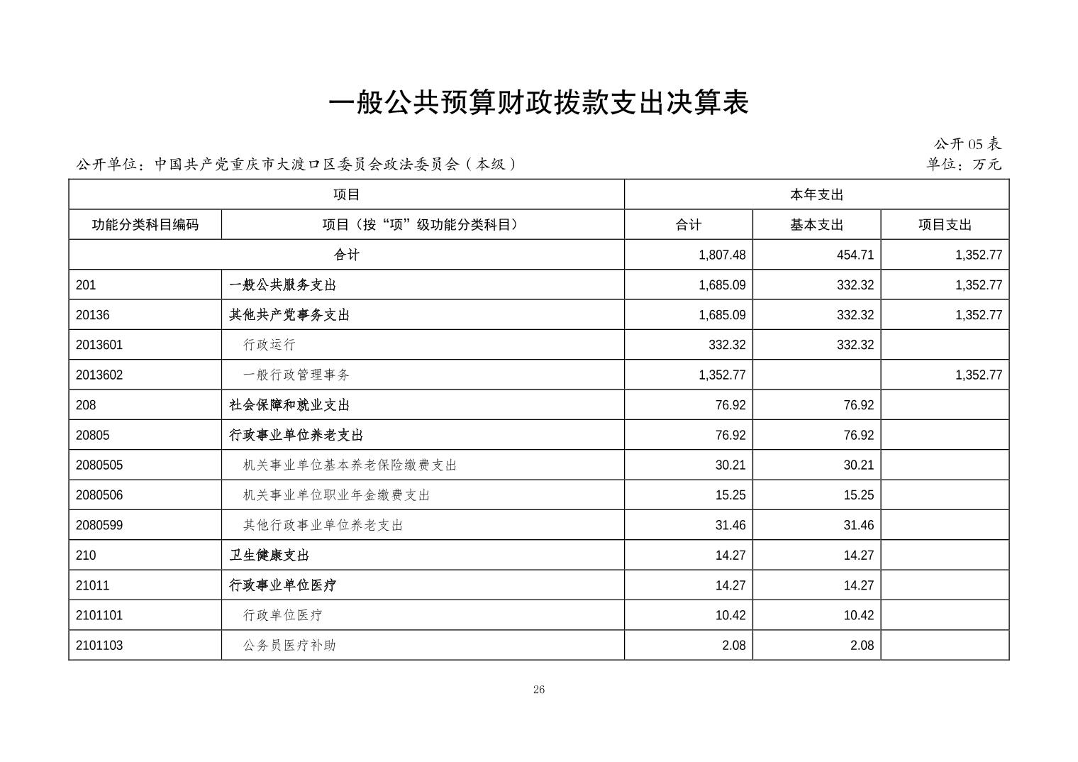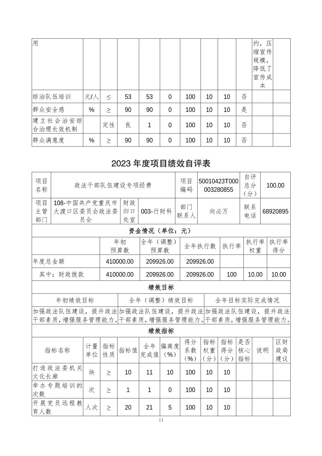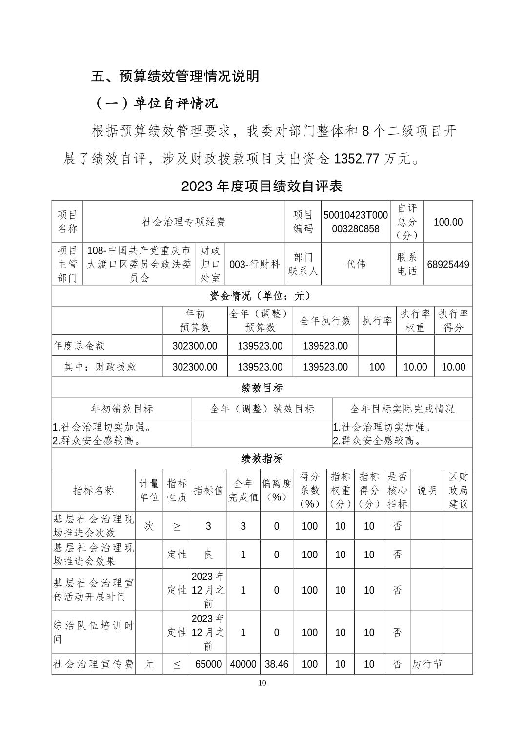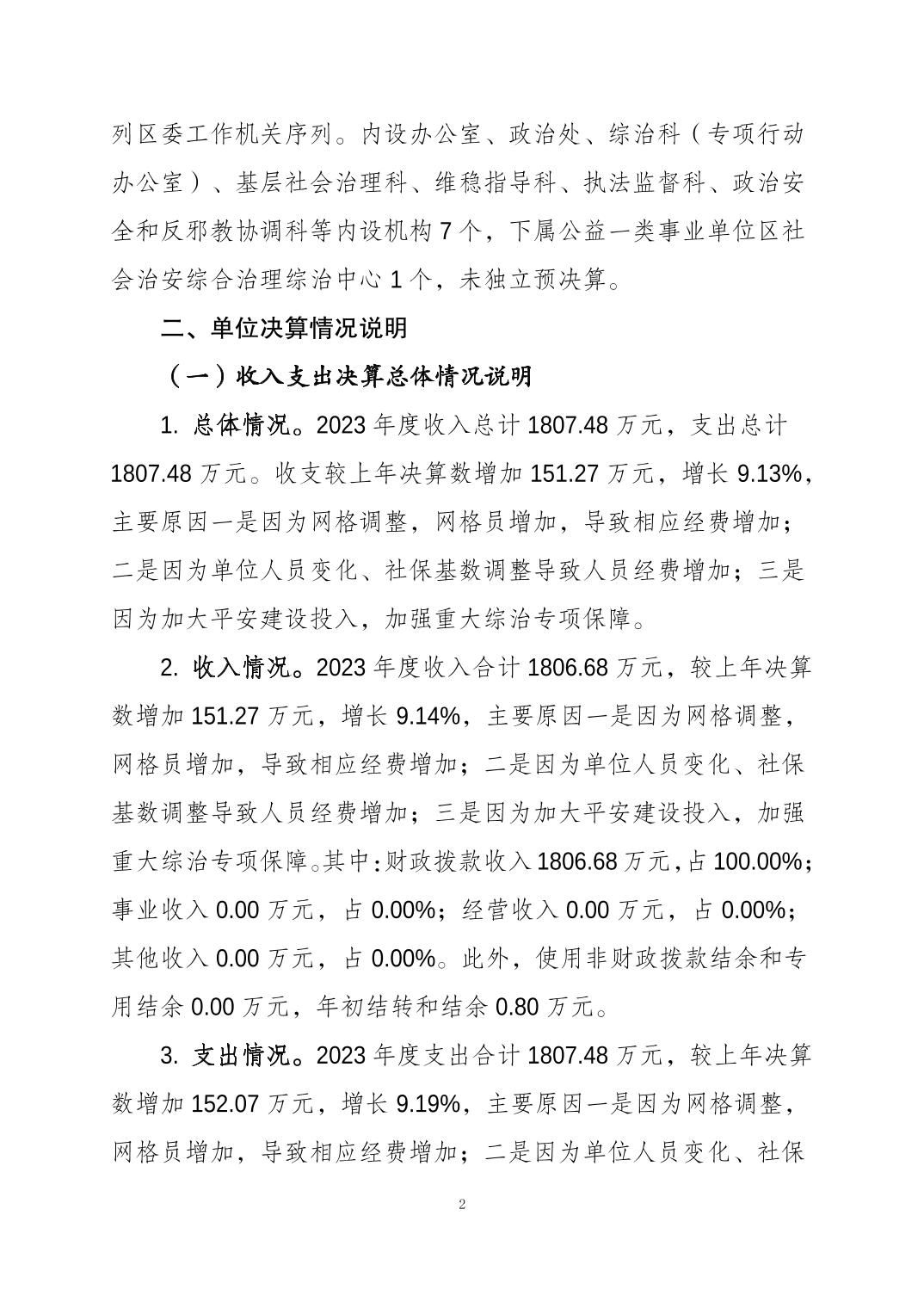 中国共产党重庆市大渡口区委员会政法委员会(本级)2023年度决算公开说明