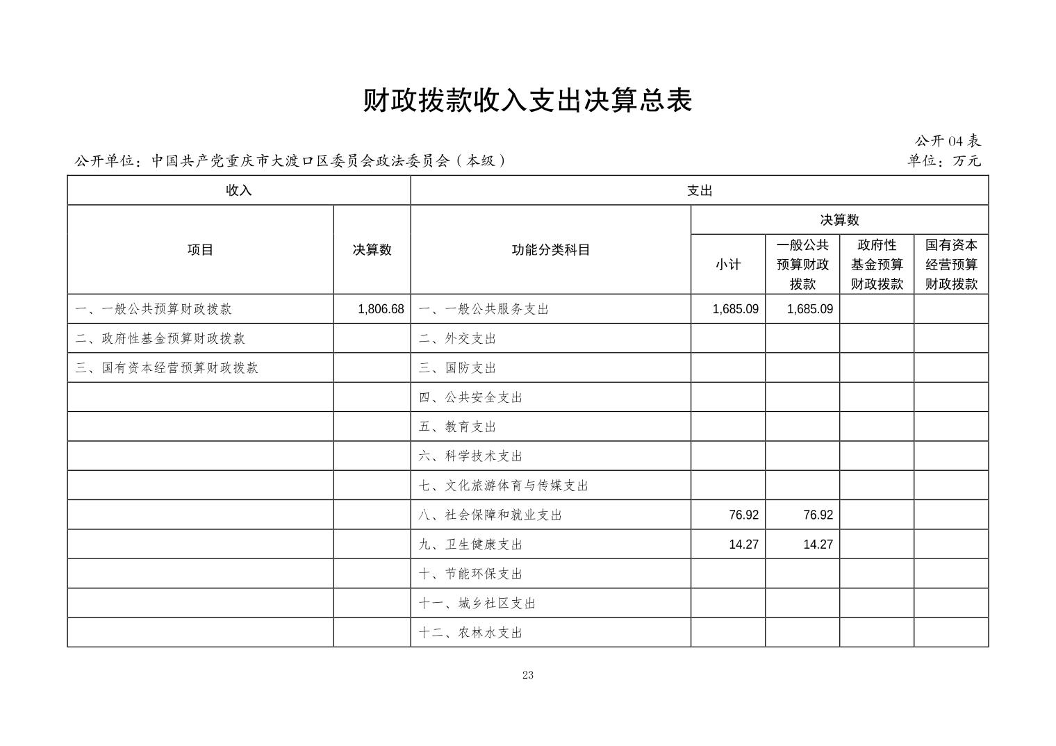 | [ 主题分类 ] | 财政 | [ 体裁分类 ] | 财政预算、决算 |