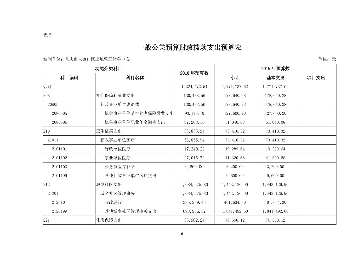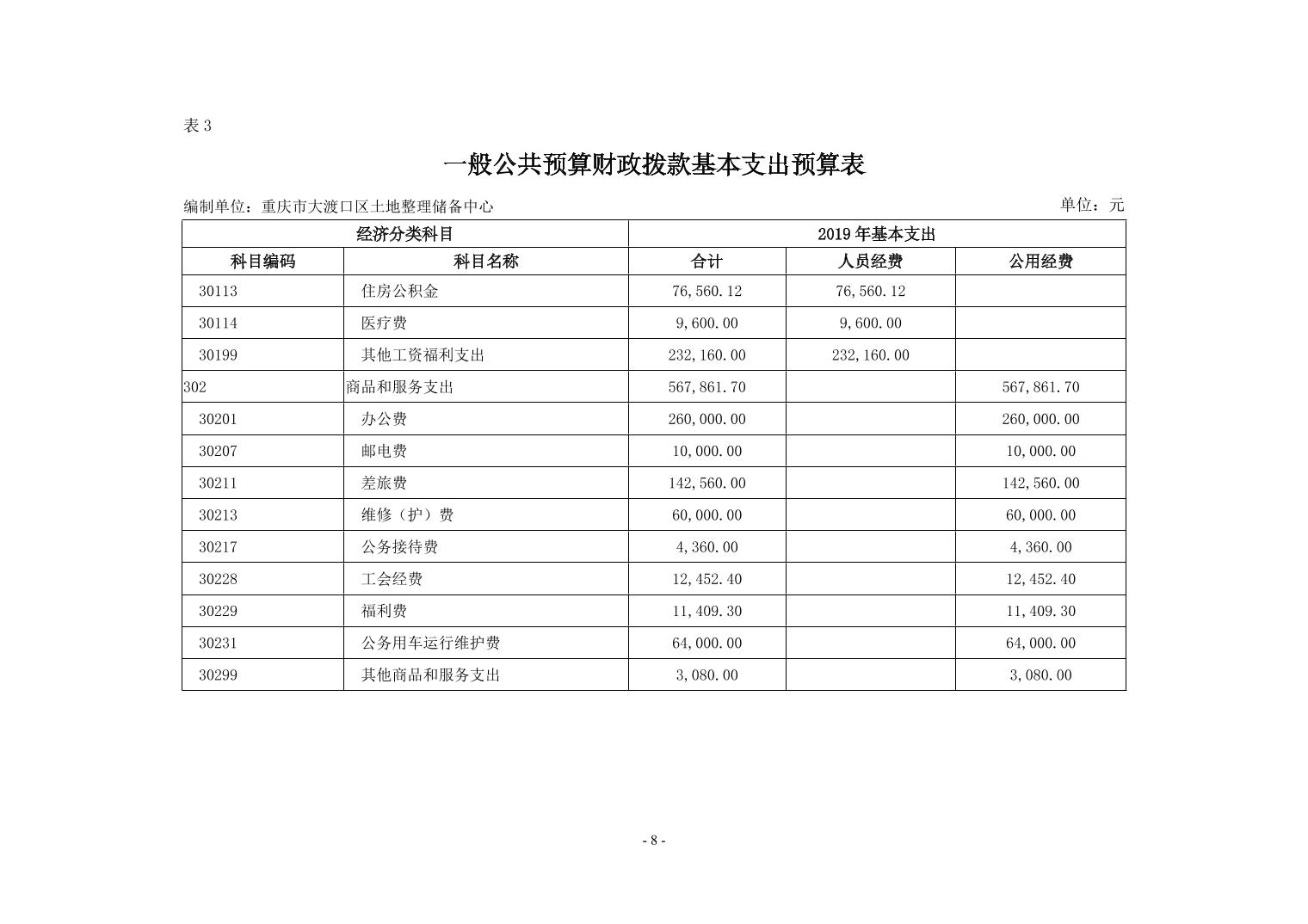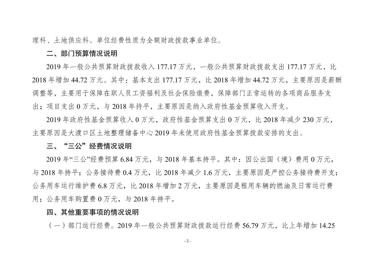 重庆市大渡口区土地整理储备中心2019年部门预算情况说明