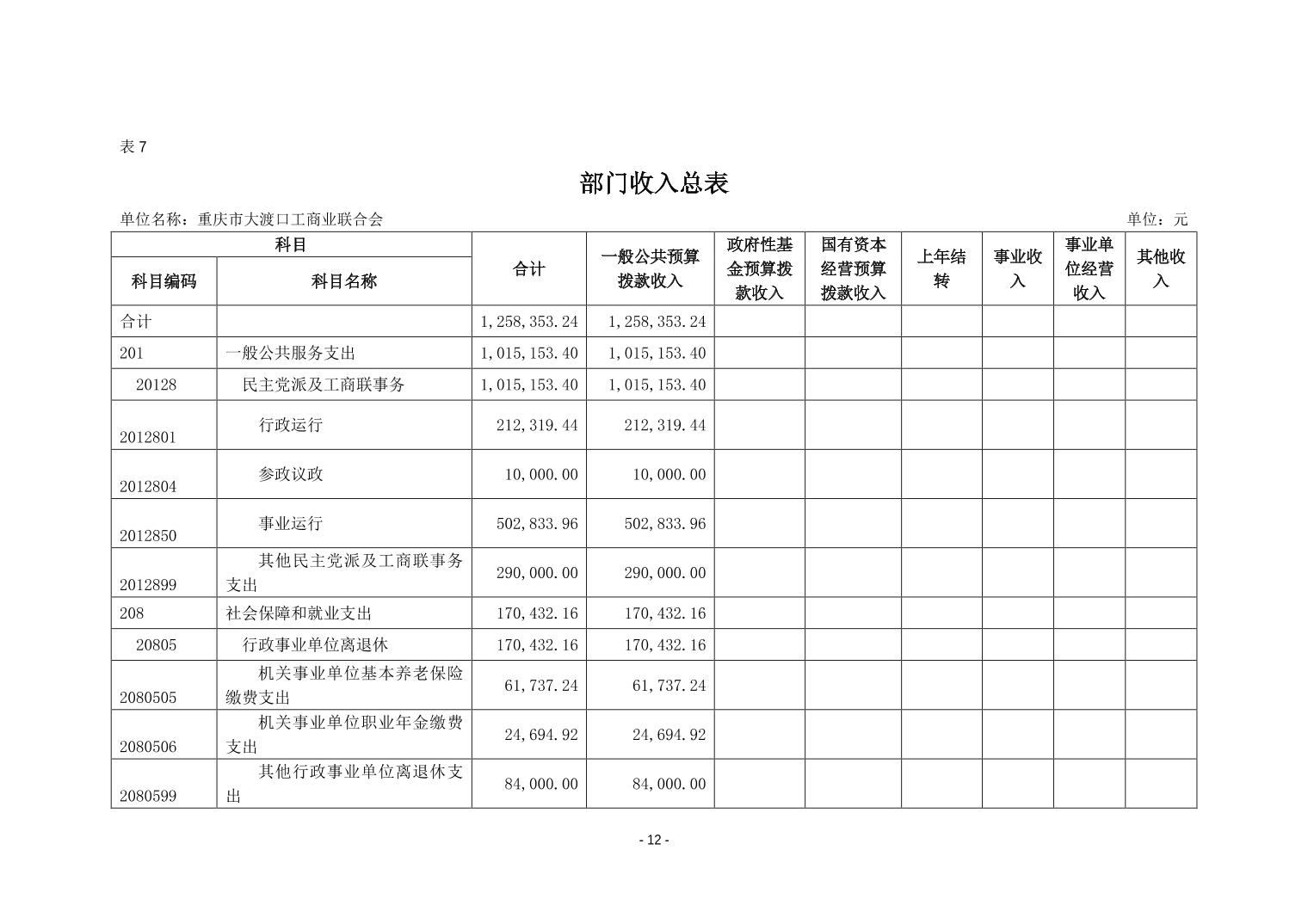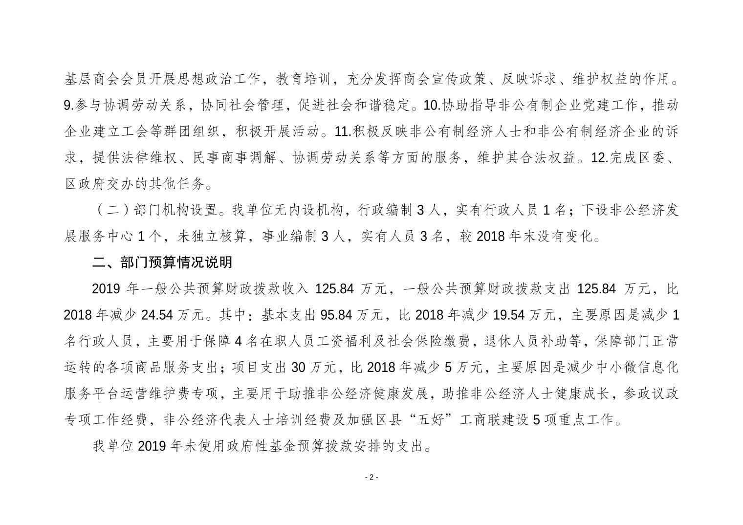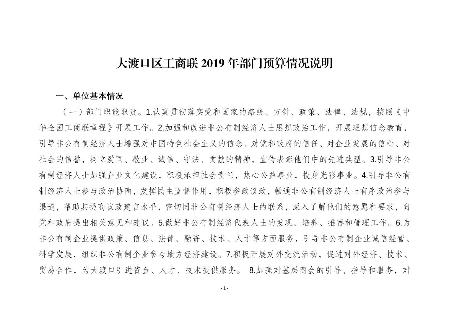 重庆市大渡口区工商联2019年部门预算情况说明