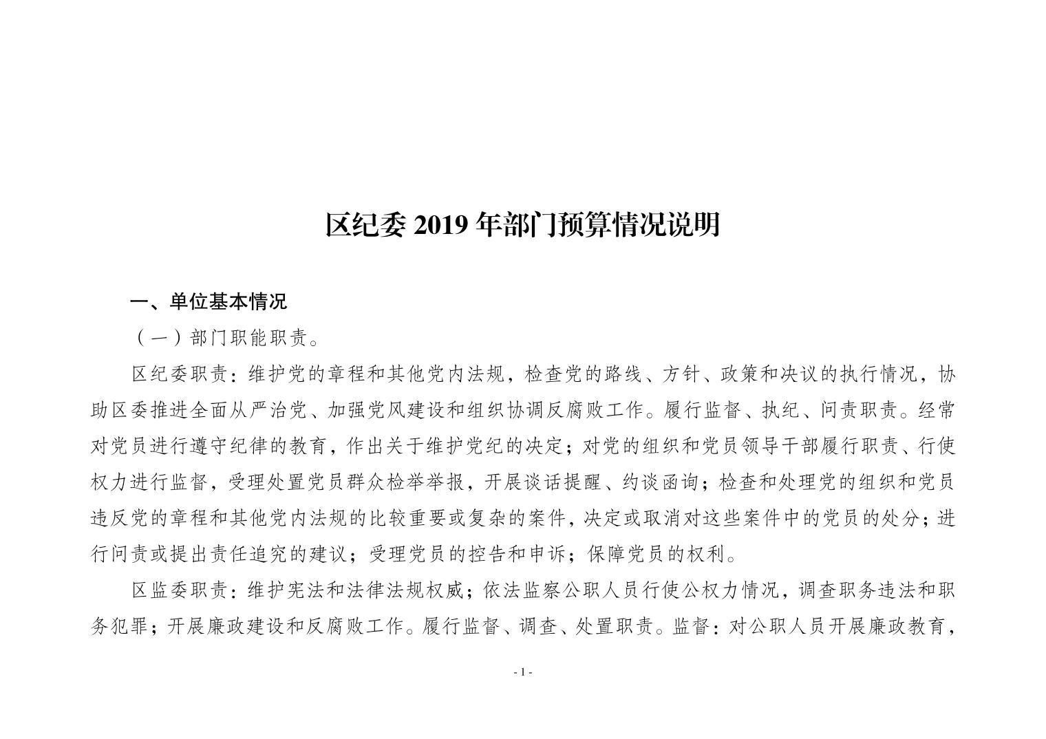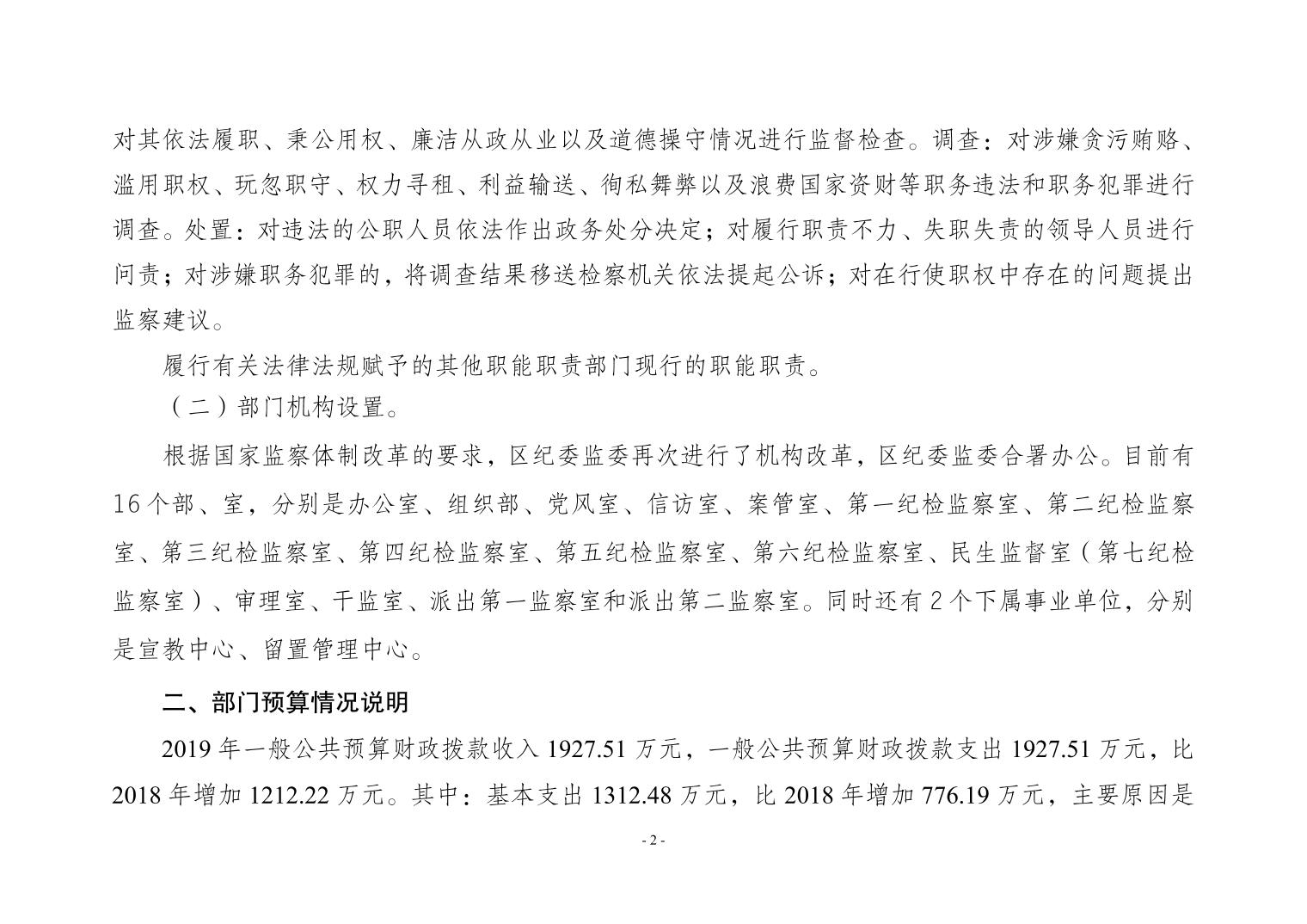中共重庆市大渡口区纪委2019年部门预算情况说明