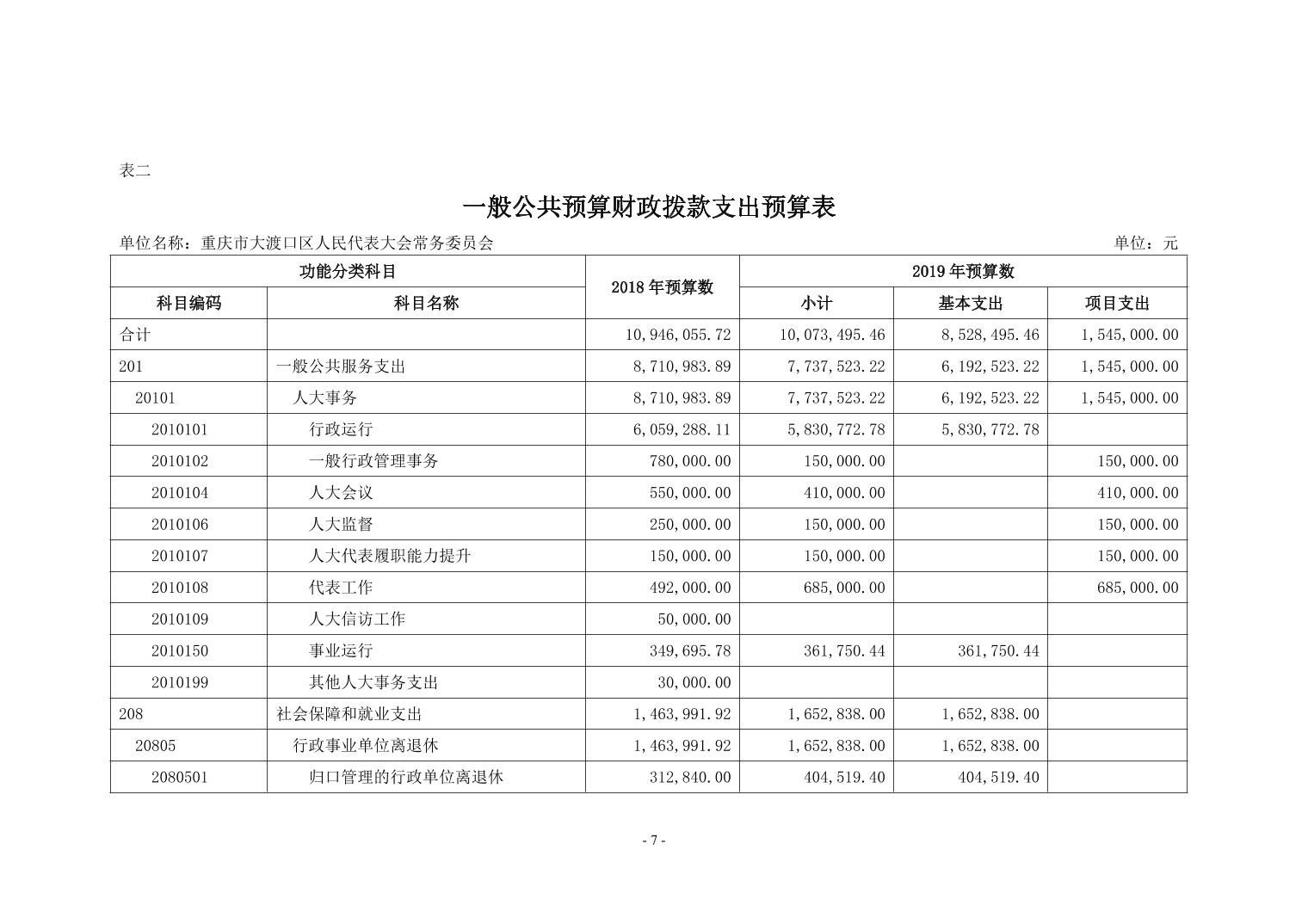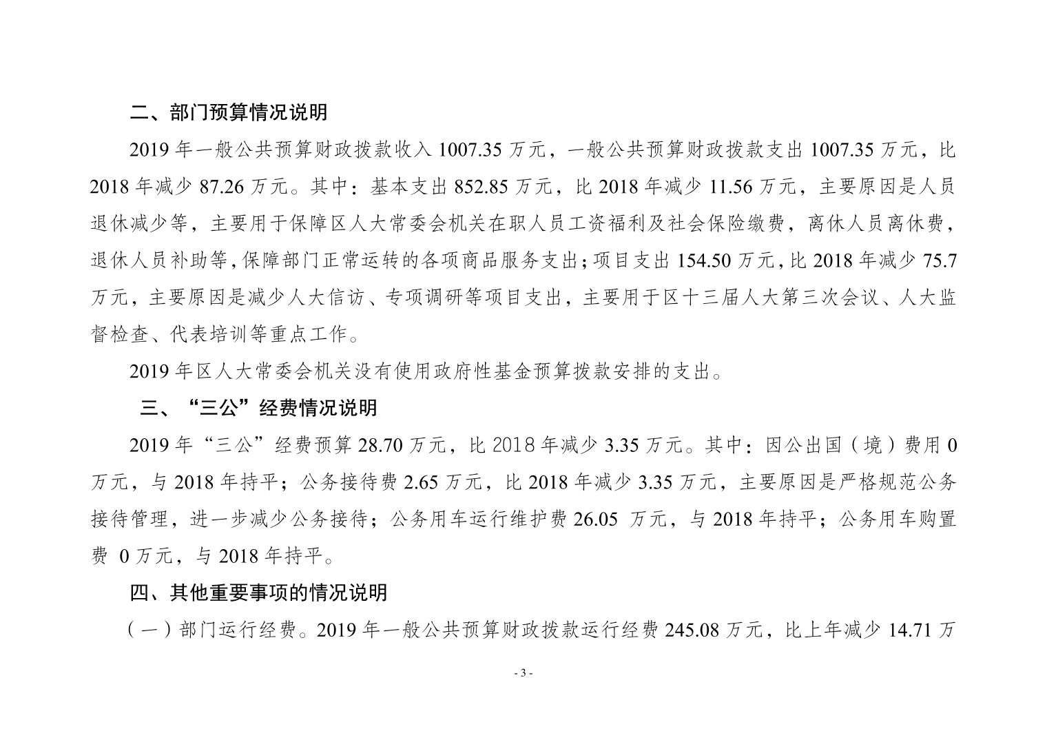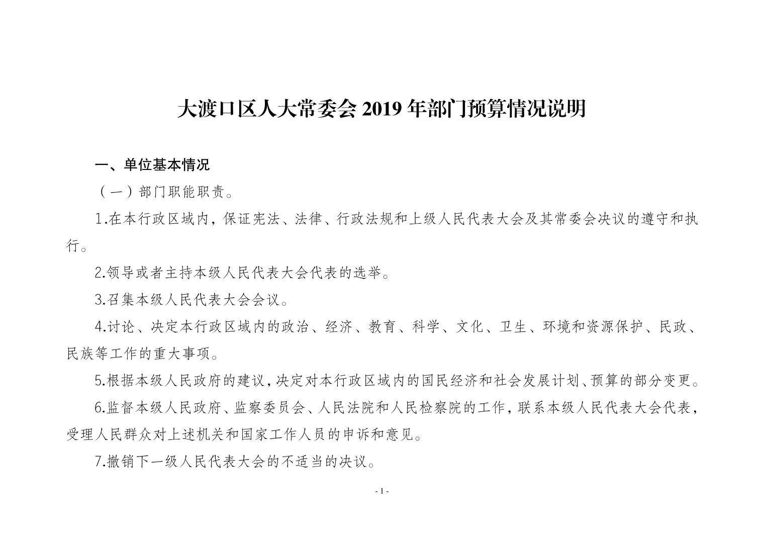 重庆市大渡口区人大常委会2019年部门预算情况说明