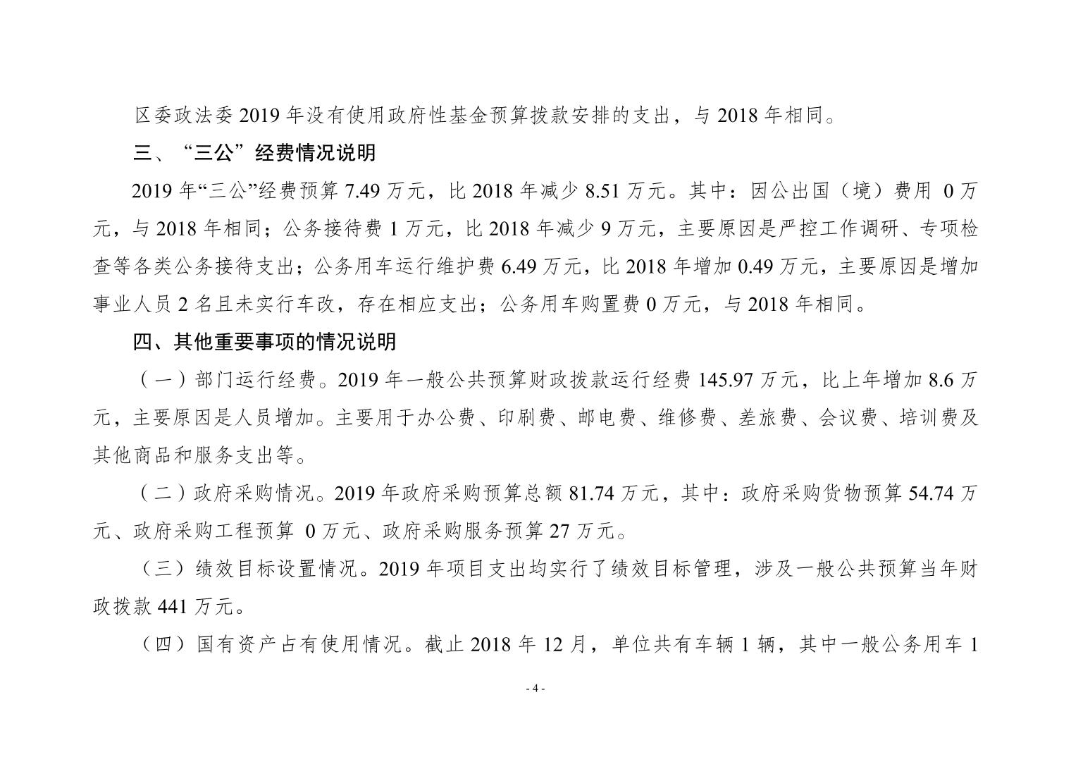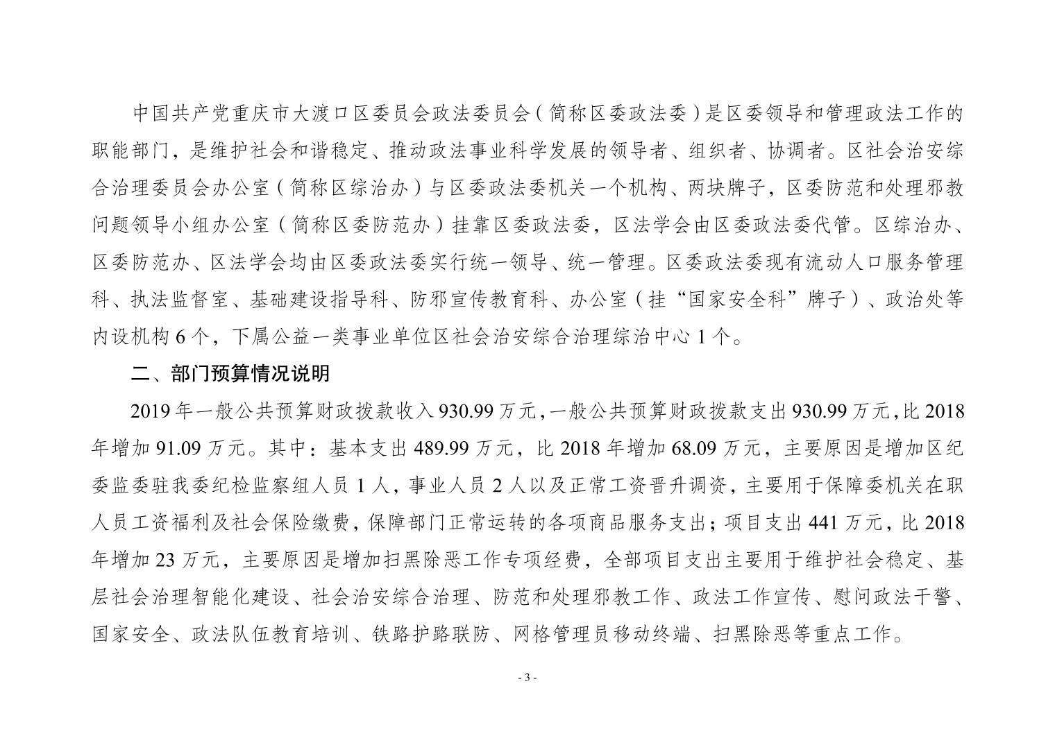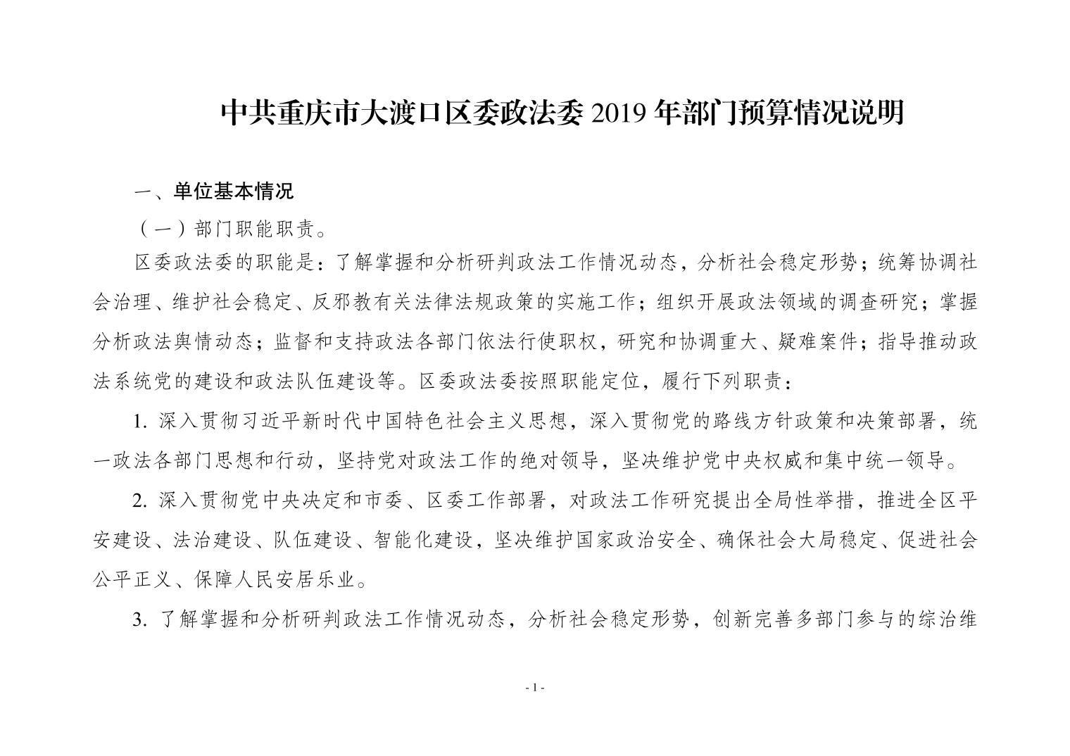 中共重庆市大渡口区委政法委2019年部门预算情况说明