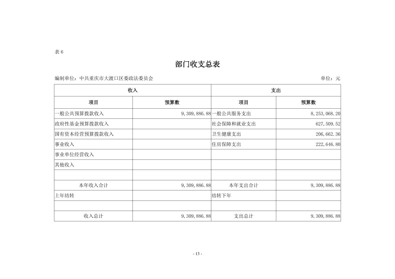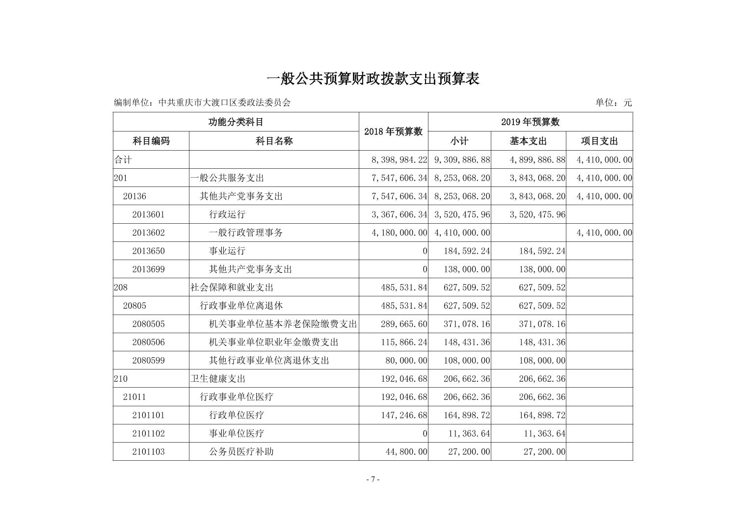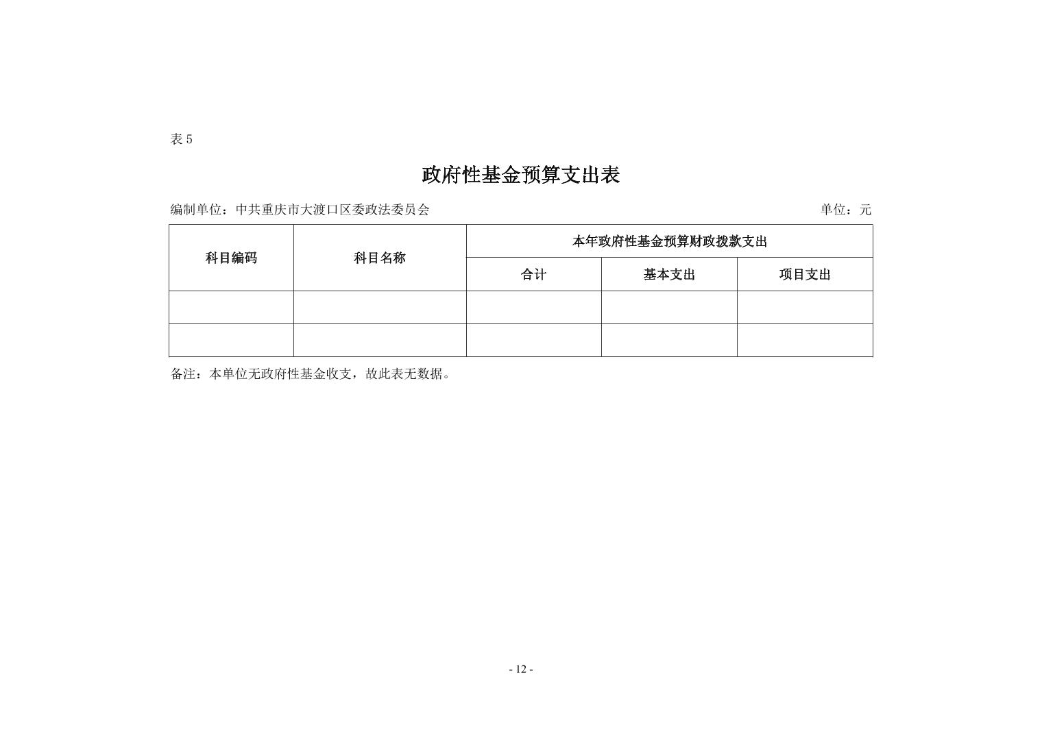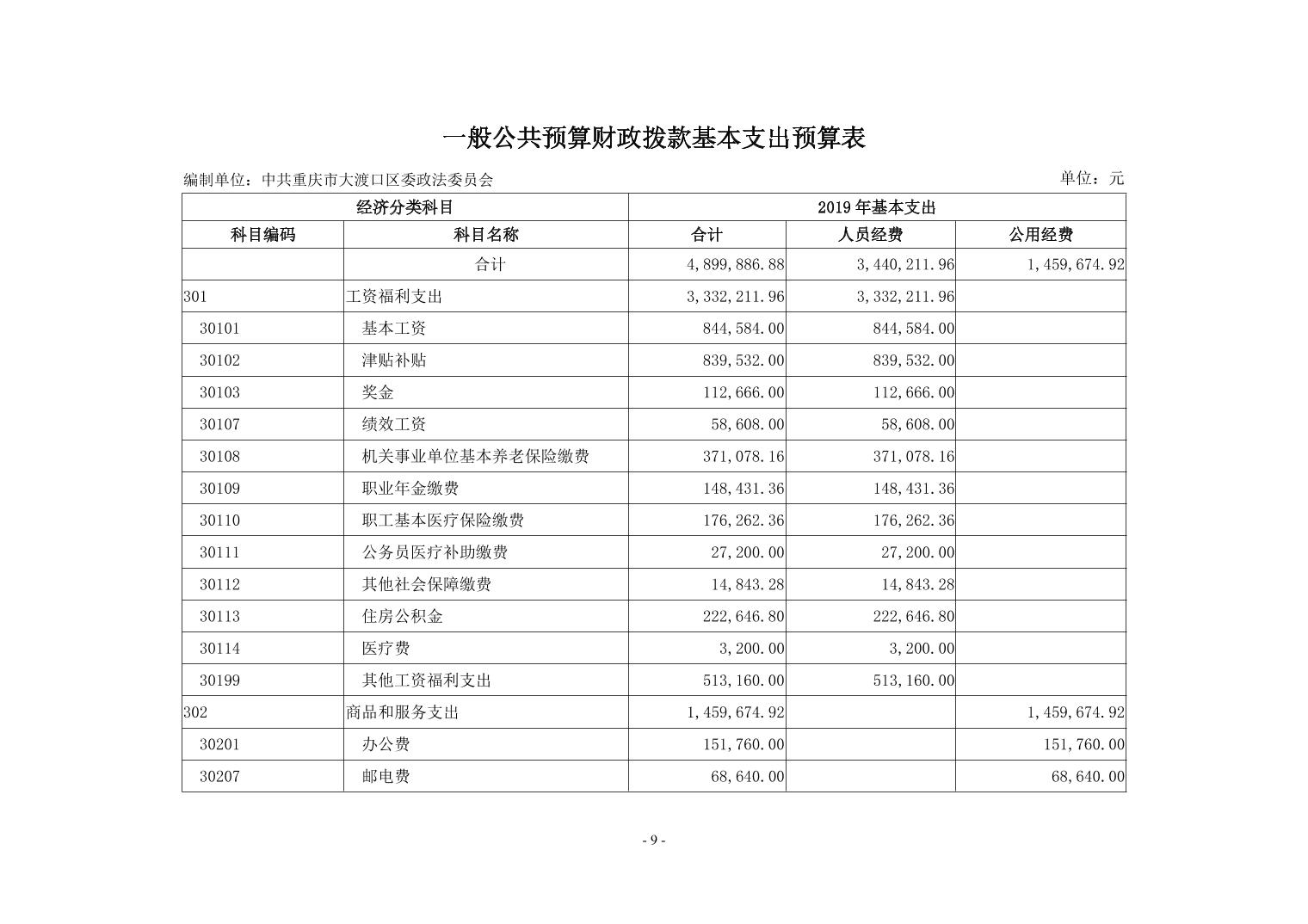 中共重庆市大渡口区委政法委2019年部门预算情况说明