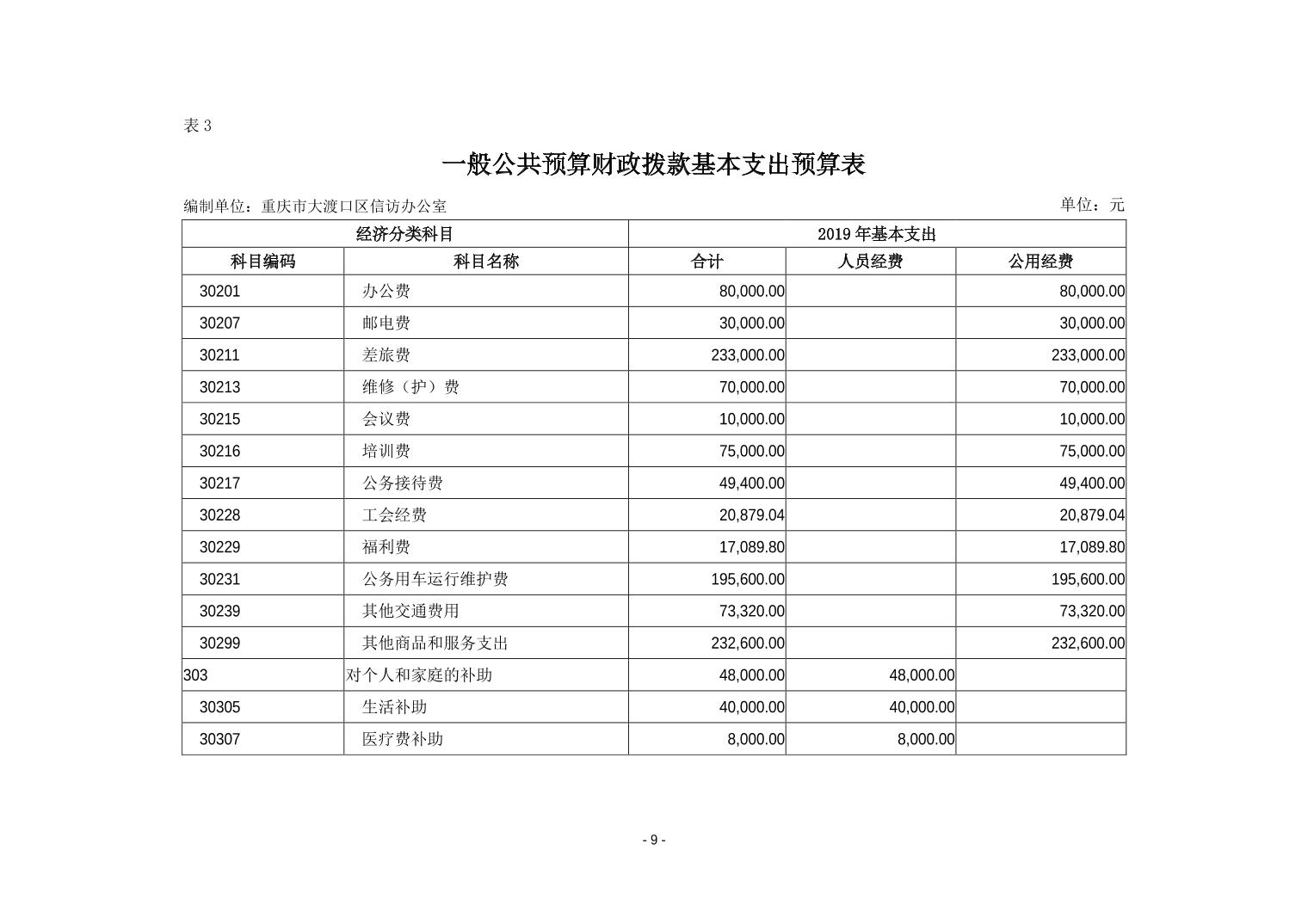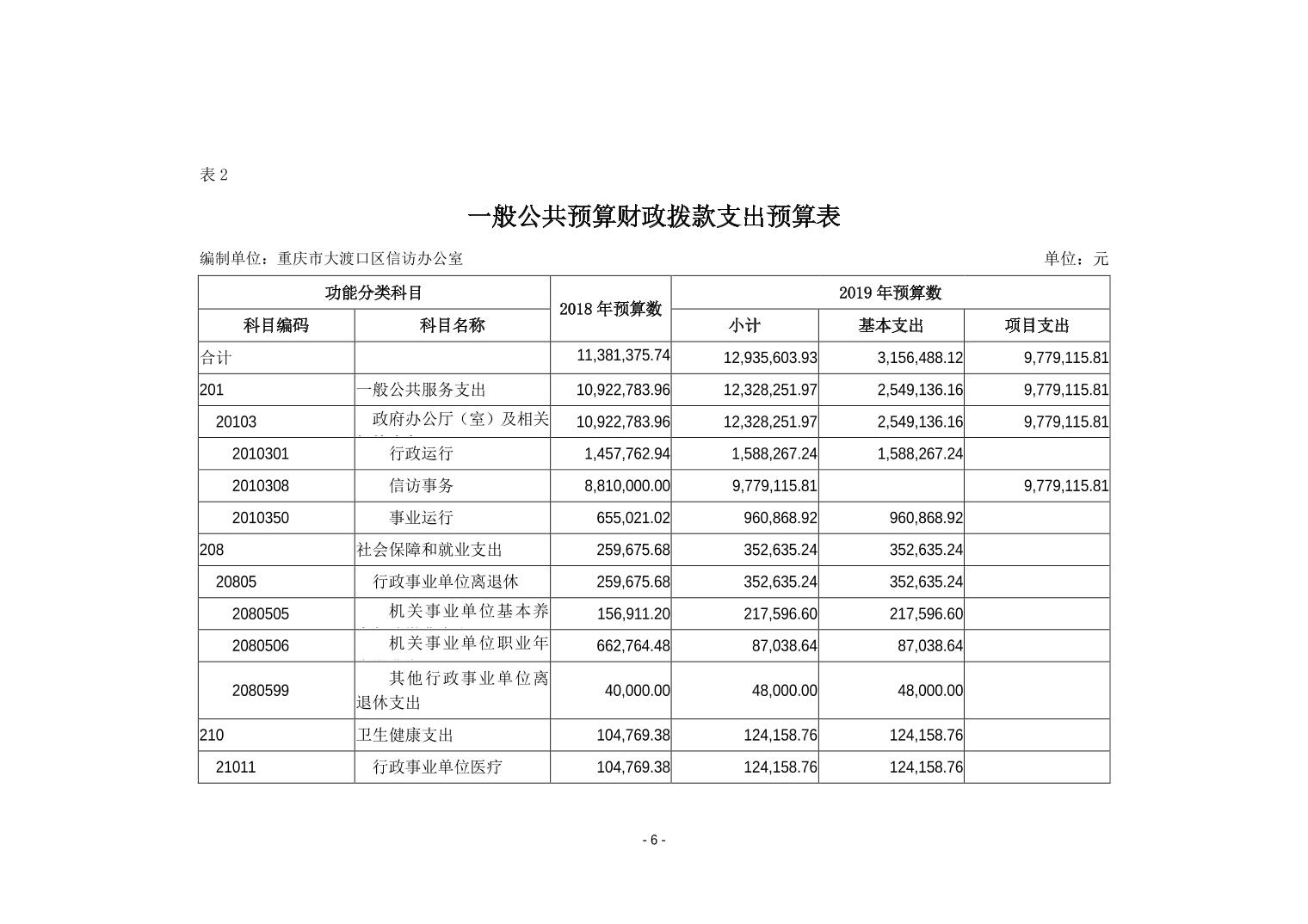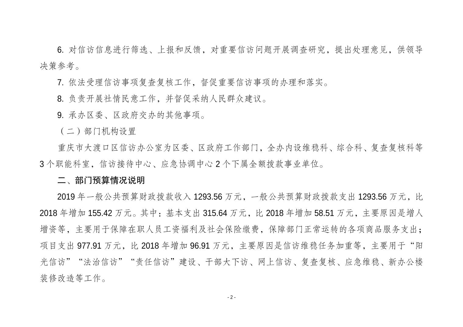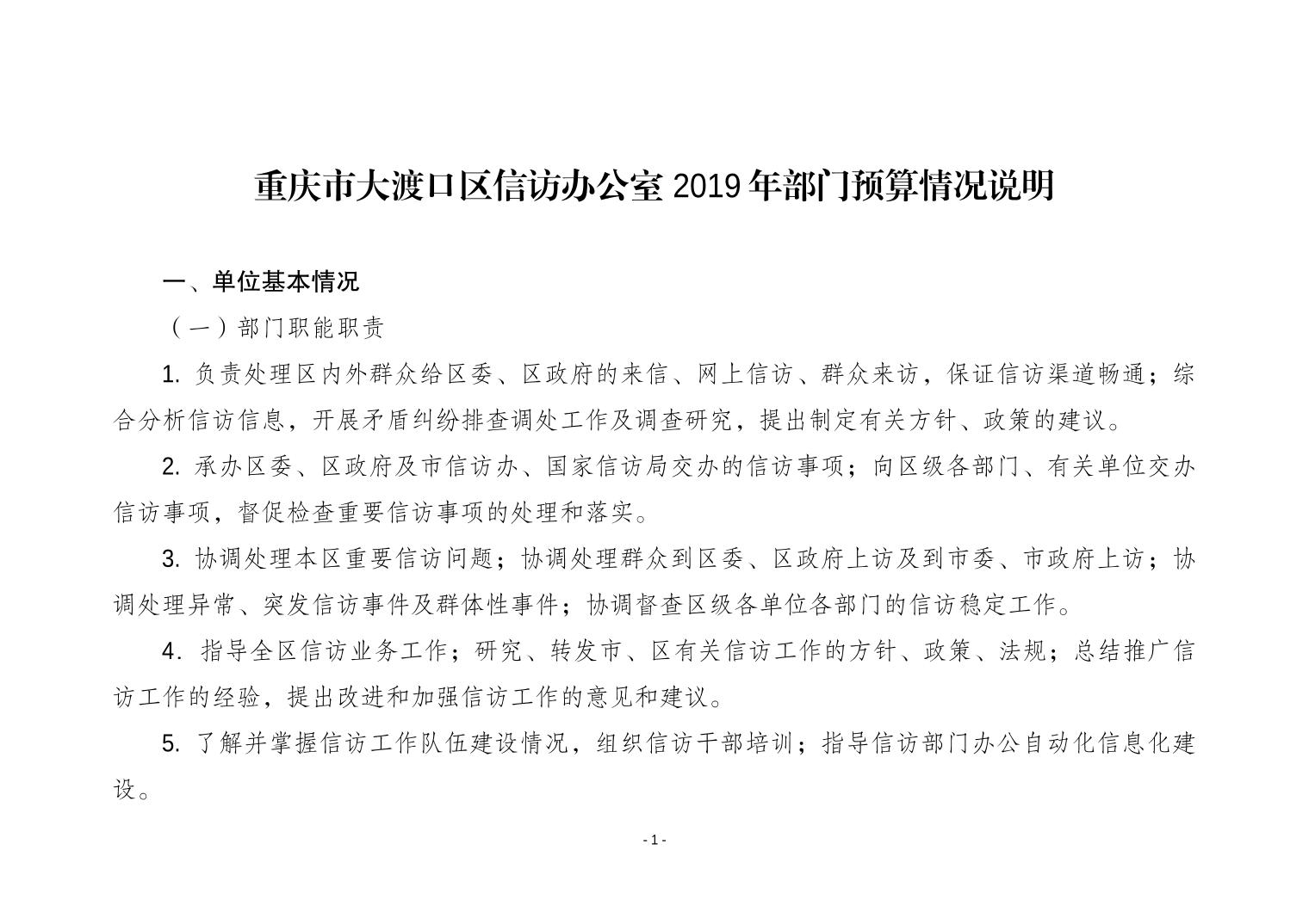 重庆市大渡口区信访办2019年部门预算情况说明