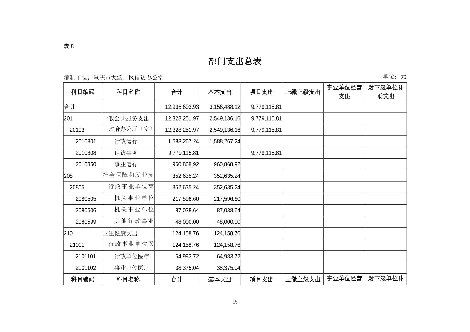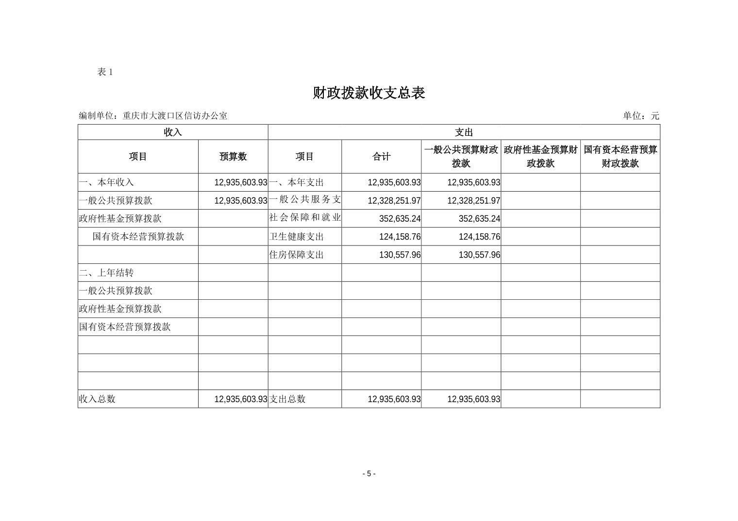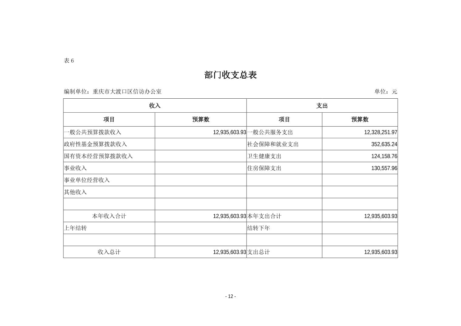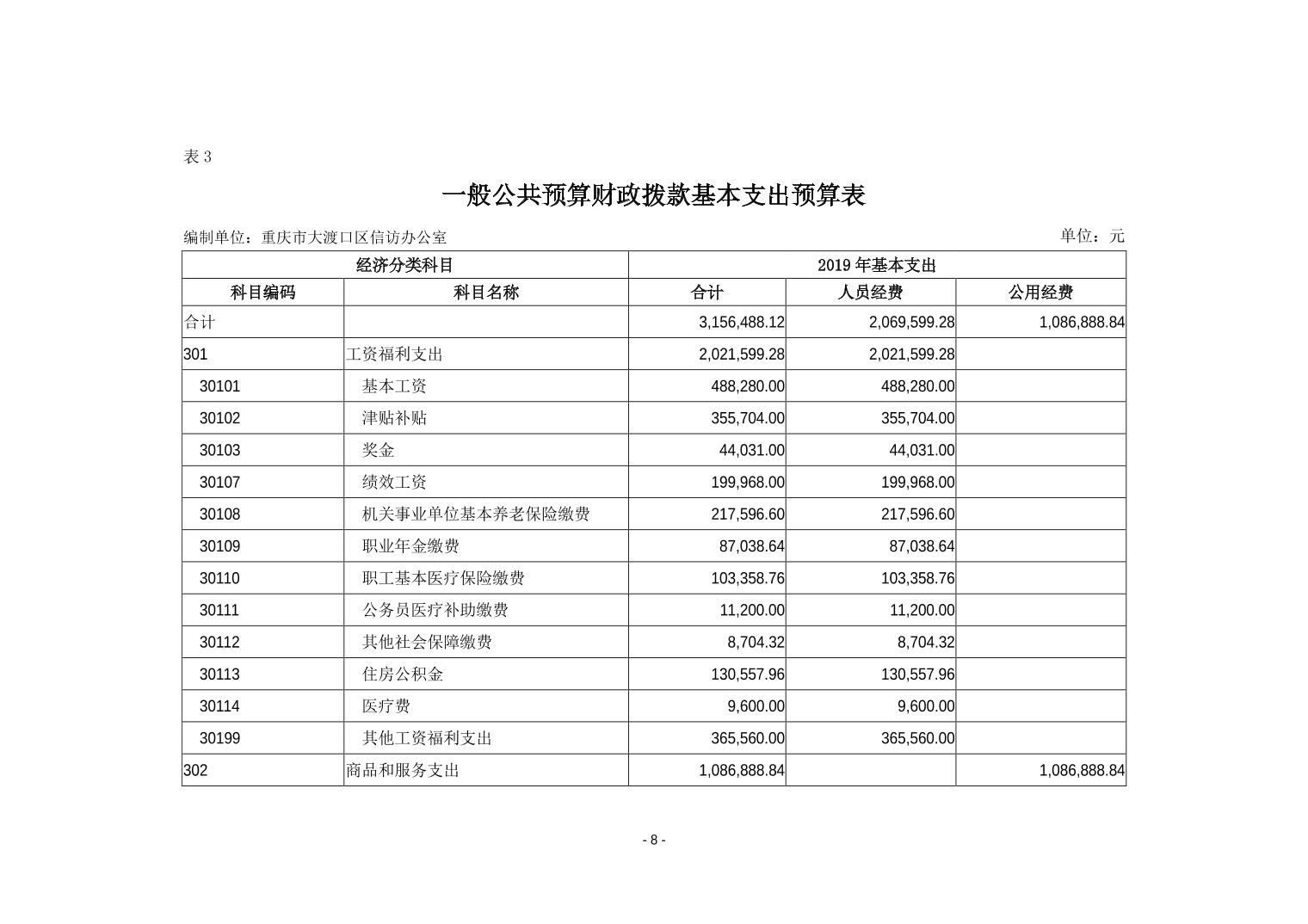 重庆市大渡口区信访办2019年部门预算情况说明
