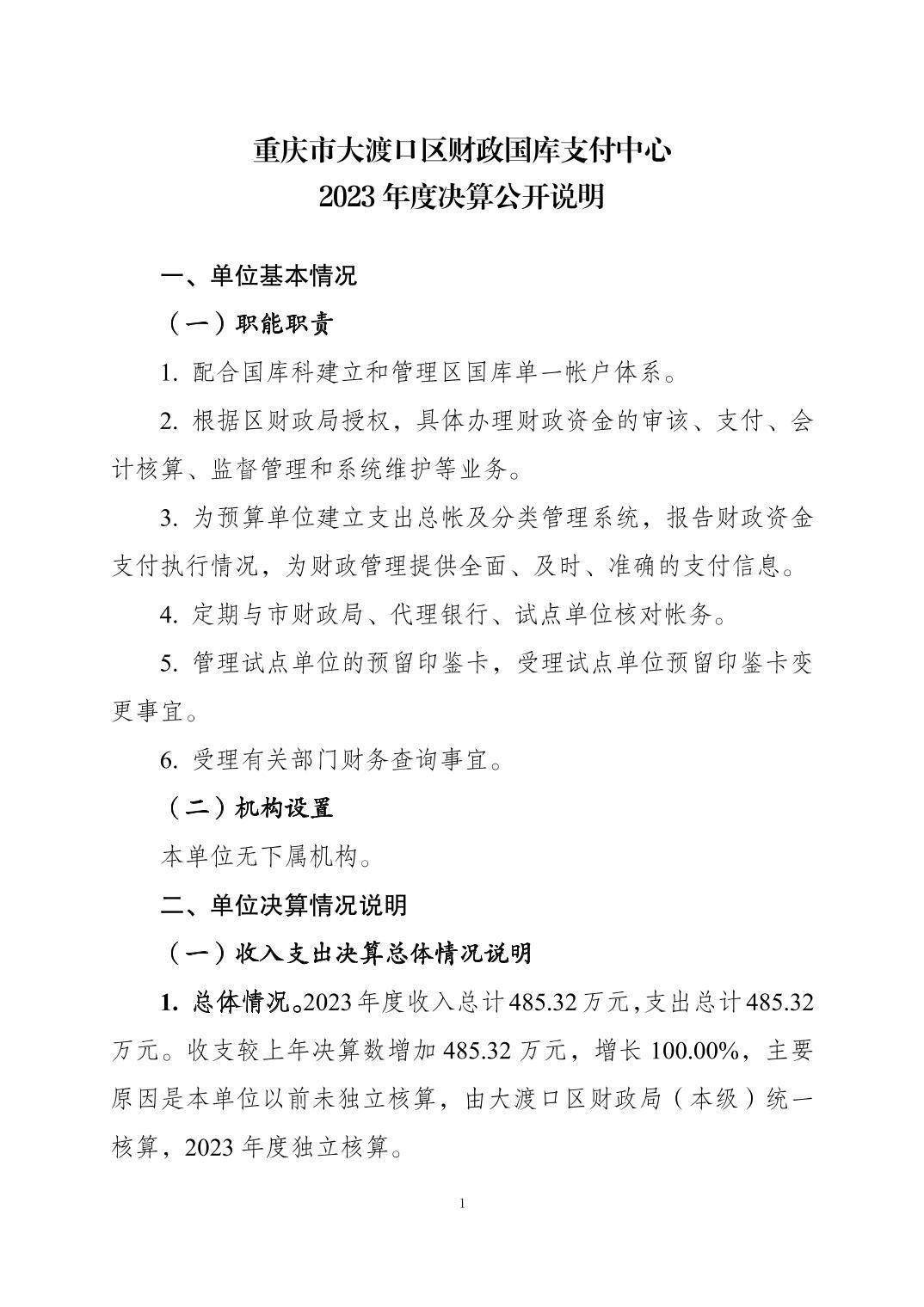 重庆市大渡口区财政国库支付中心2023年度决算公开说明