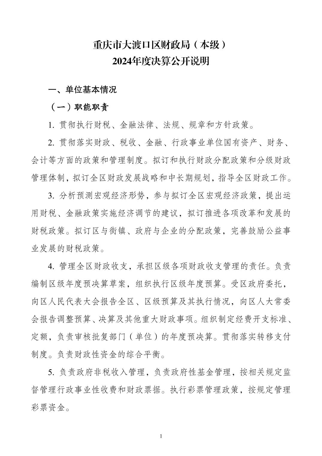 重庆市大渡口区财政局(本级)2024年度决算公开说明