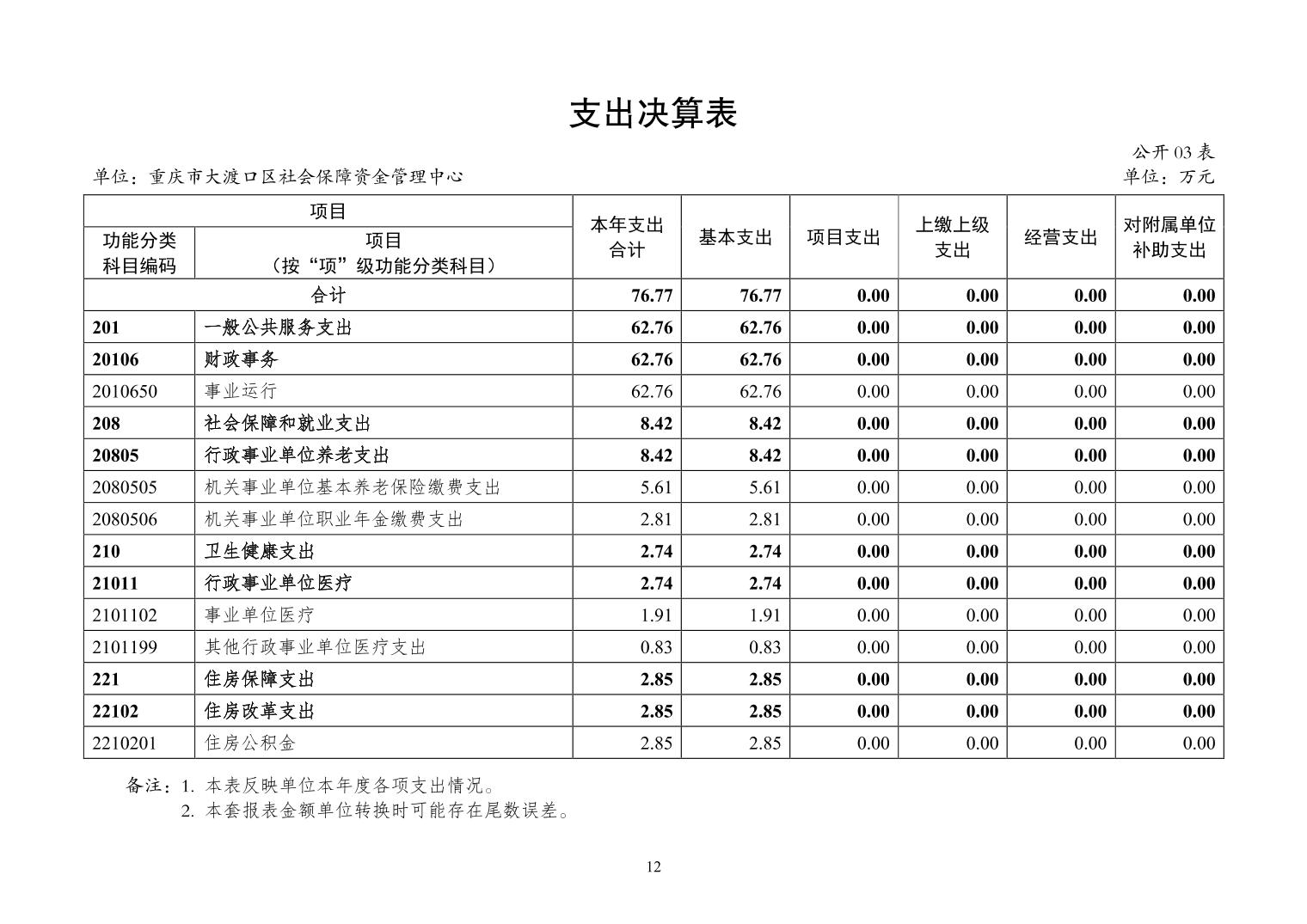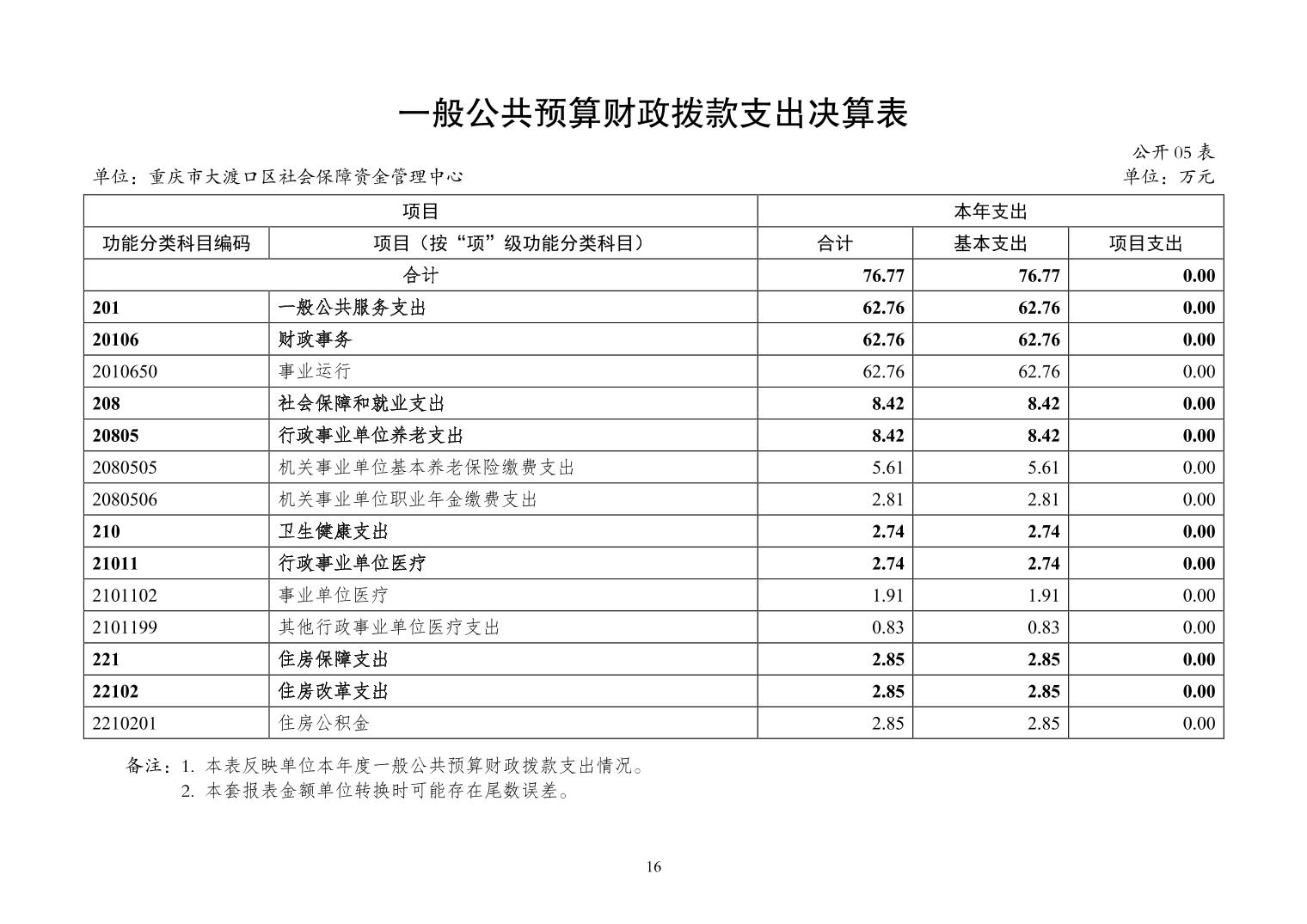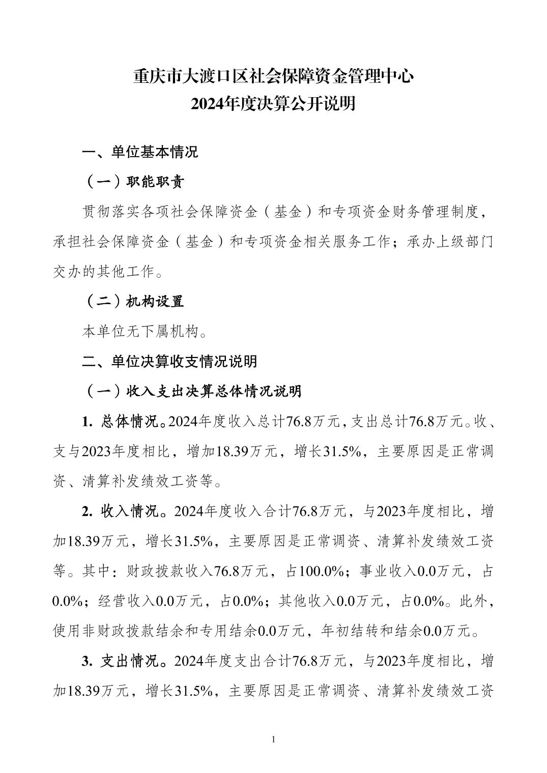 重庆市大渡口区社会保障资金管理中心2024年度决算公开说明