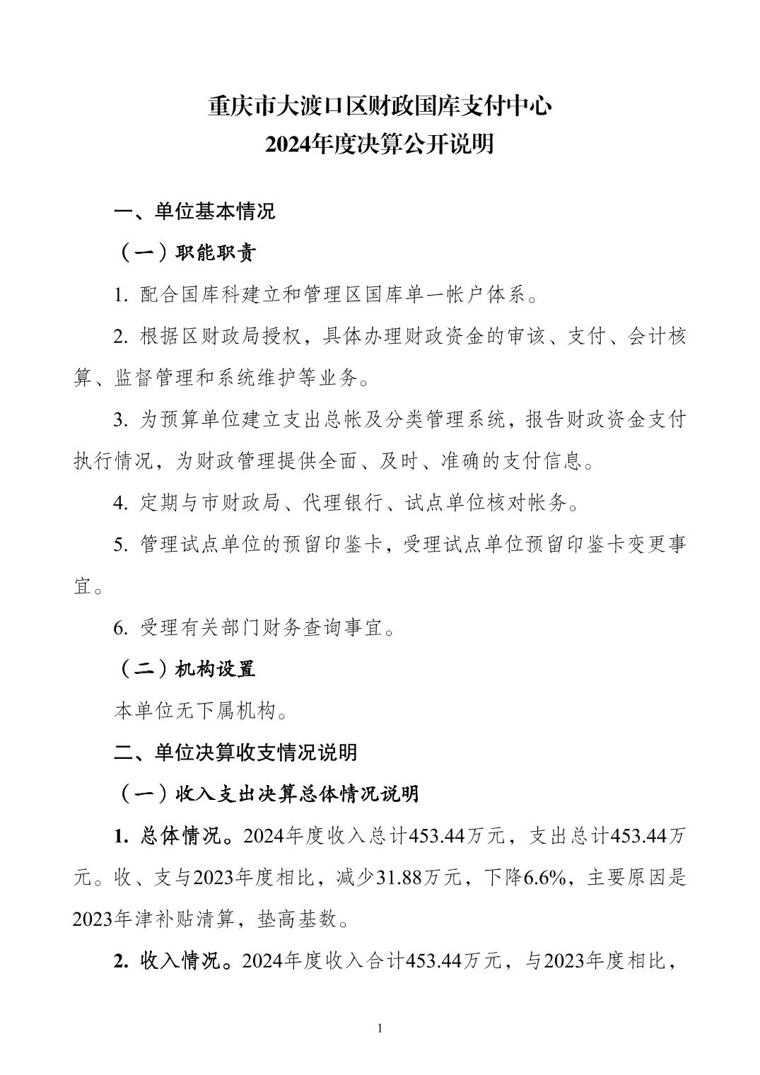 重庆市大渡口区财政国库支付中心2024年度决算公开说明