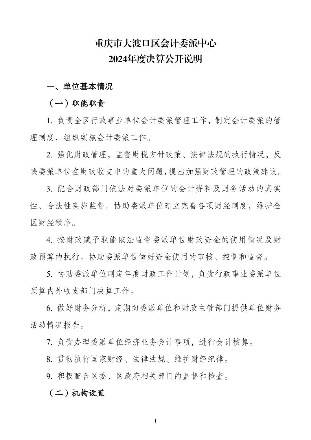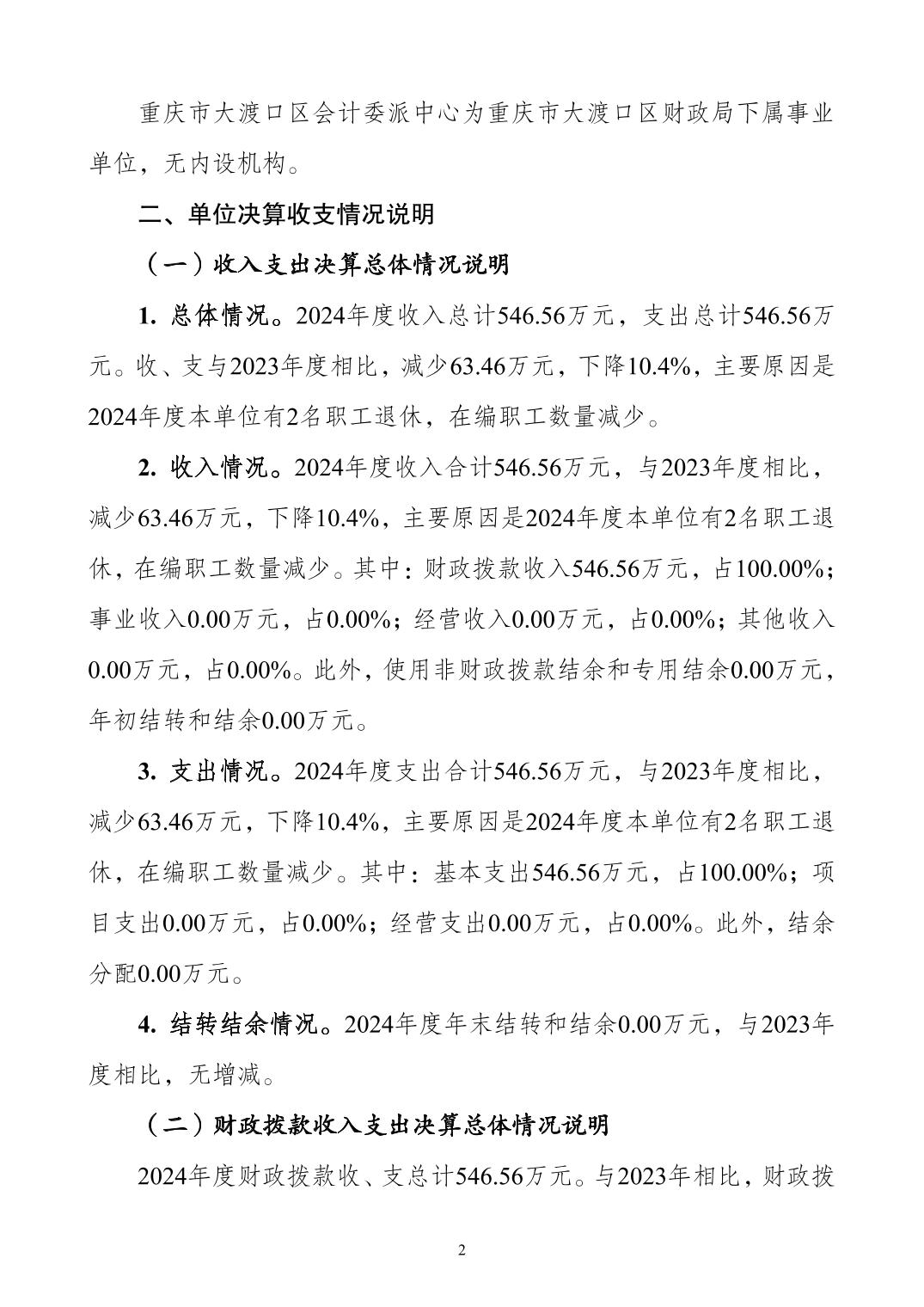 重庆市大渡口区会计委派中心2024年度决算公开说明