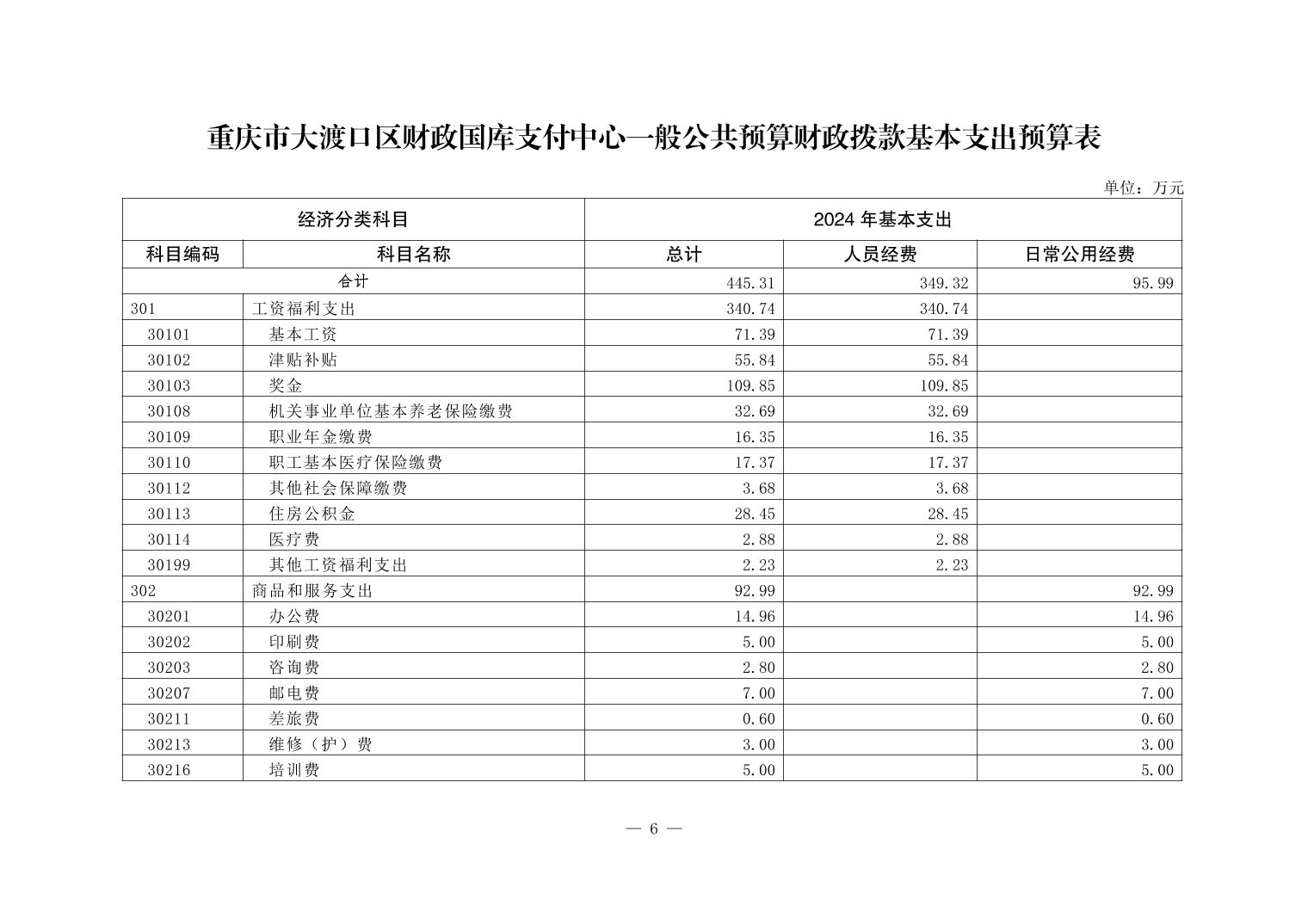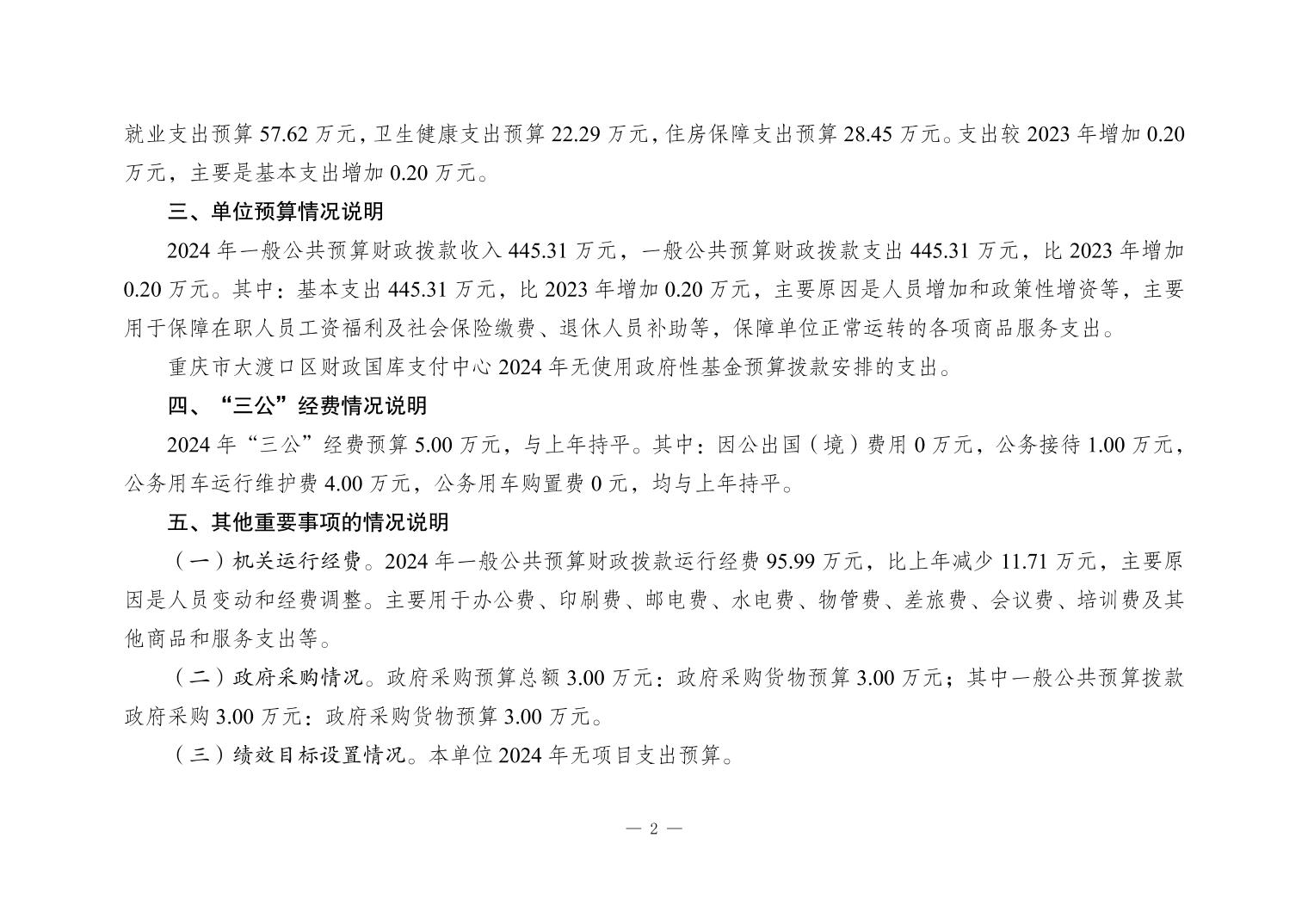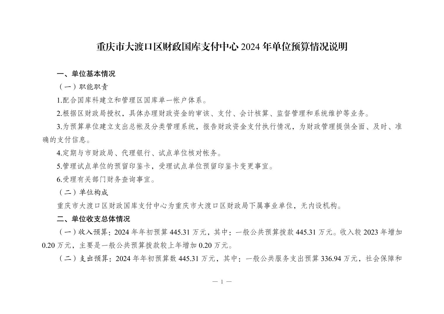 重庆市大渡口区财政国库支付中心2024年单位预算情况说明
