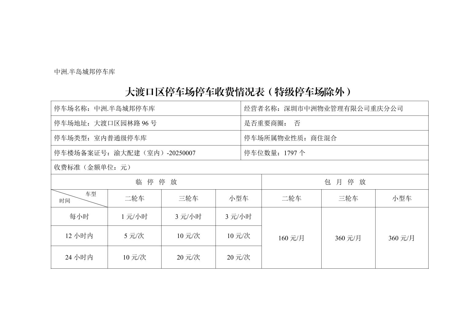大渡口区停车场停车收费情况表(特级停车场除外)(2025.10.9)