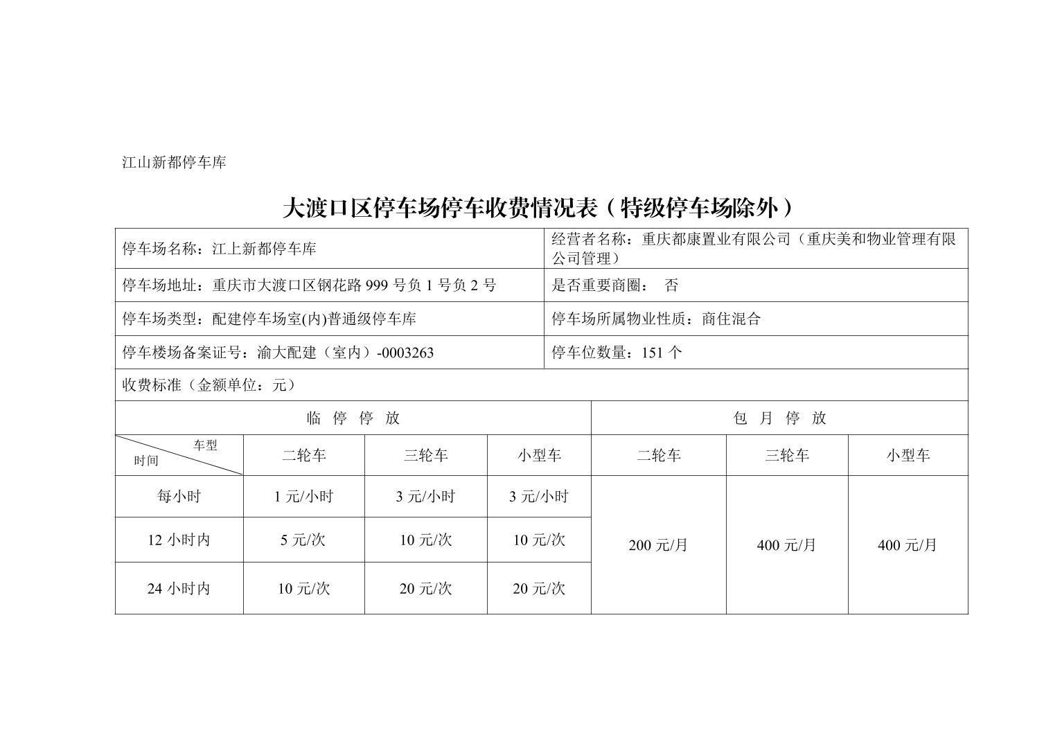 大渡口区停车场停车收费情况表(特级停车场除外)(2025.11.19)