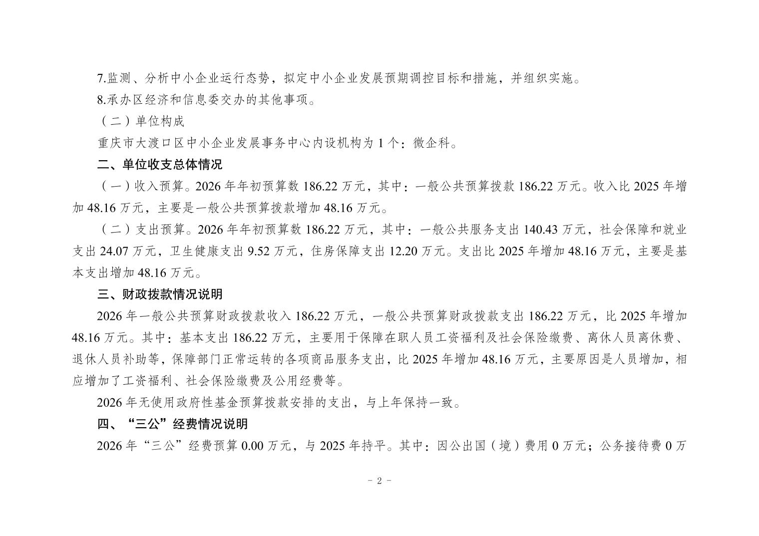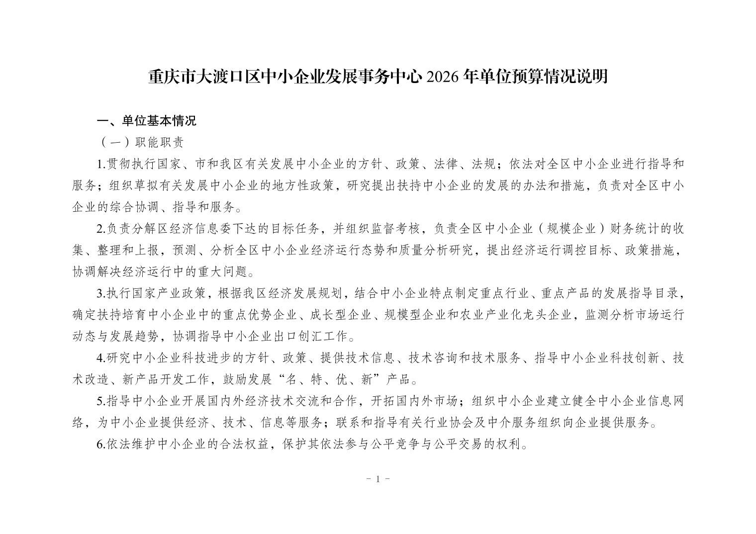 重庆市大渡口区中小企业发展事务中心2026年单位预算情况说明