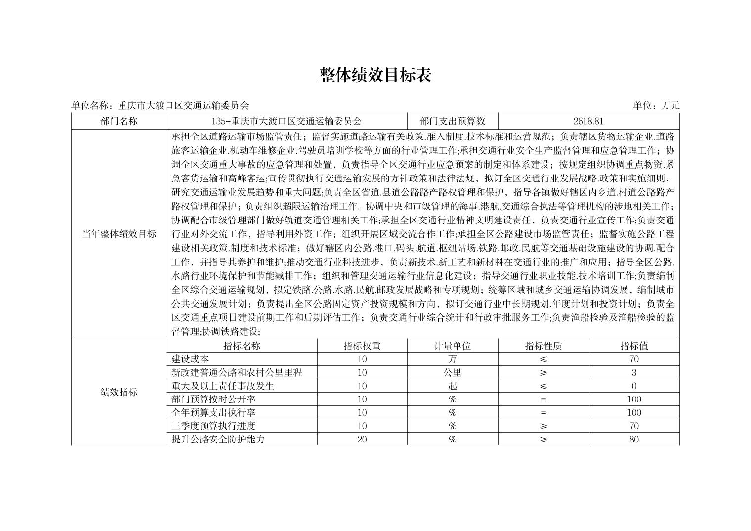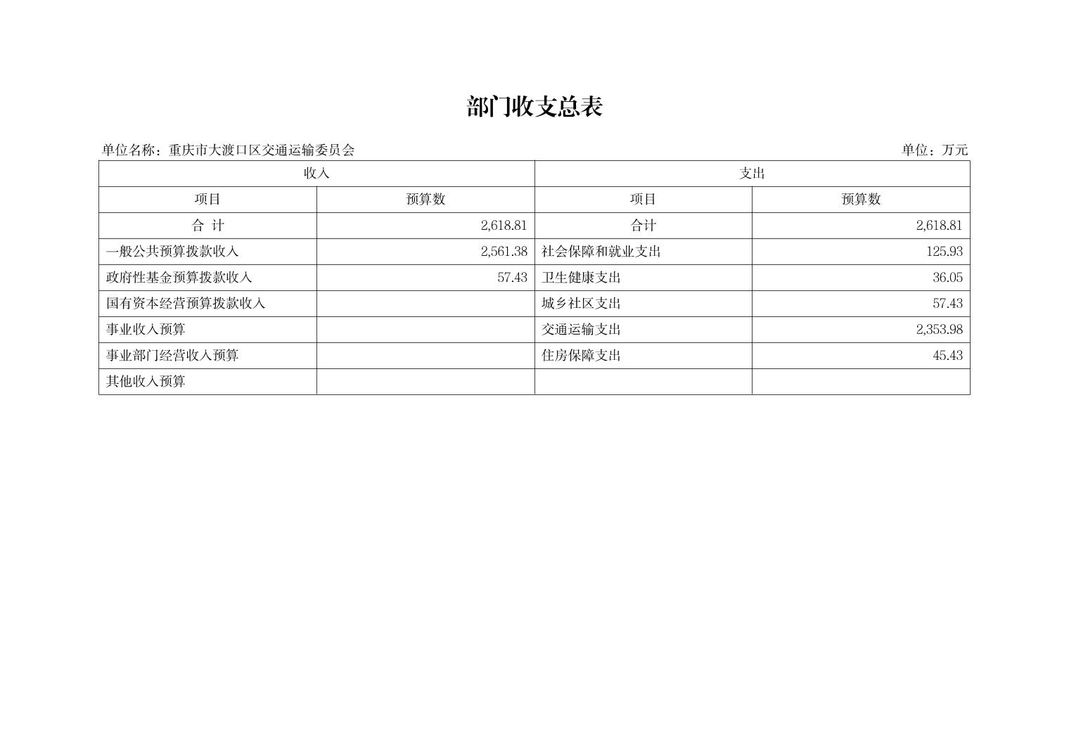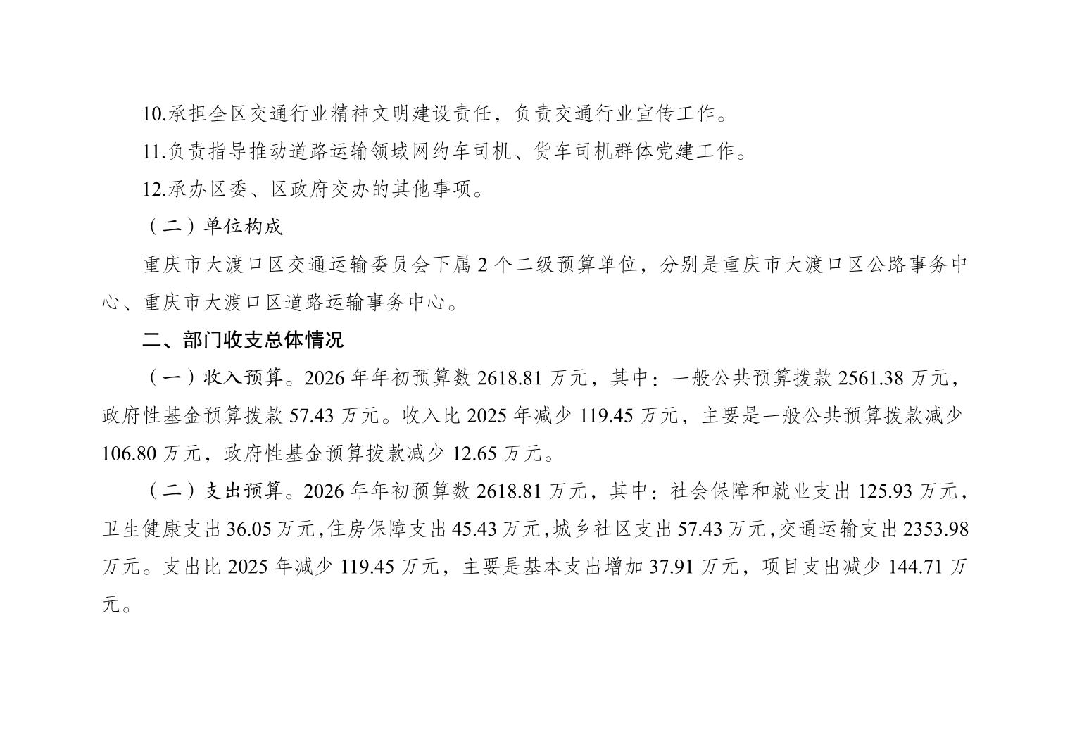 重庆市大渡口区交通运输委员会2026年部门预算情况说明
