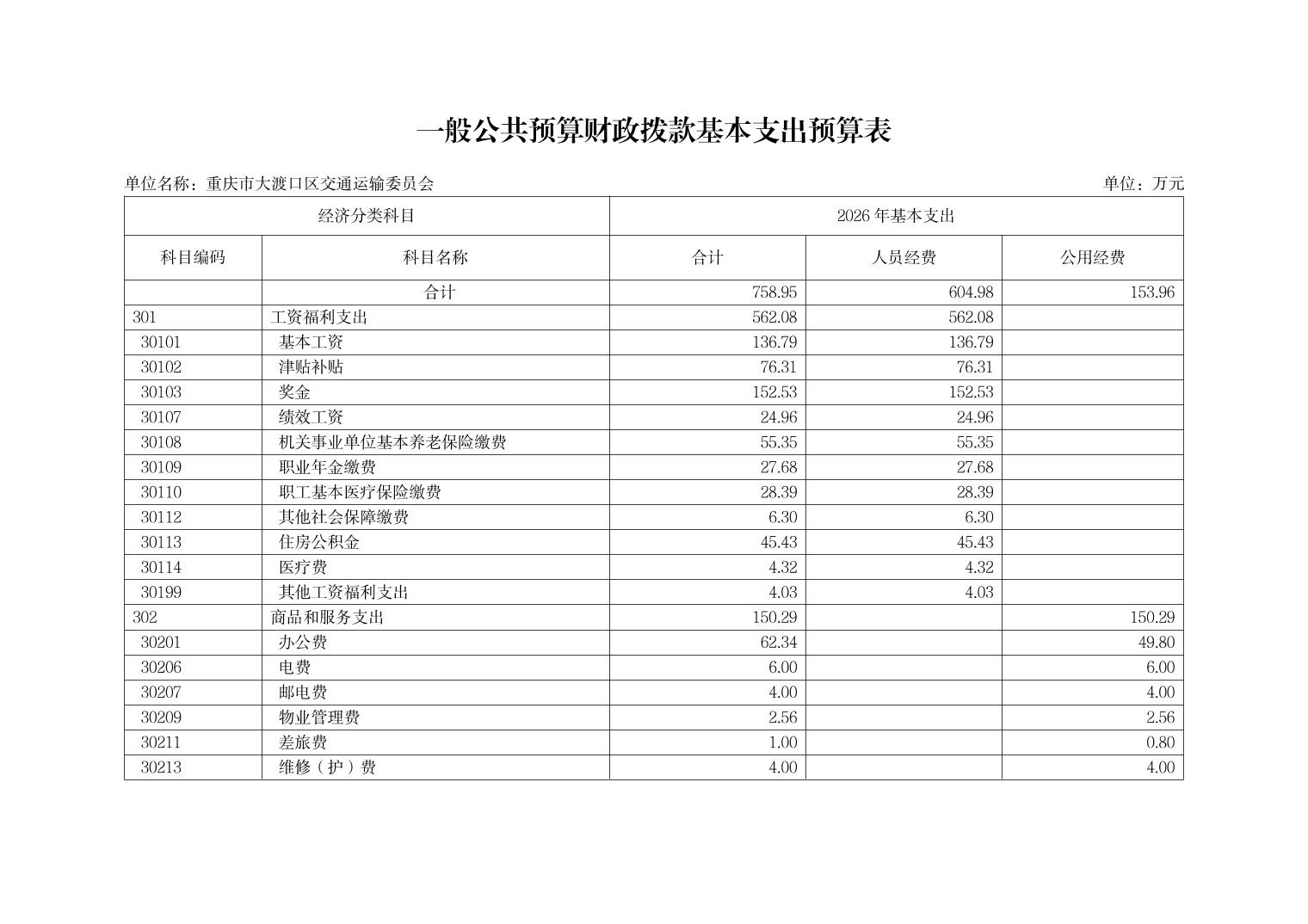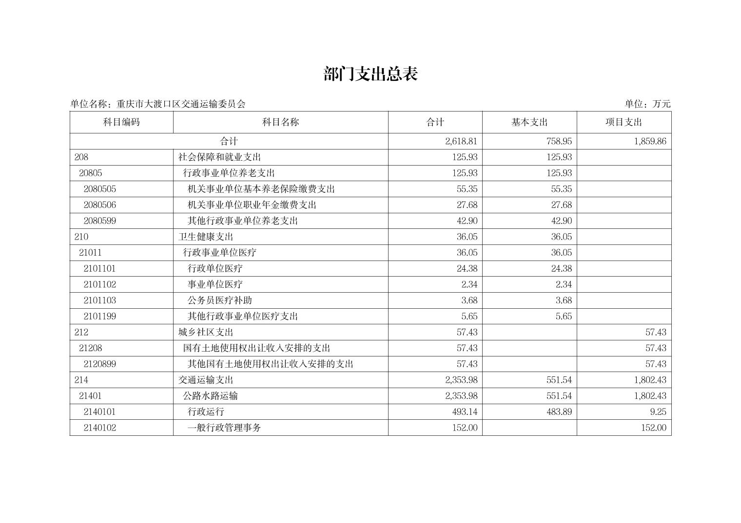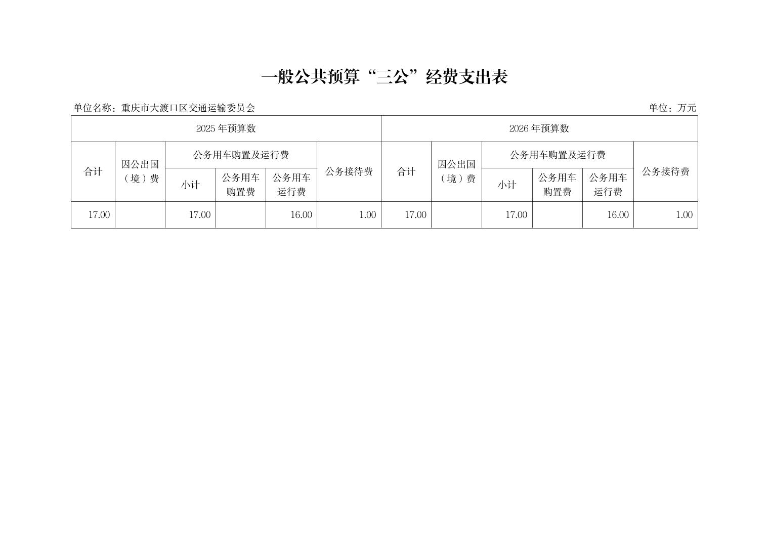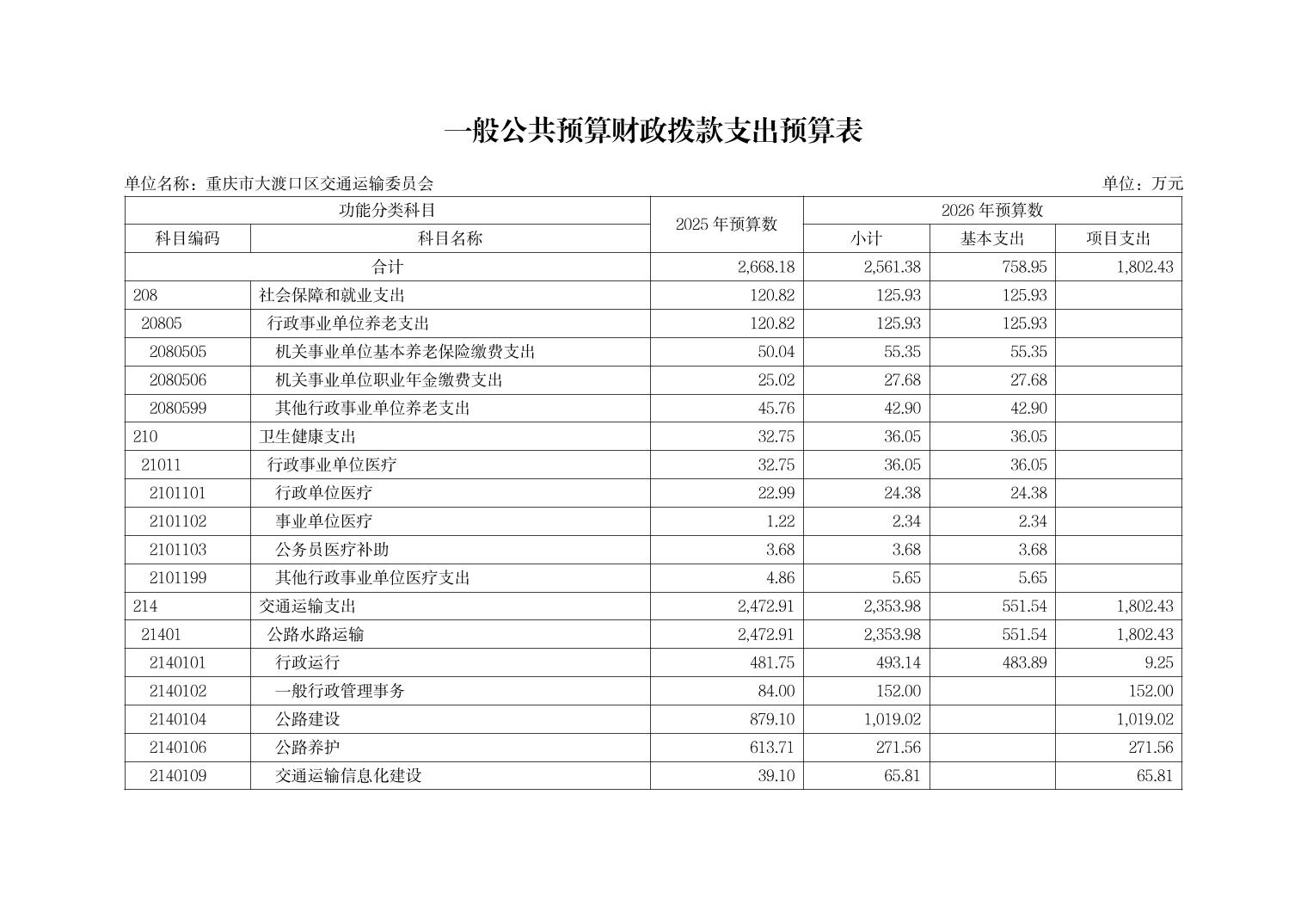 重庆市大渡口区交通运输委员会2026年部门预算情况说明