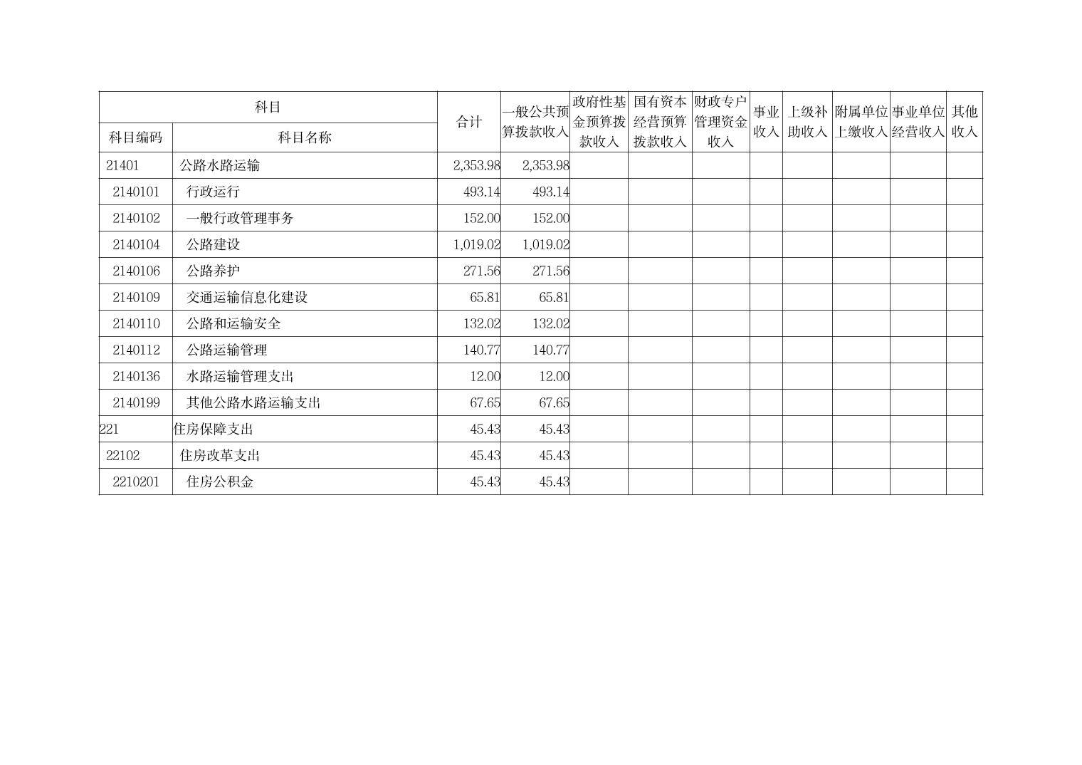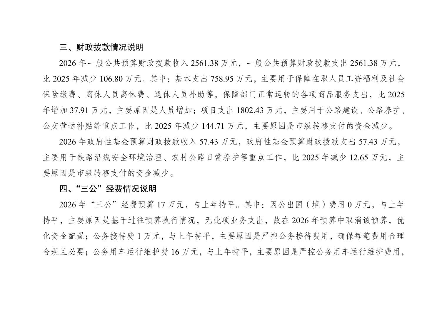 | [ 主题分类 ] | 交通 | [ 体裁分类 ] | 财政预算、决算 |
