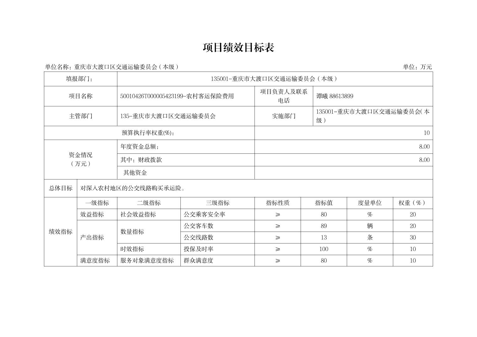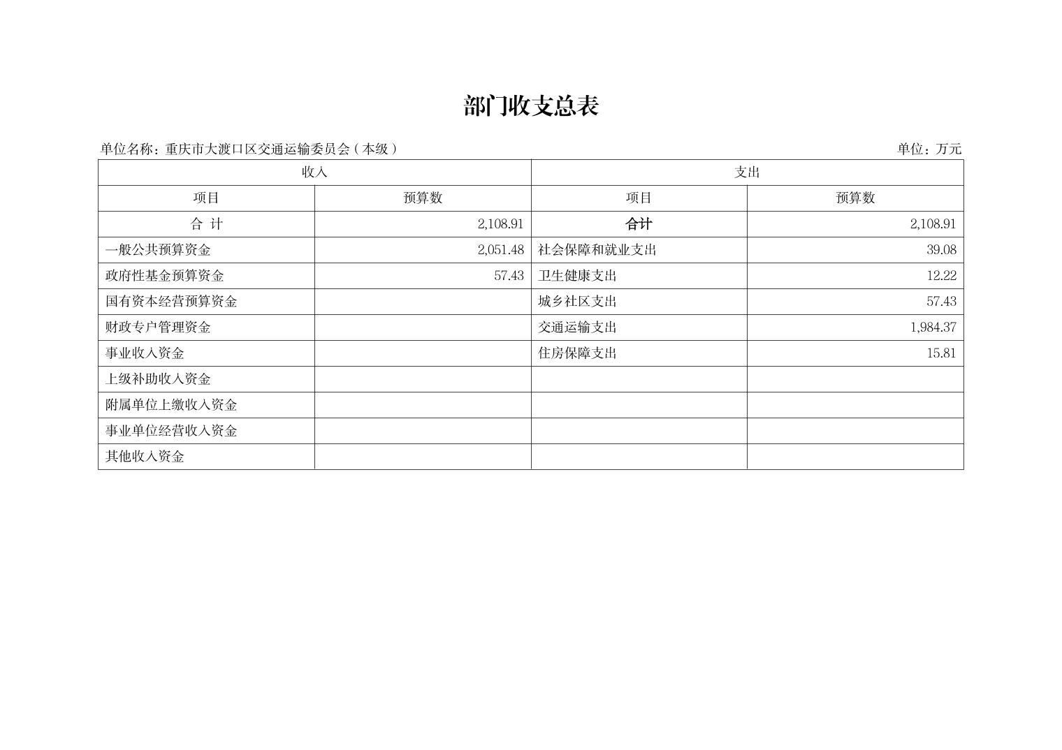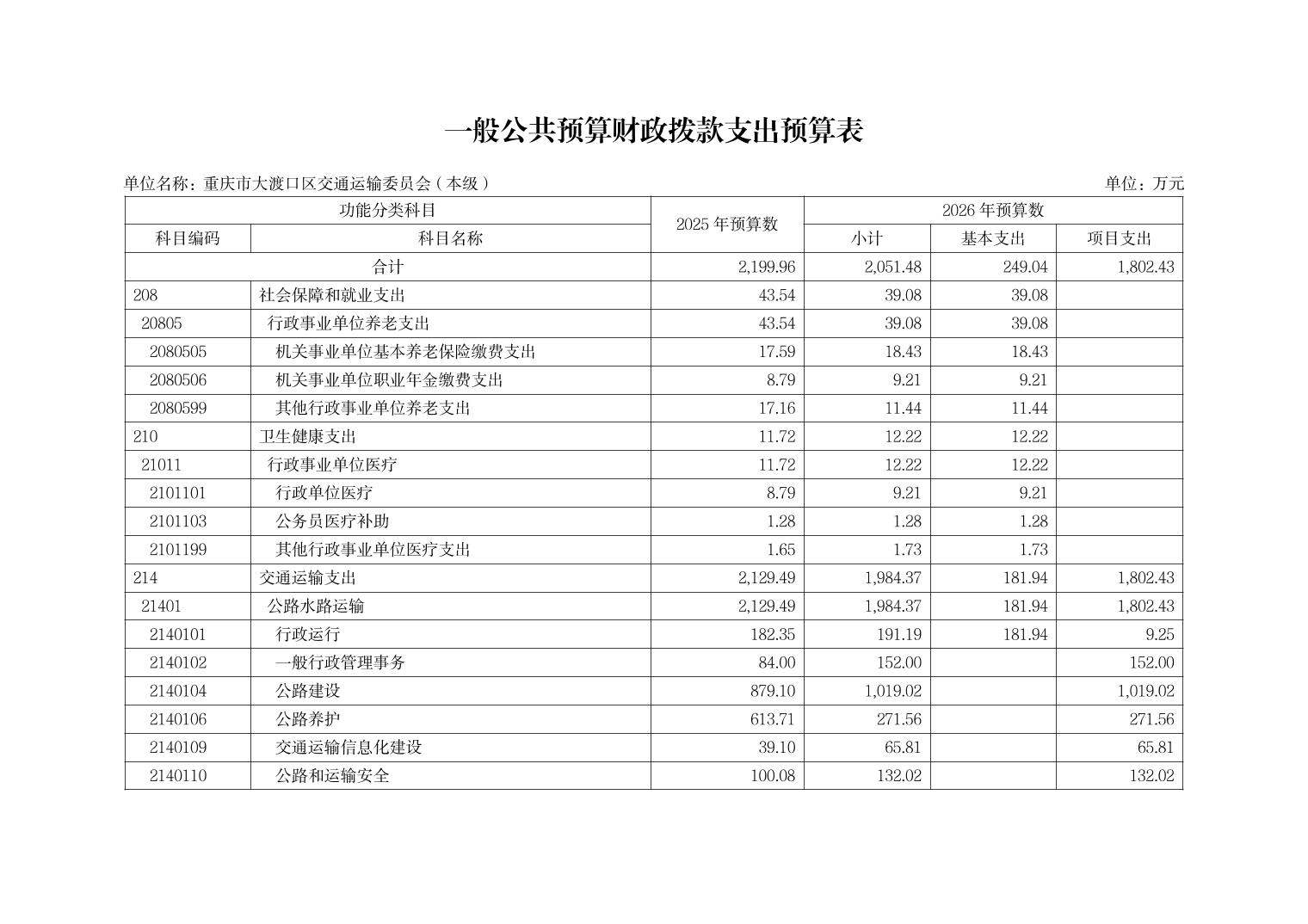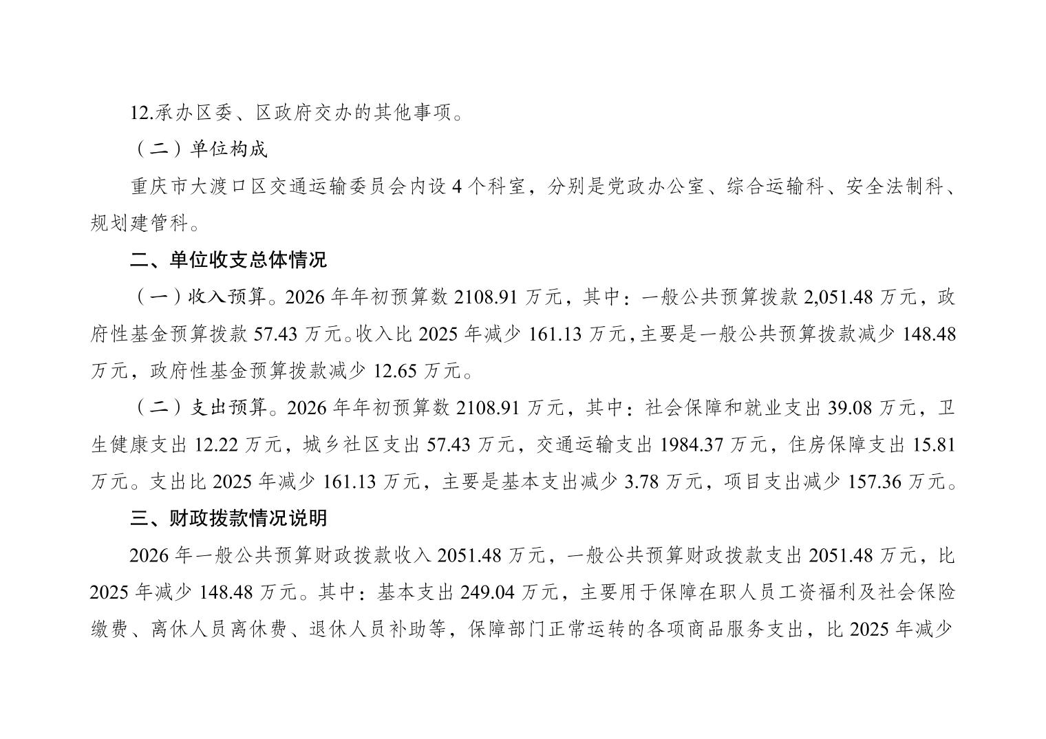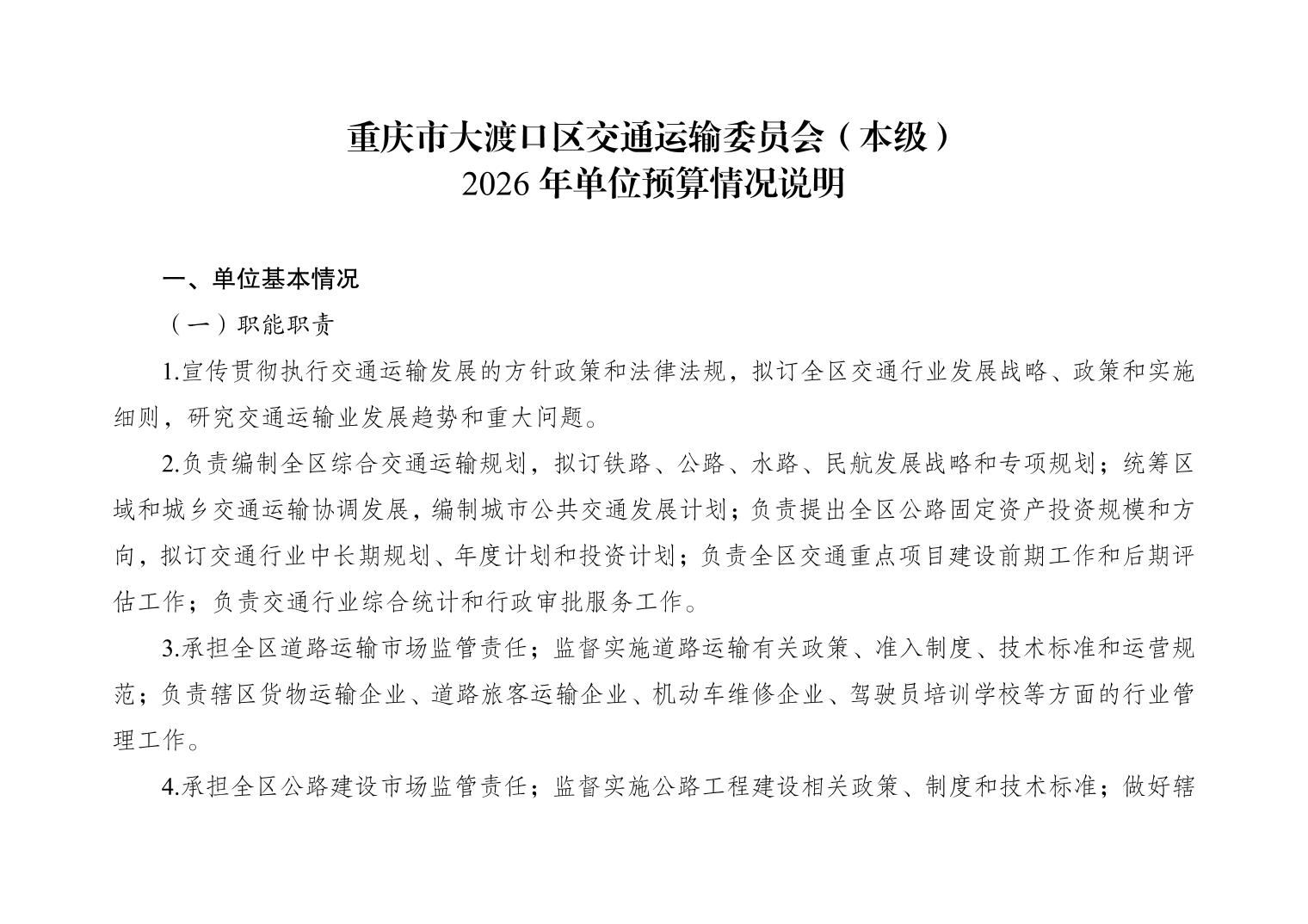 重庆市大渡口区交通运输委员会(本级)2026年单位预算情况说明