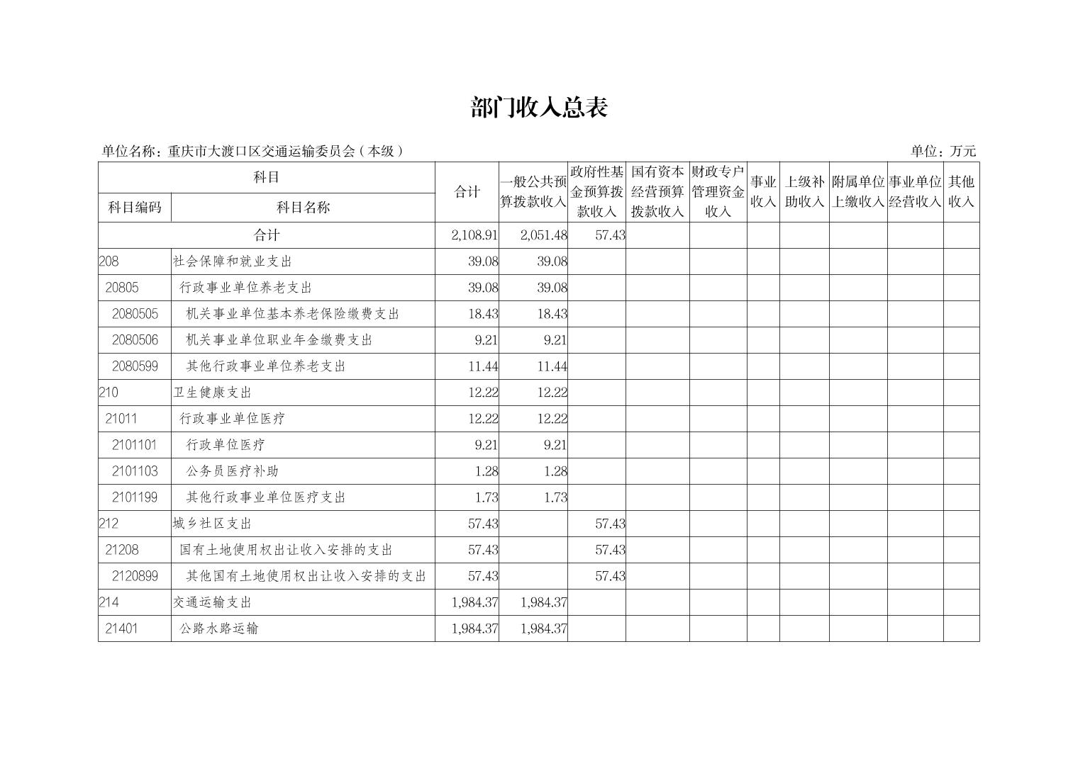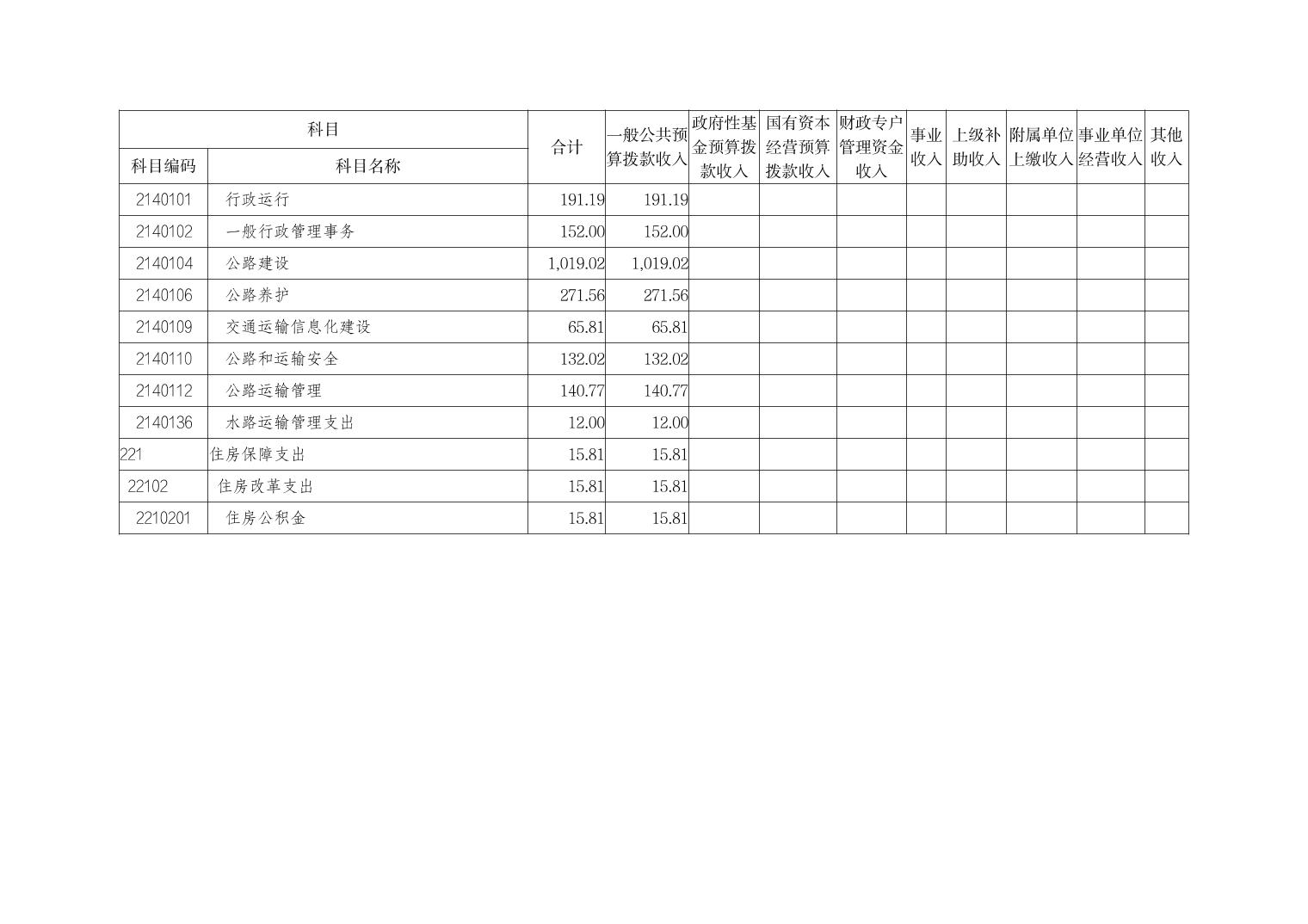 | [ 主题分类 ] | 交通 | [ 体裁分类 ] | 财政预算、决算 |
