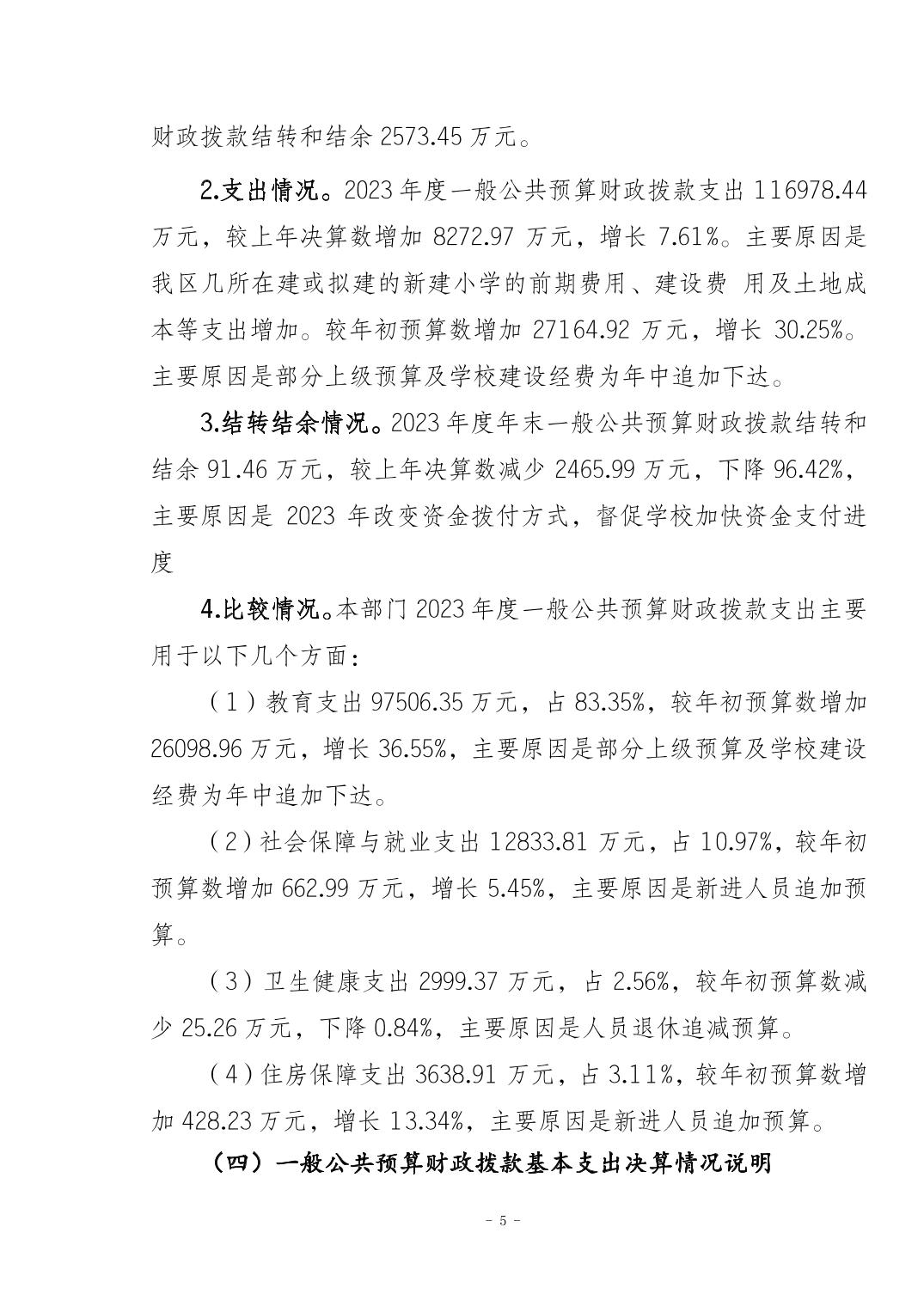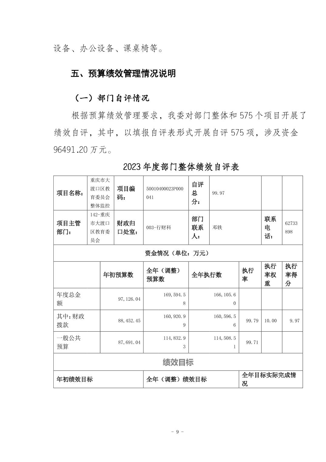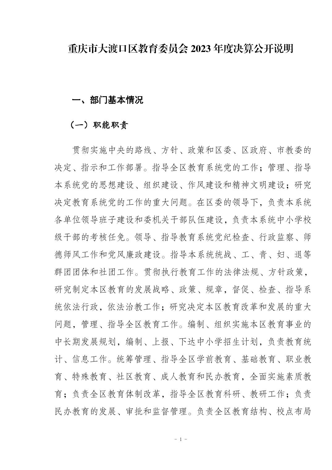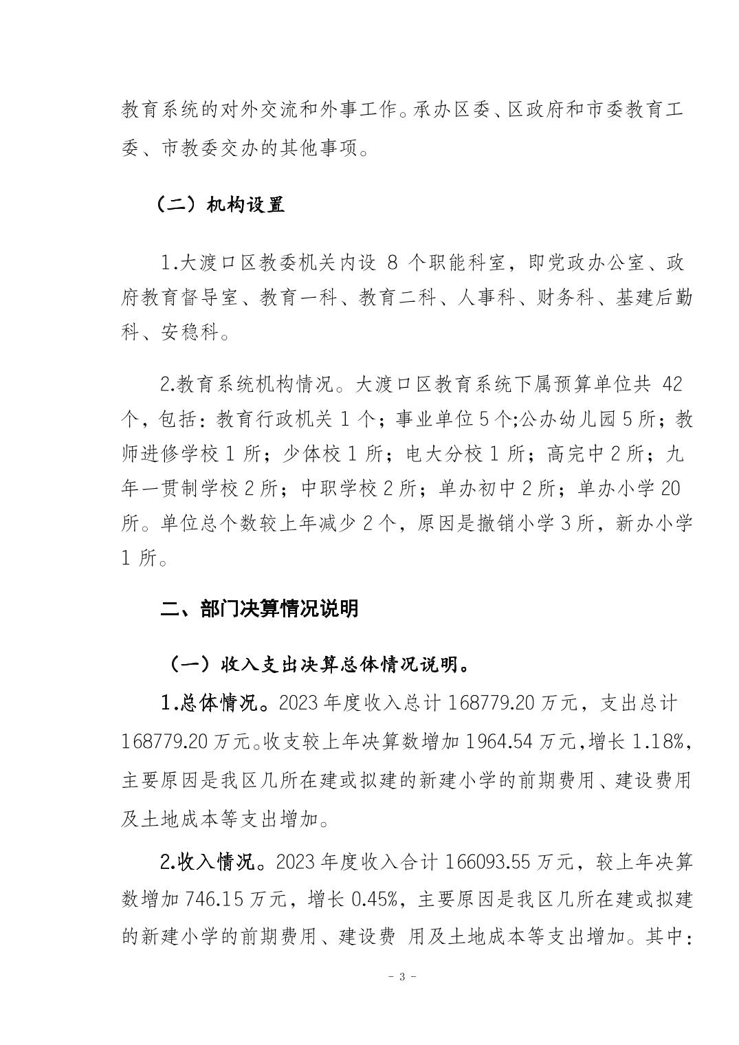 重庆市大渡口区教育委员会2023年度决算公开说明