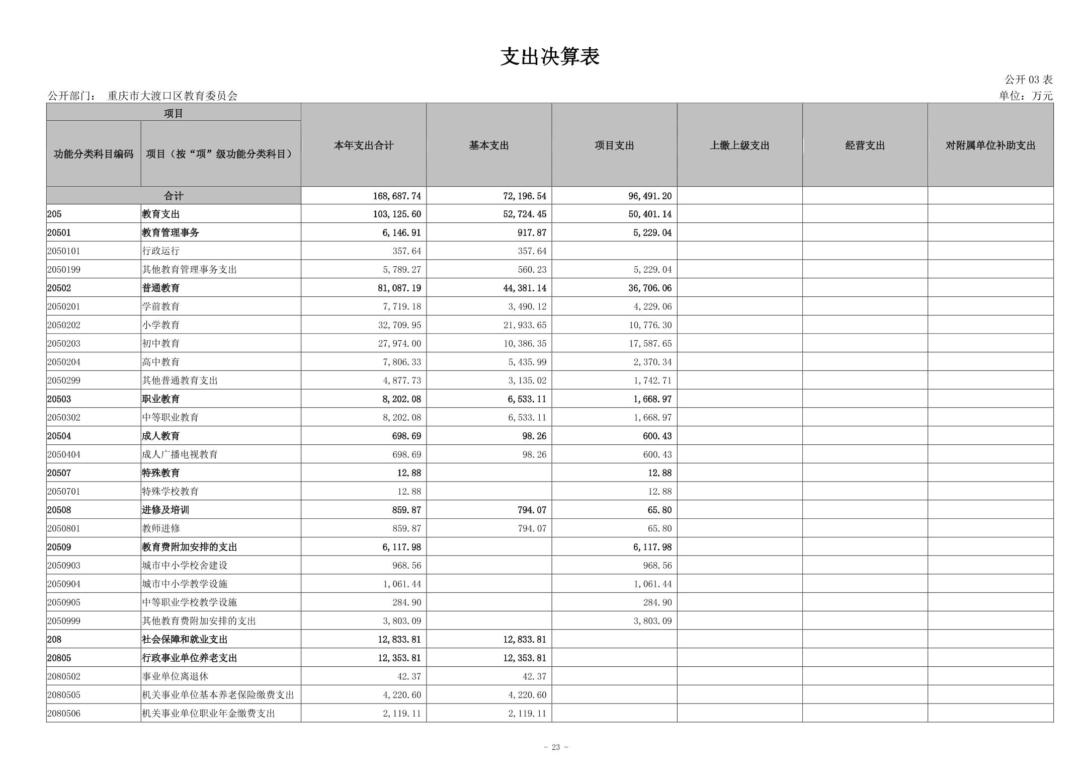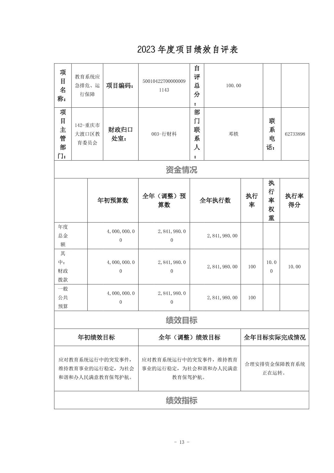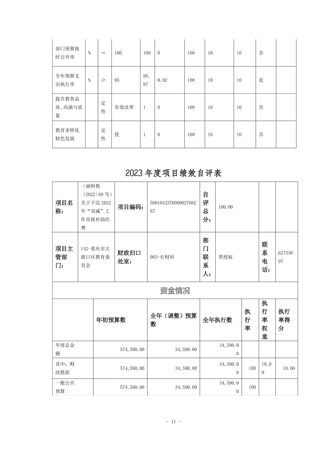 重庆市大渡口区教育委员会2023年度决算公开说明