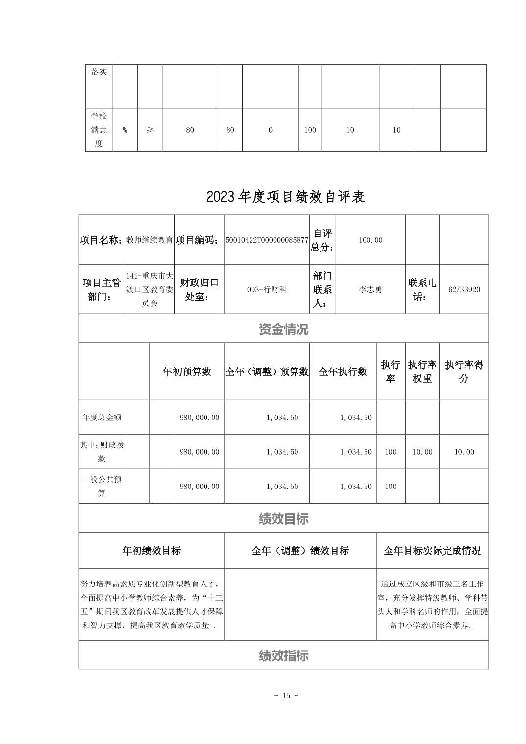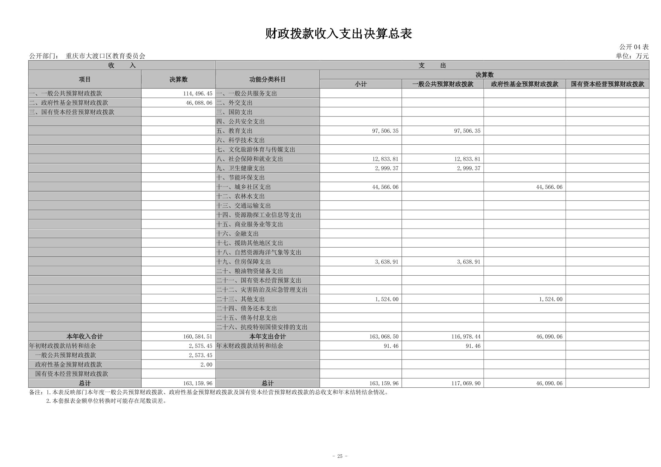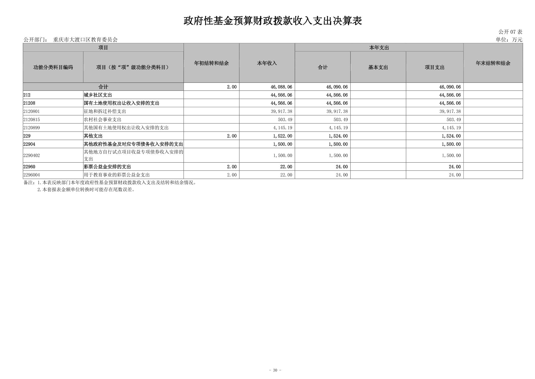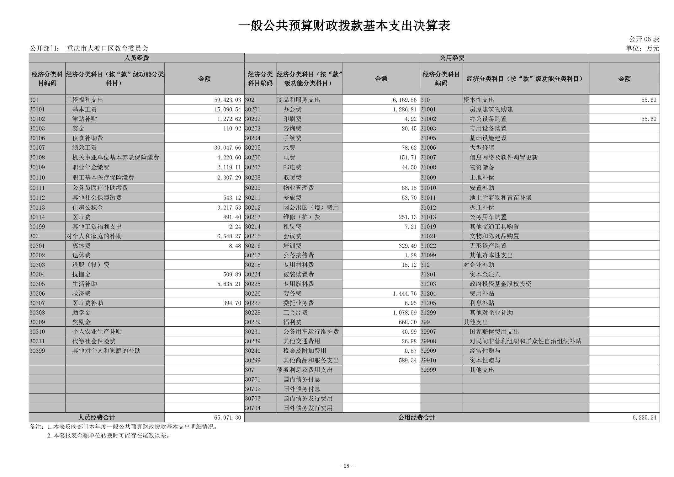 重庆市大渡口区教育委员会2023年度决算公开说明