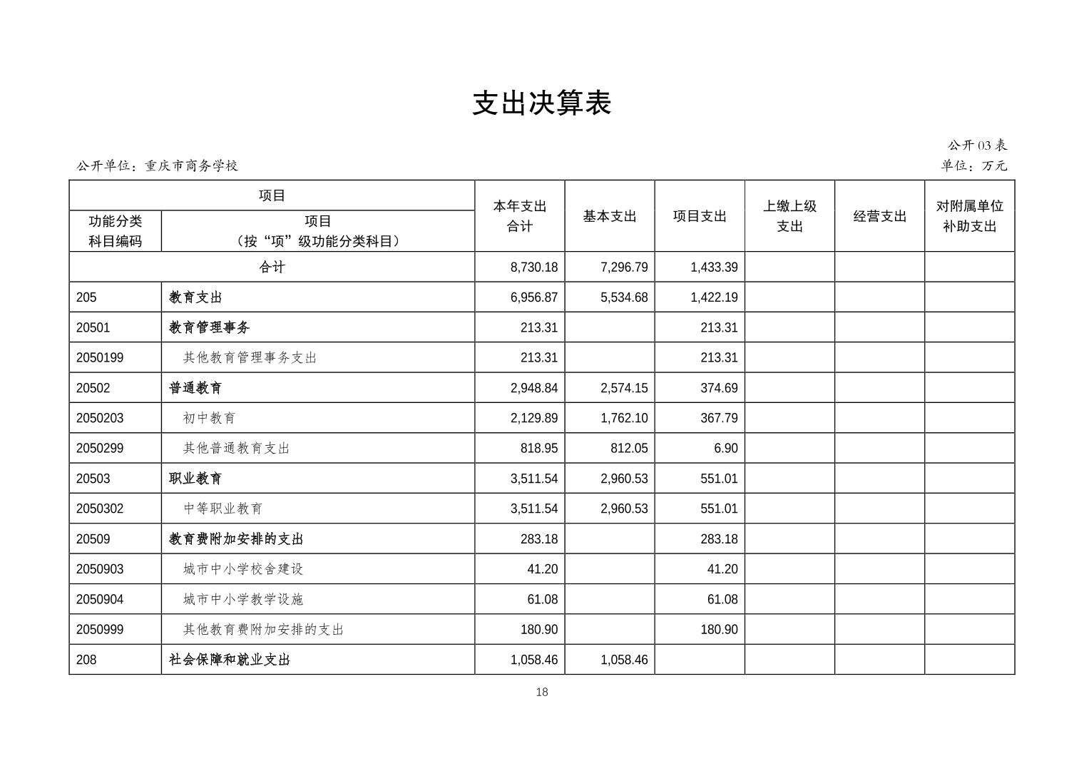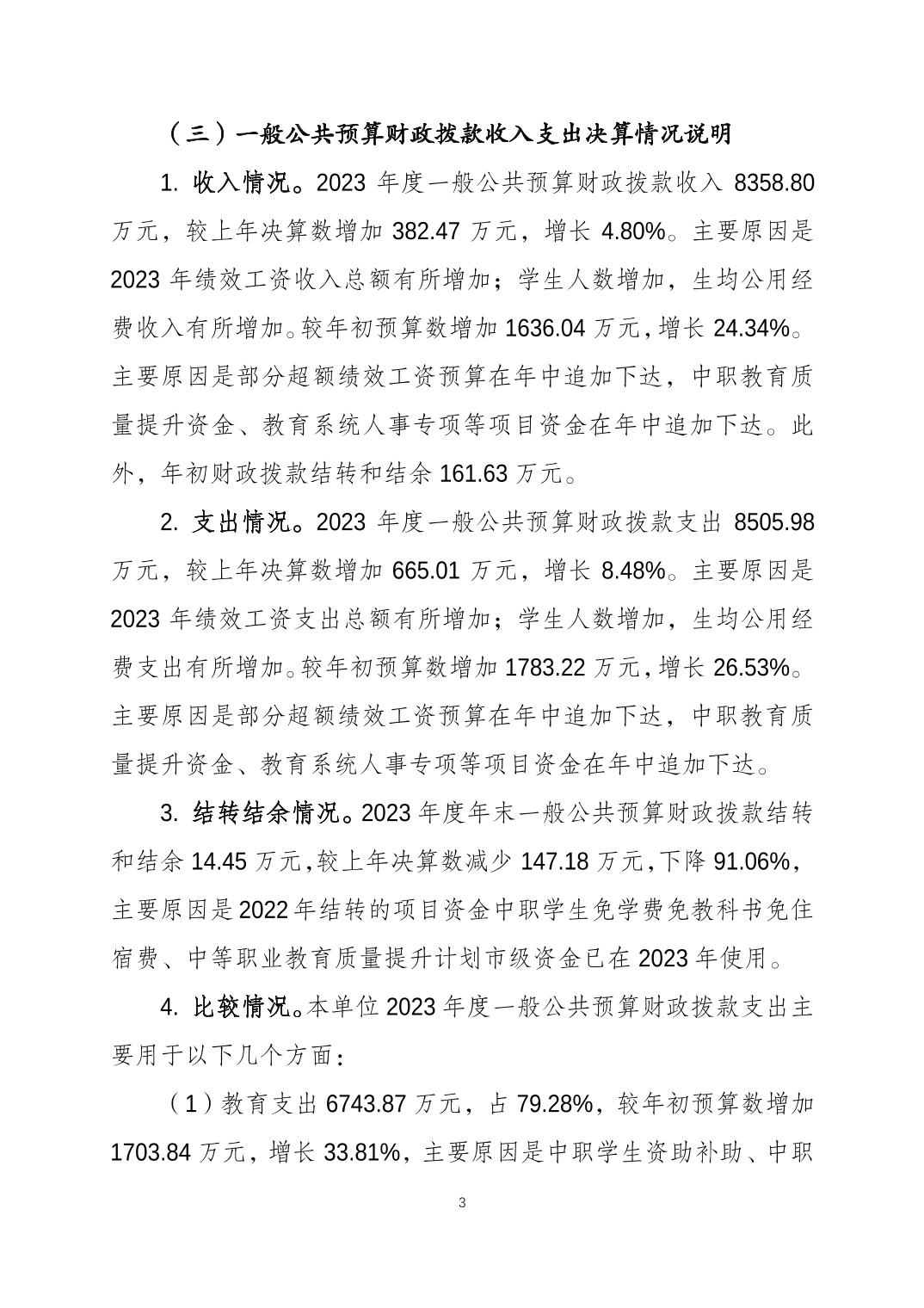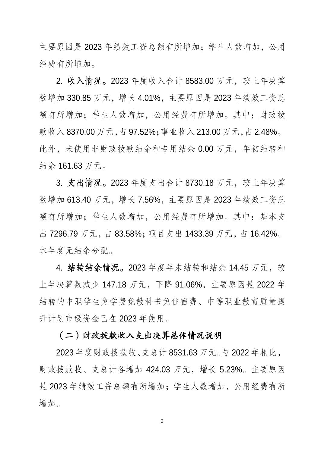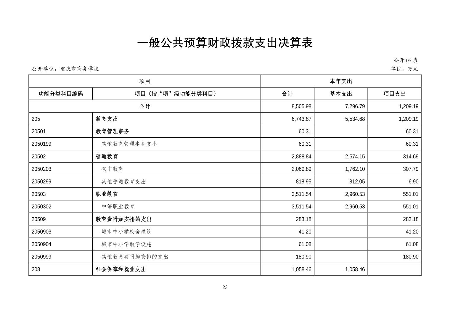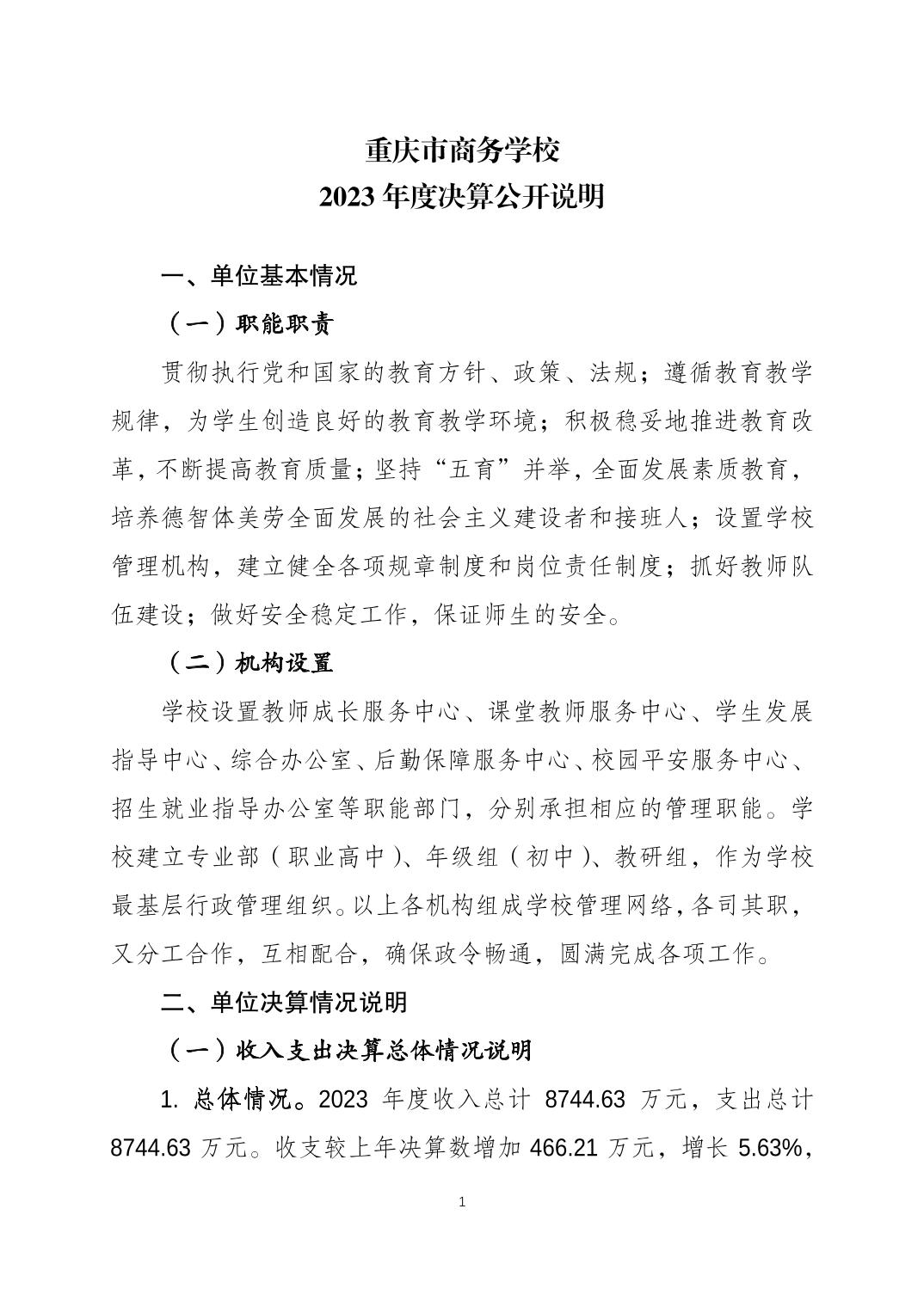 重庆市商务学校2023年度决算公开说明