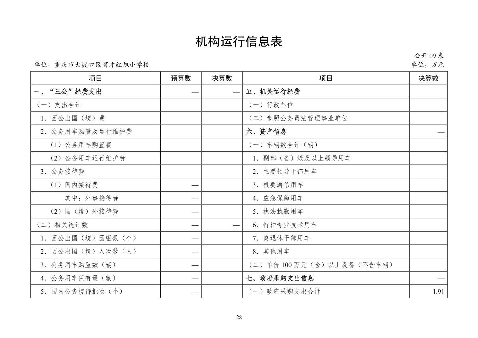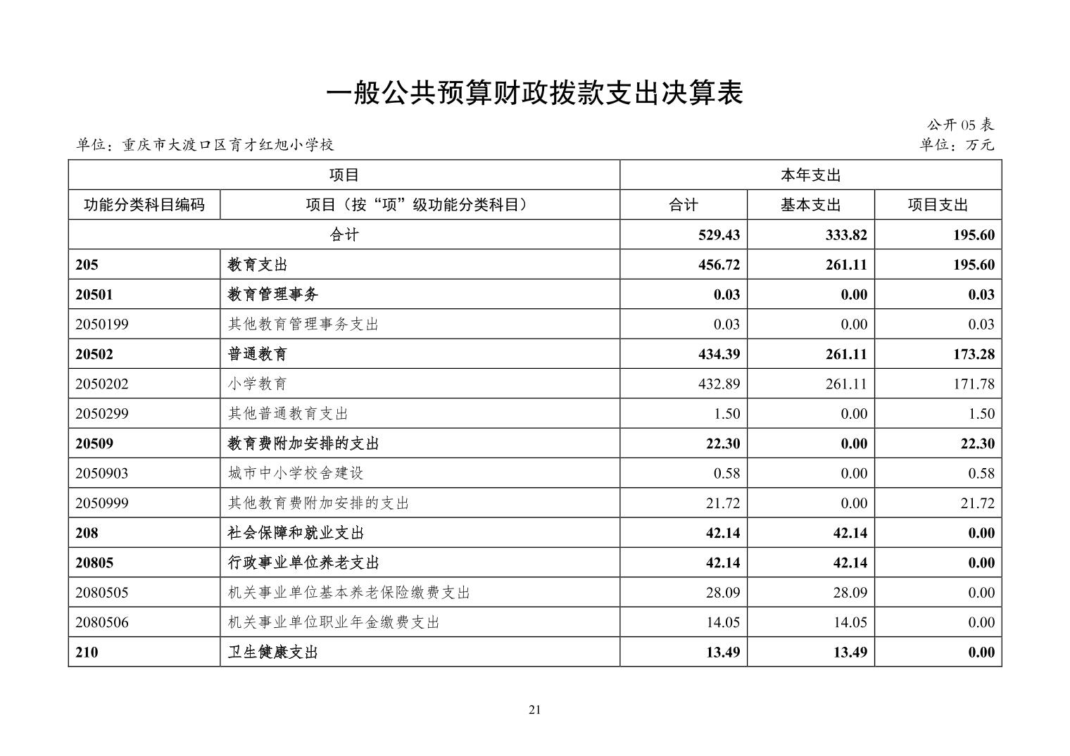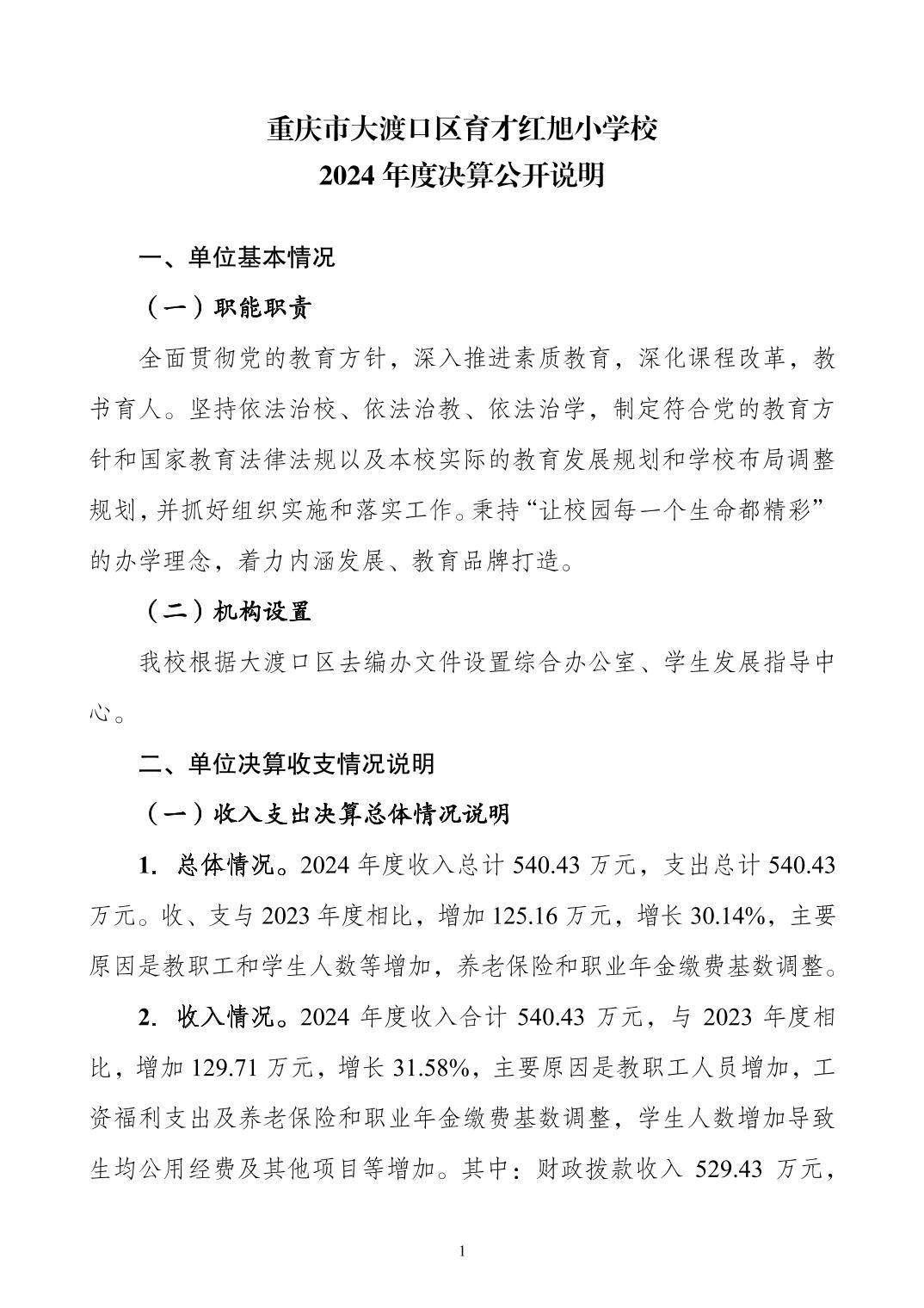 重庆市大渡口区育才红旭小学校2024年度决算公开说明