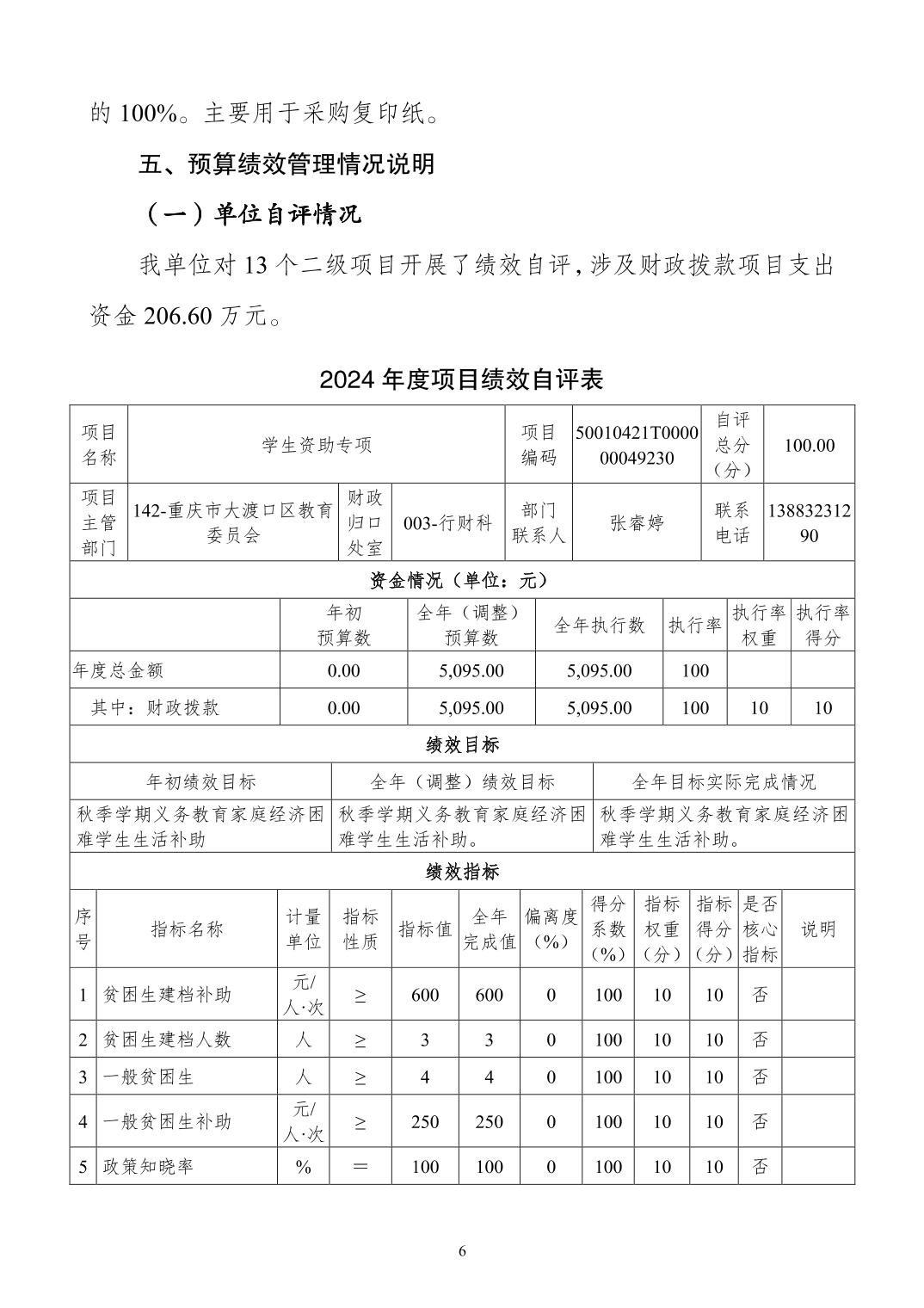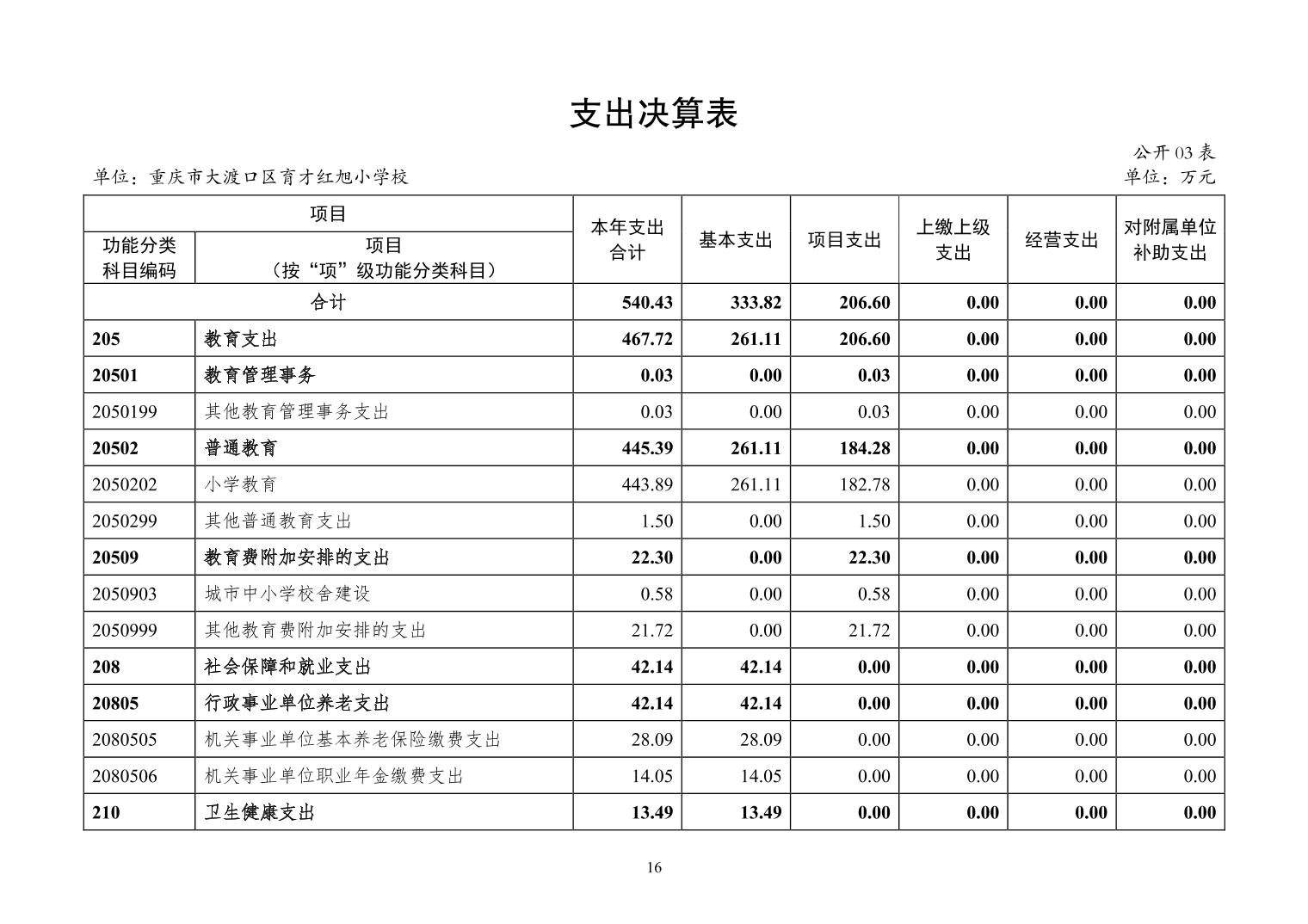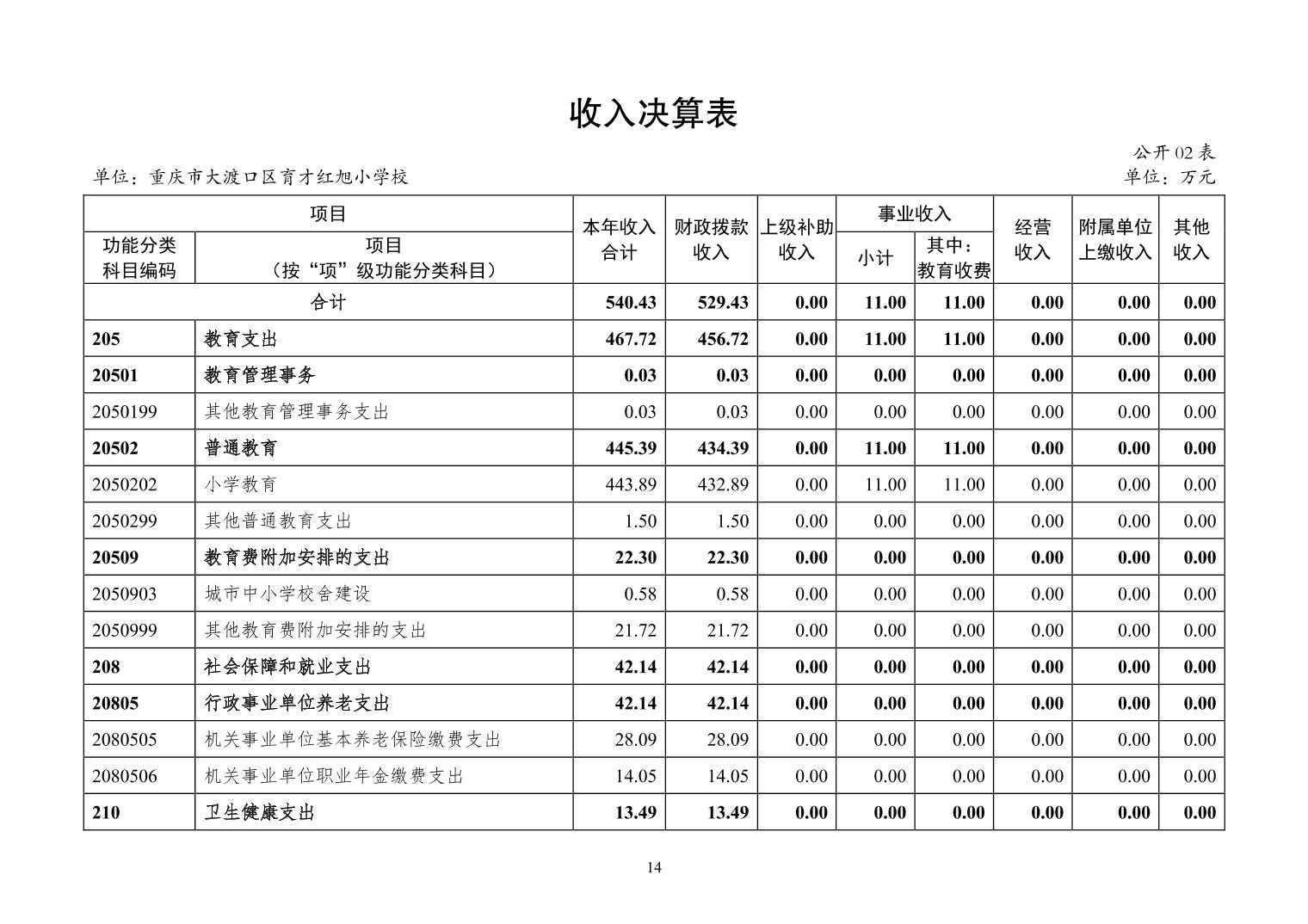 重庆市大渡口区育才红旭小学校2024年度决算公开说明