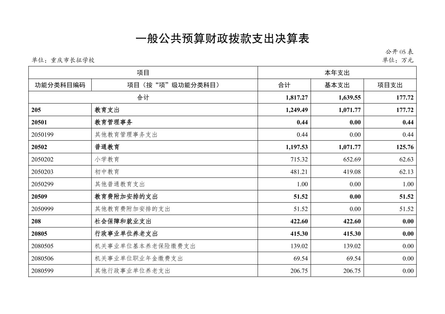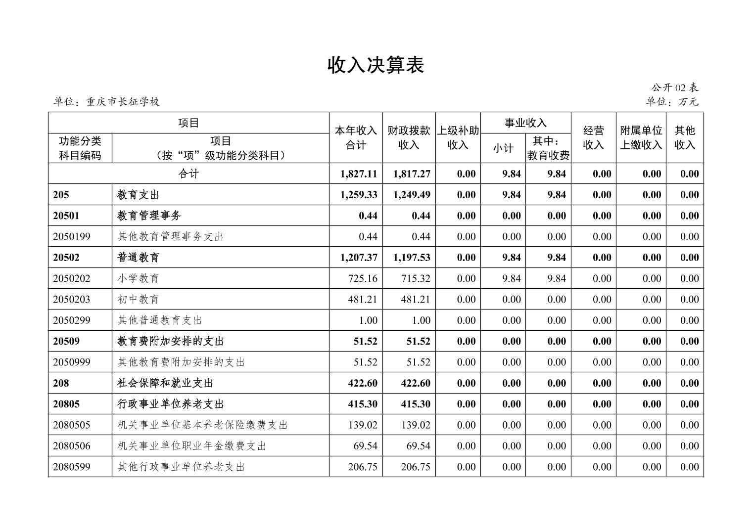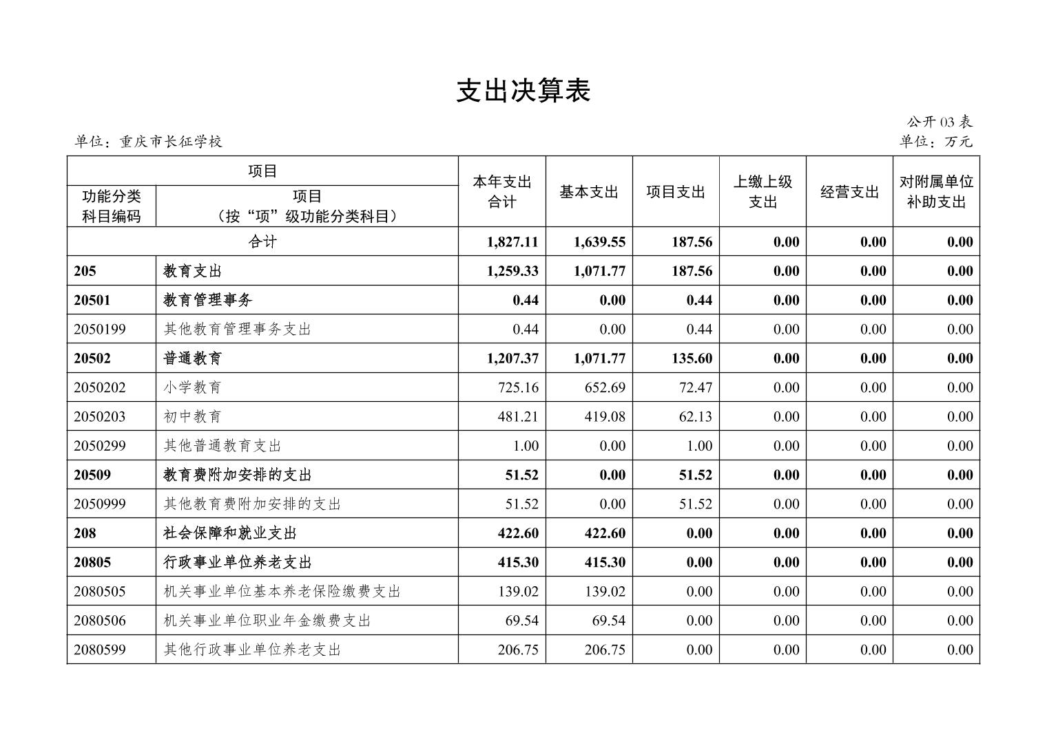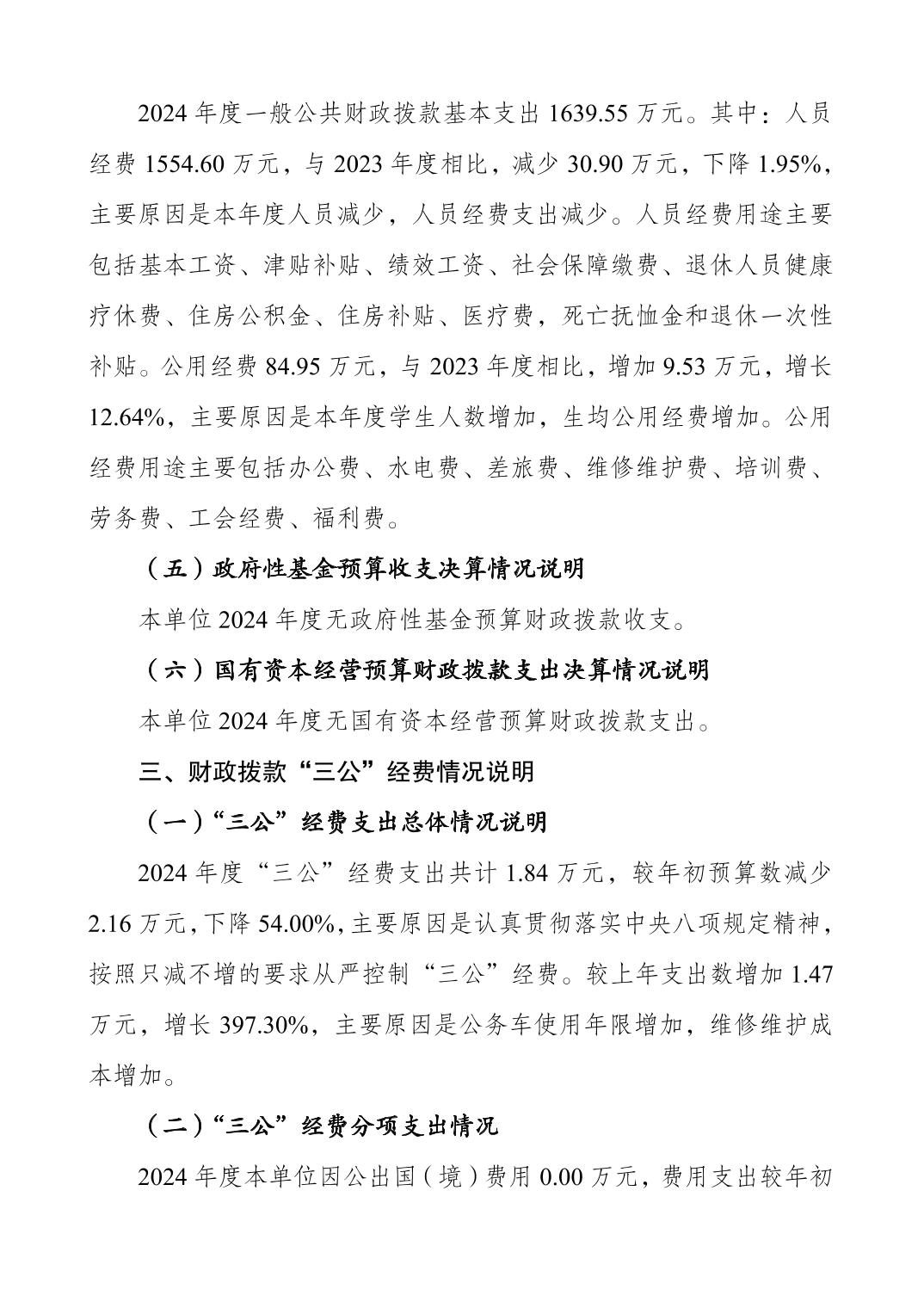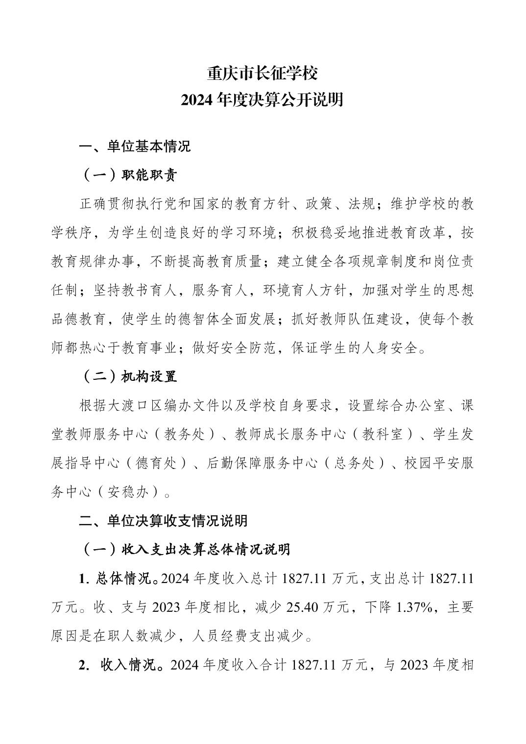重庆市长征学校2024年度决算公开说明