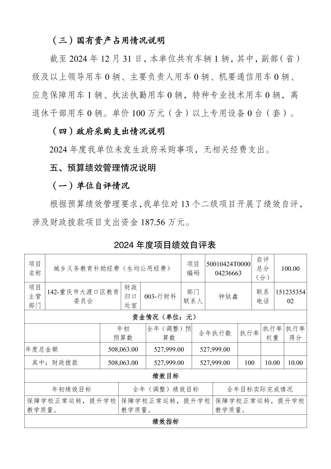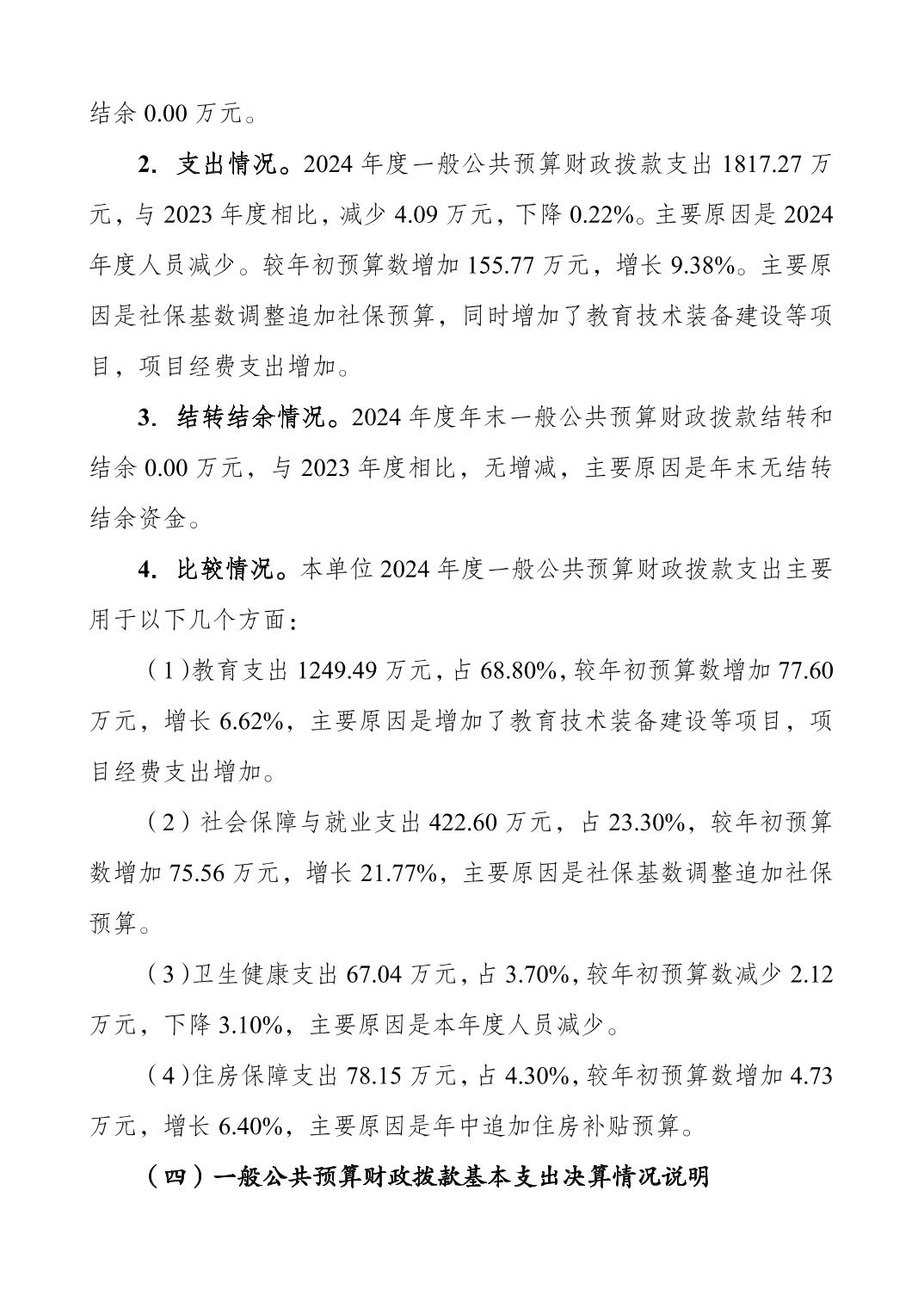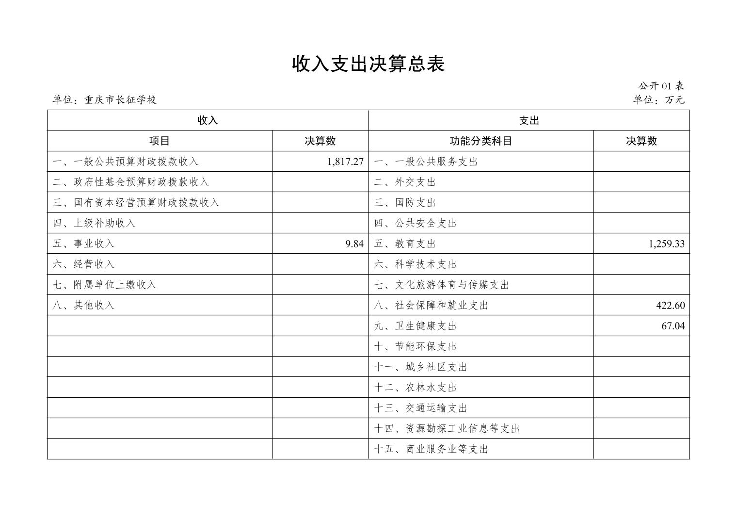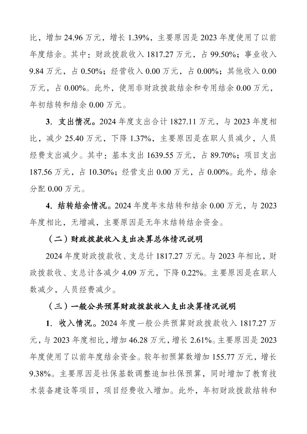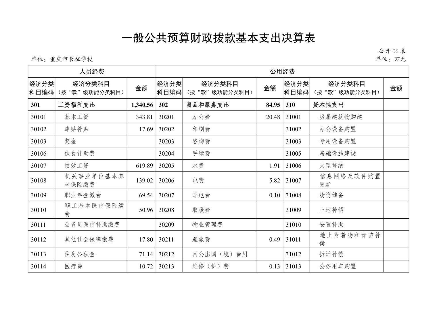 重庆市长征学校2024年度决算公开说明