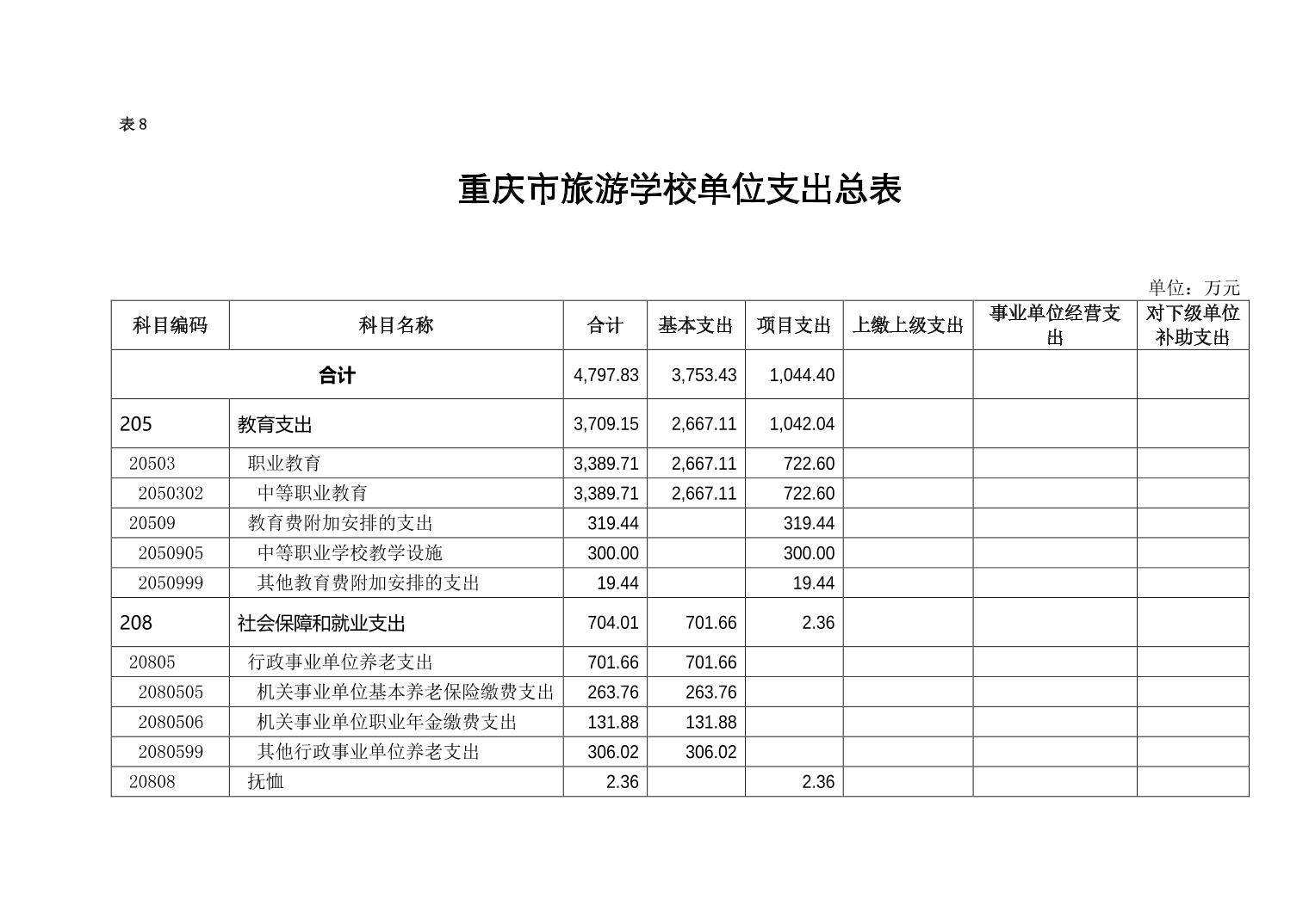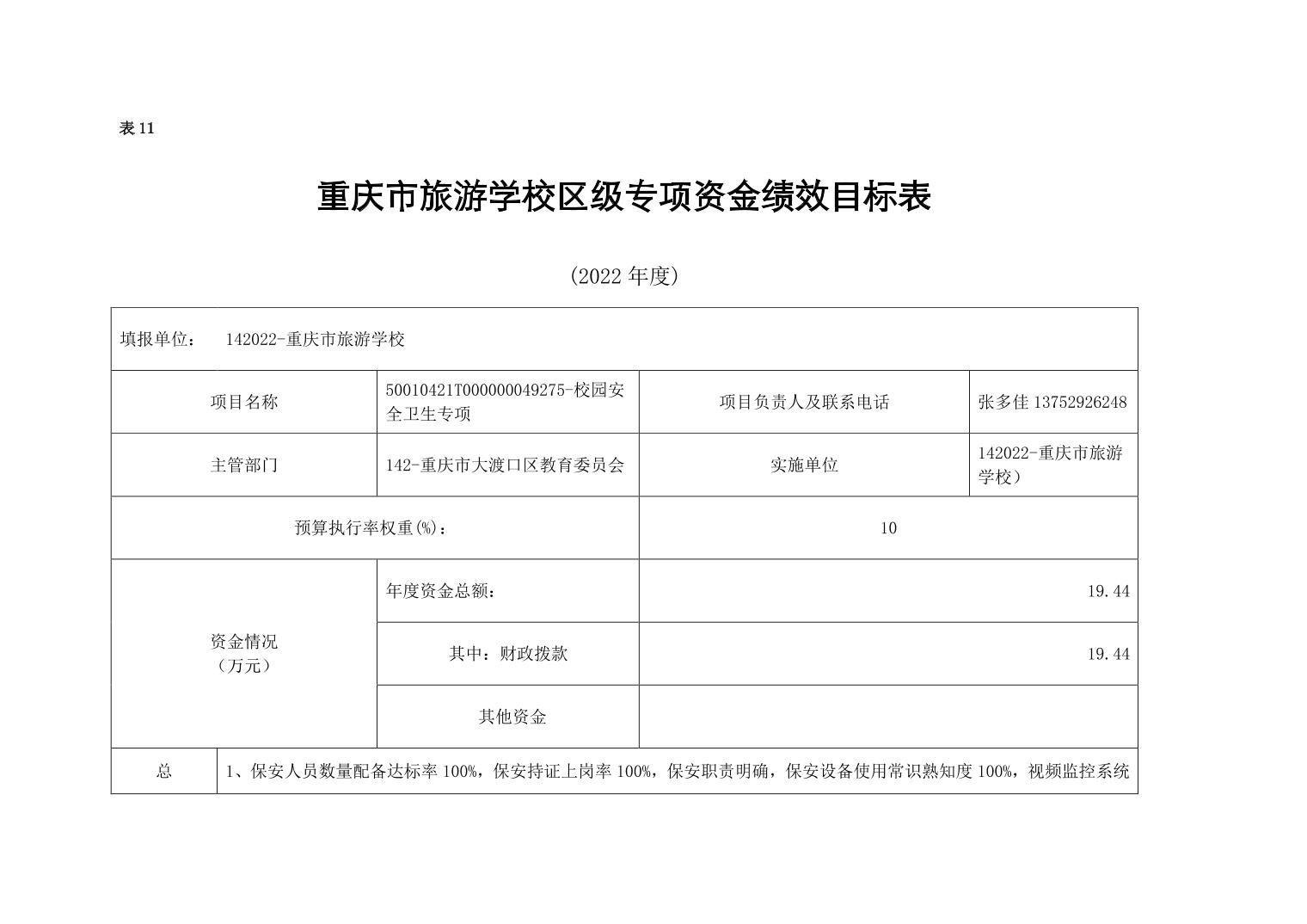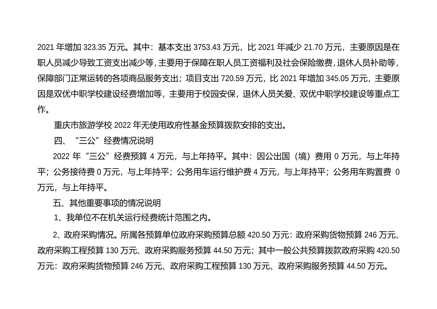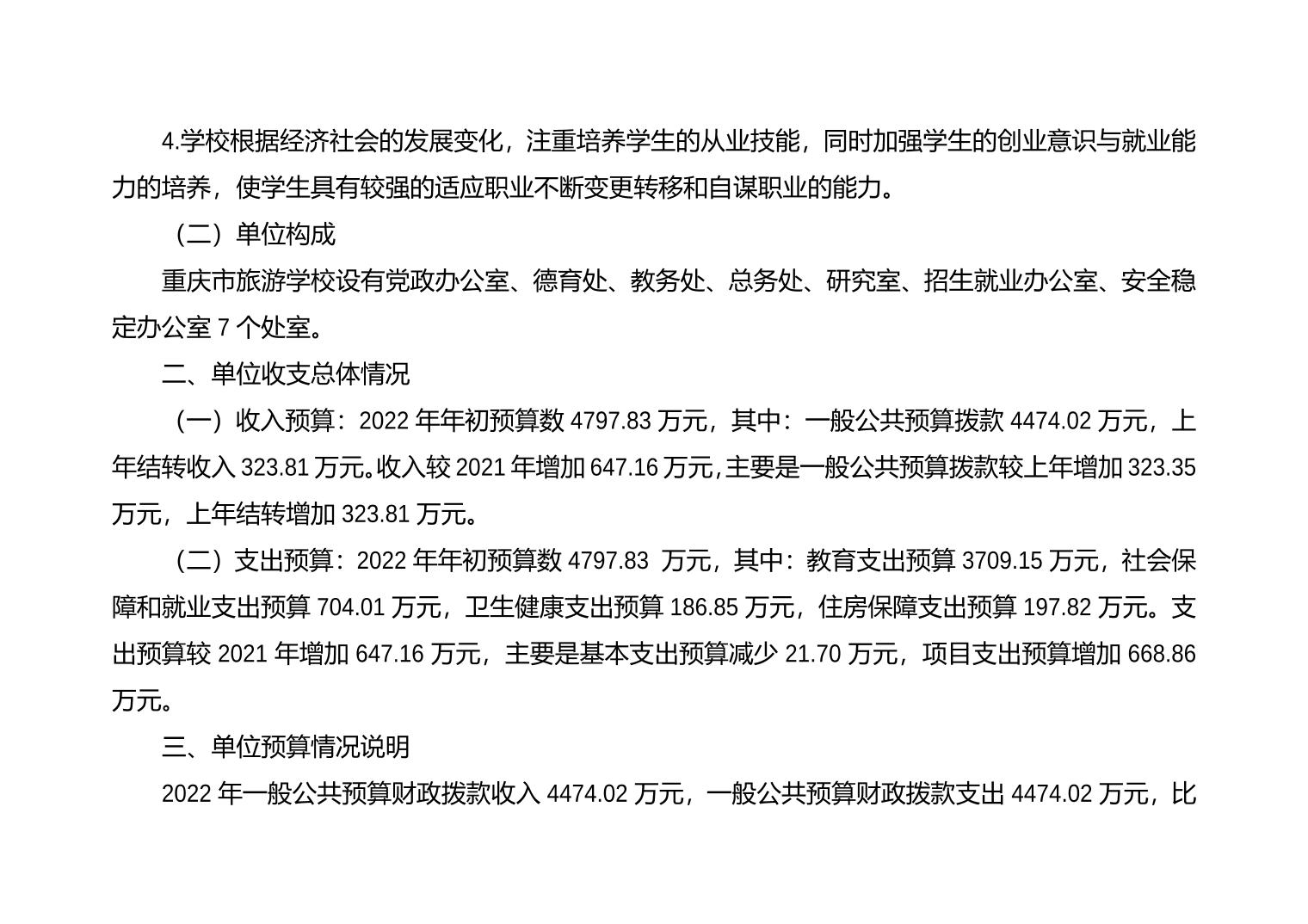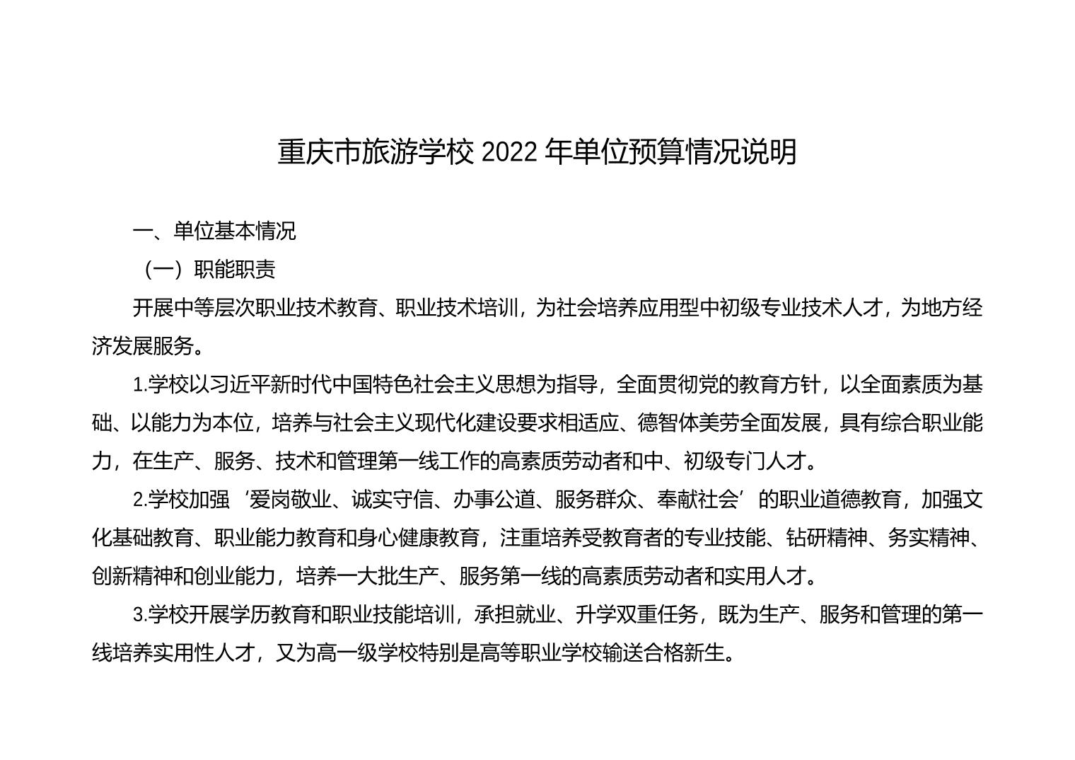 重庆市旅游学校2022年单位预算情况说明