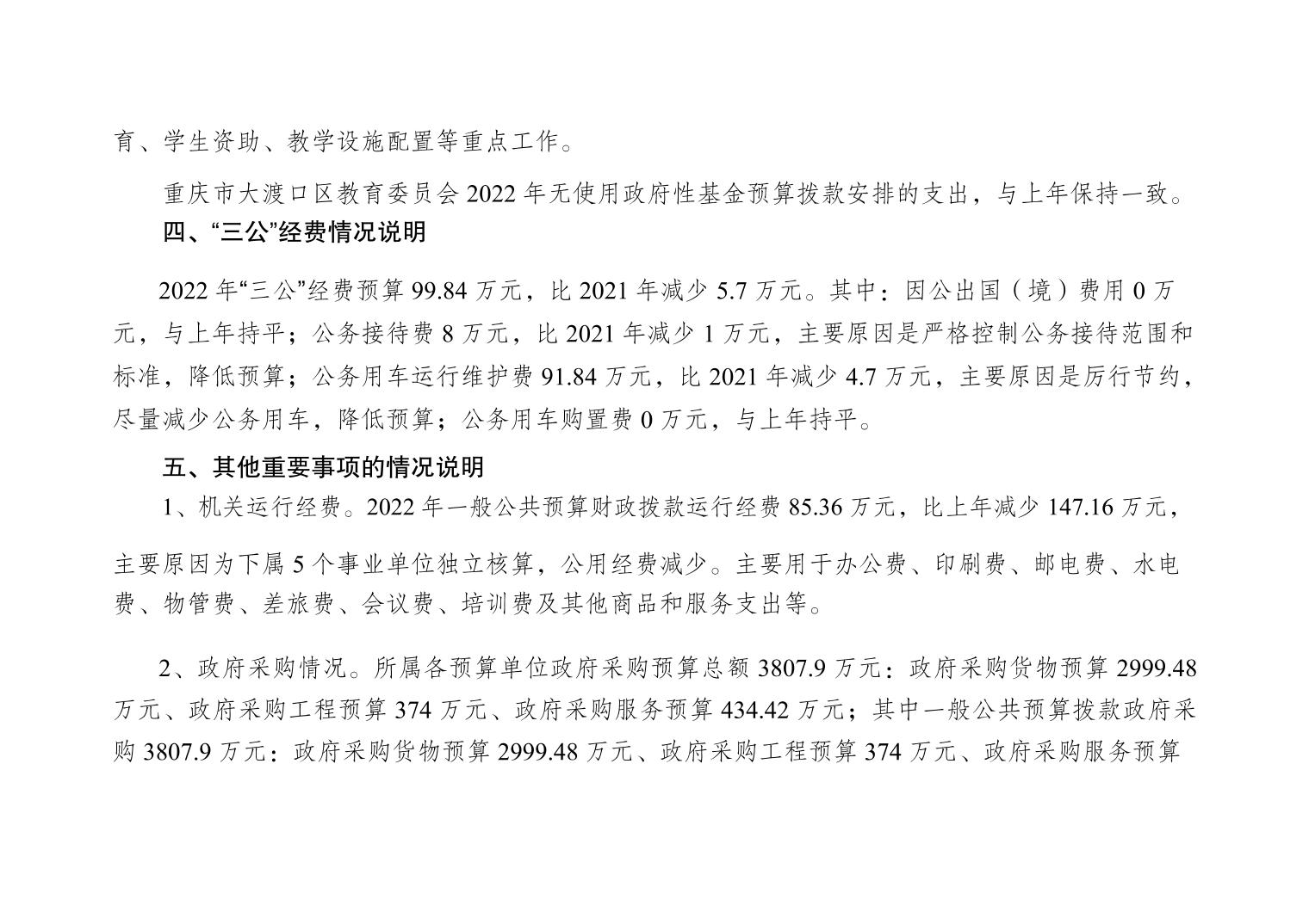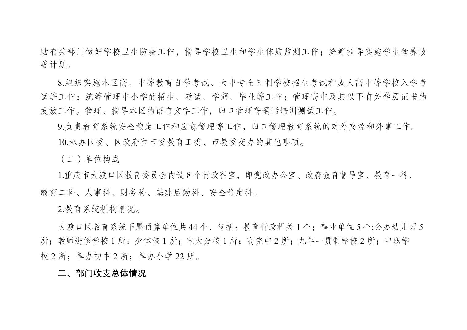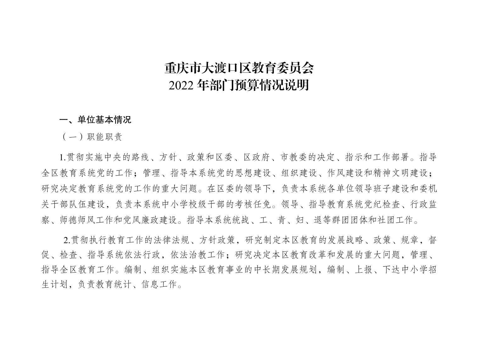 重庆市大渡口区教育委员会2022年部门预算情况说明