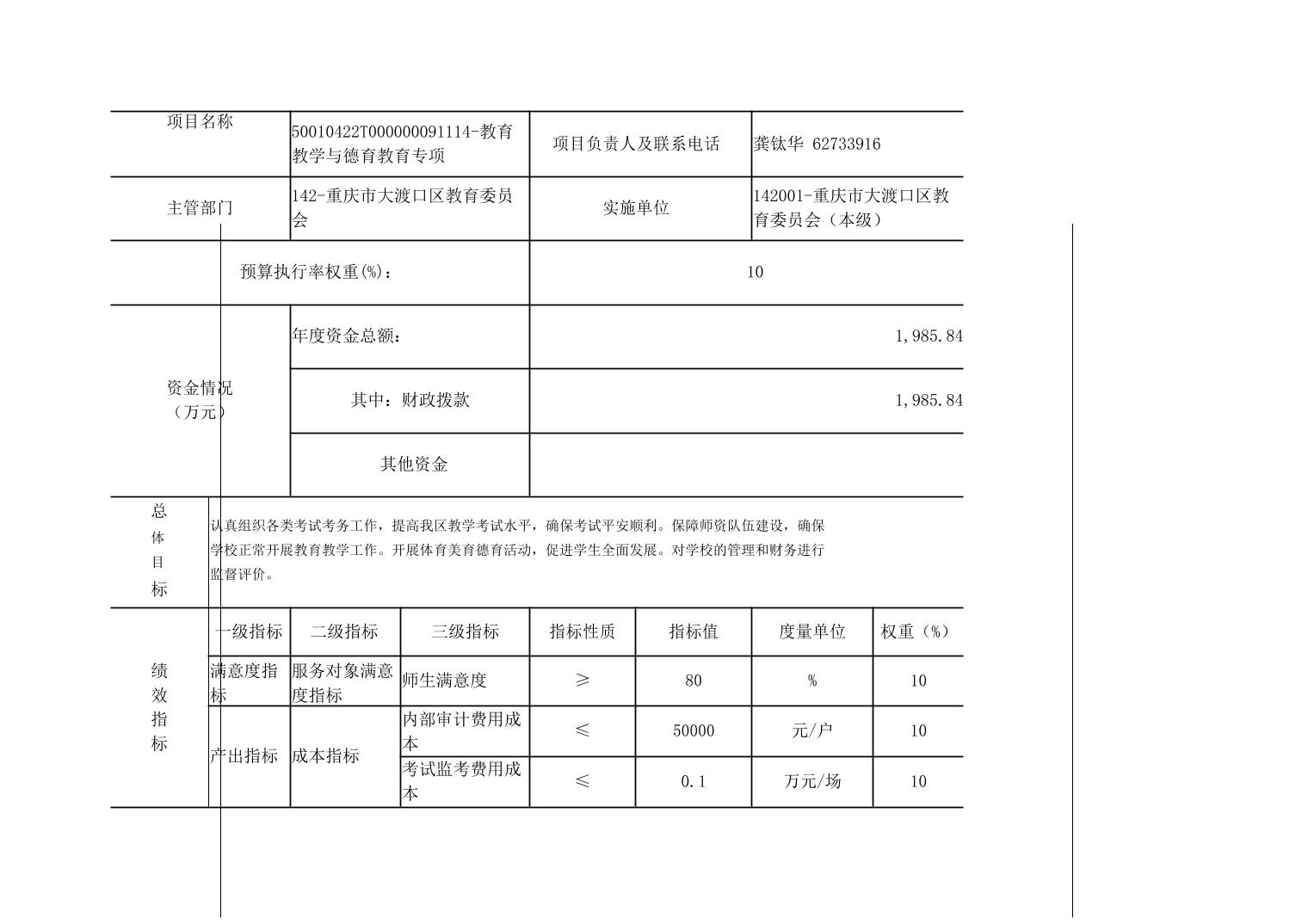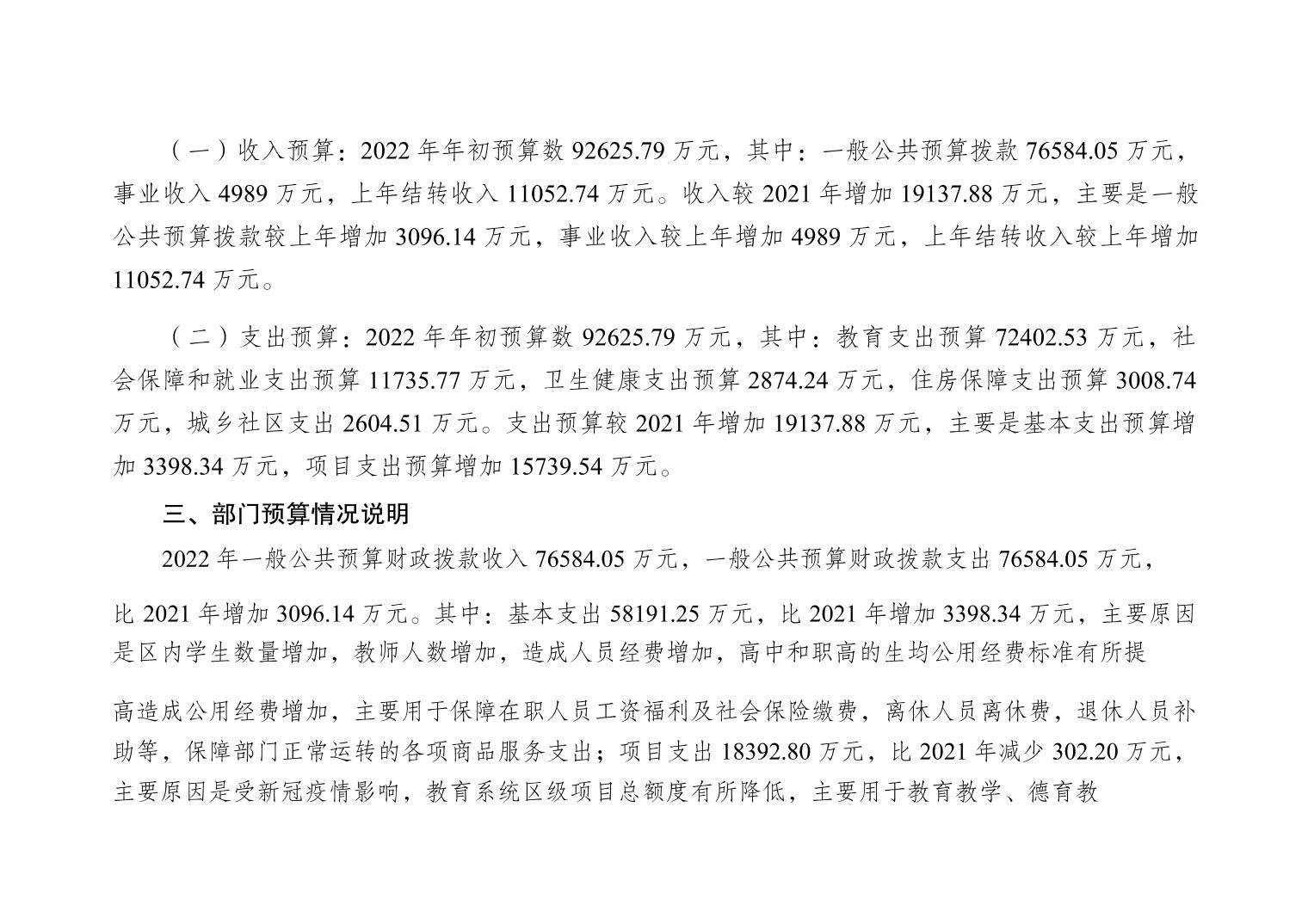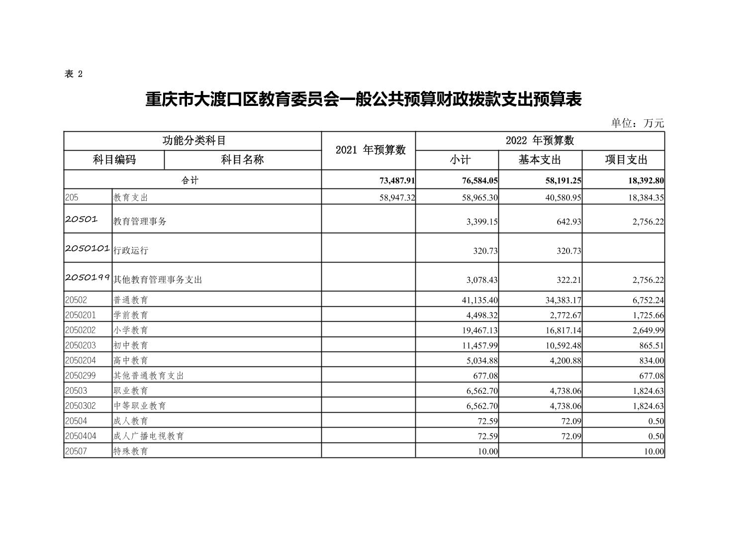 重庆市大渡口区教育委员会2022年部门预算情况说明