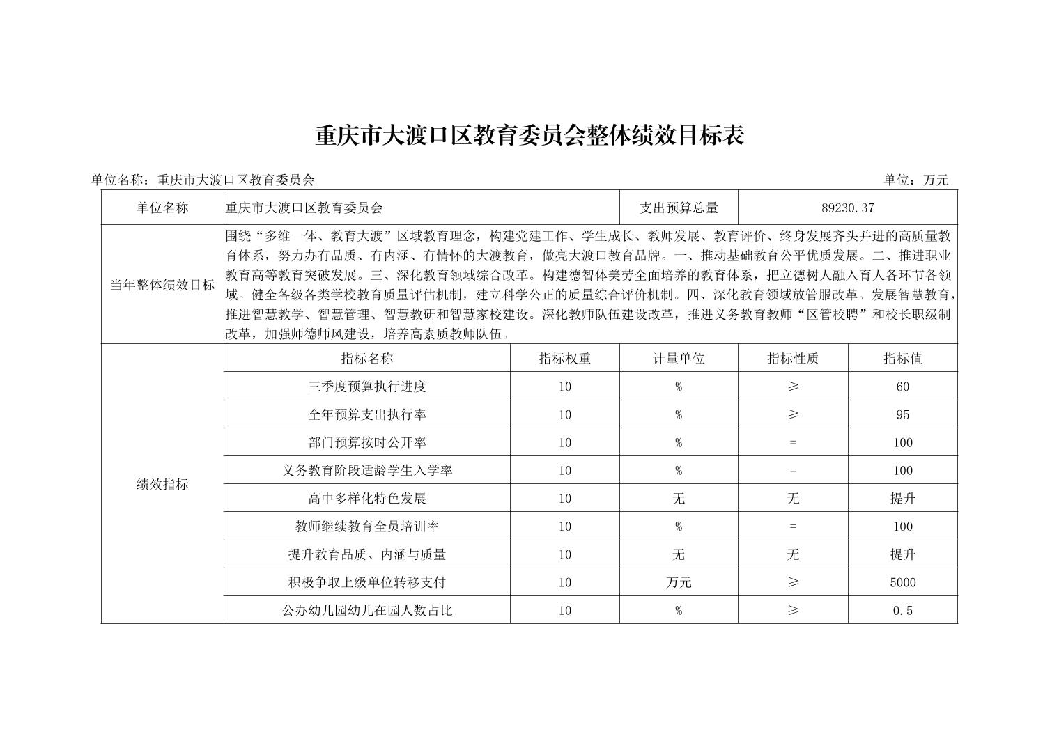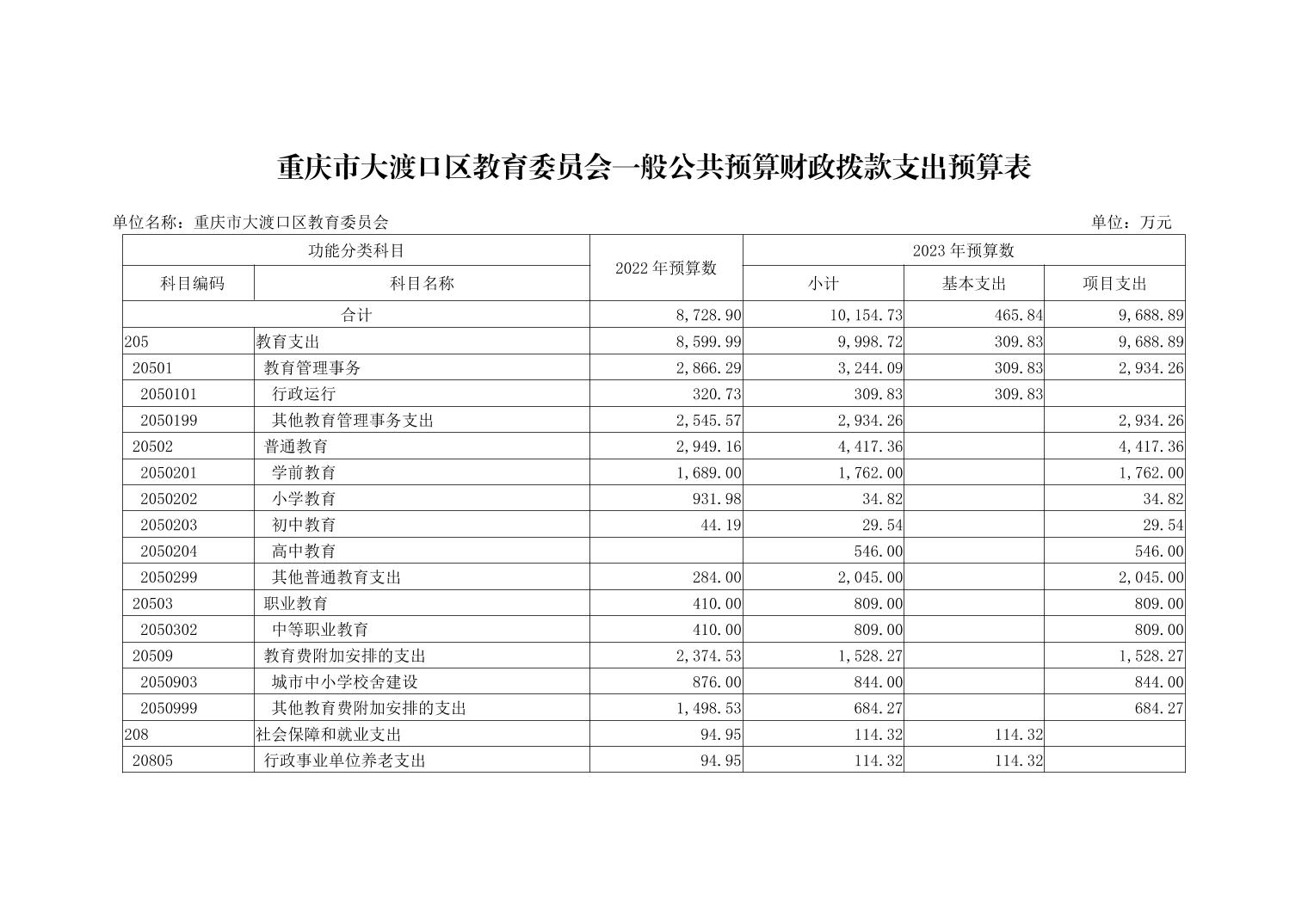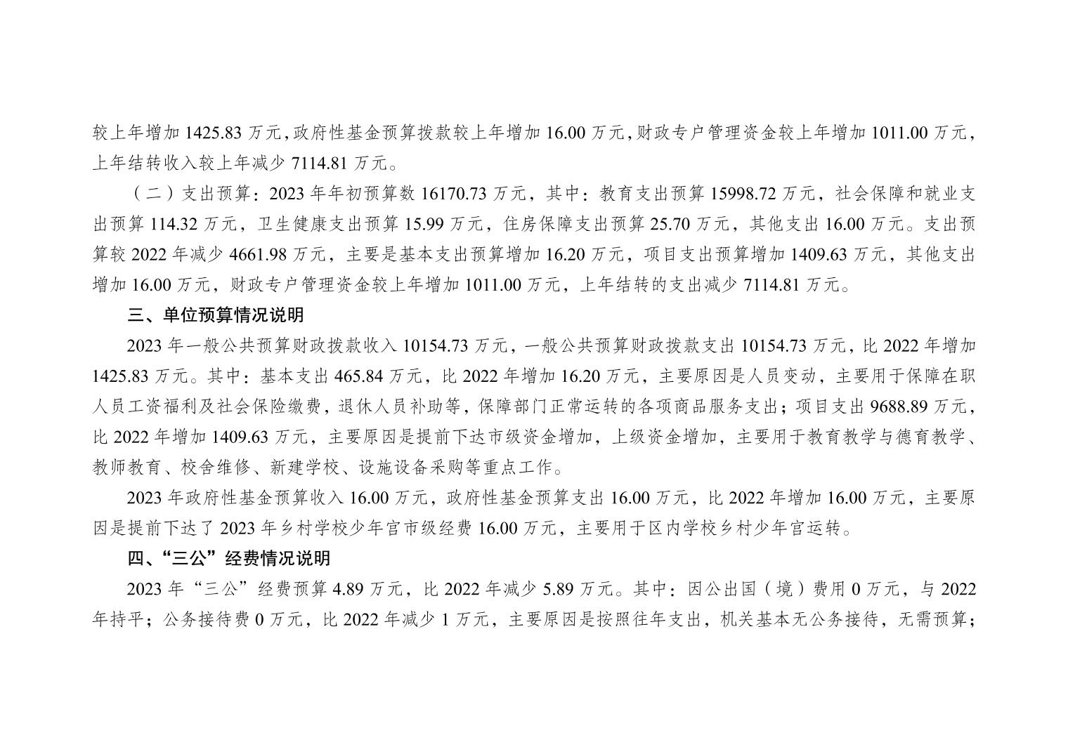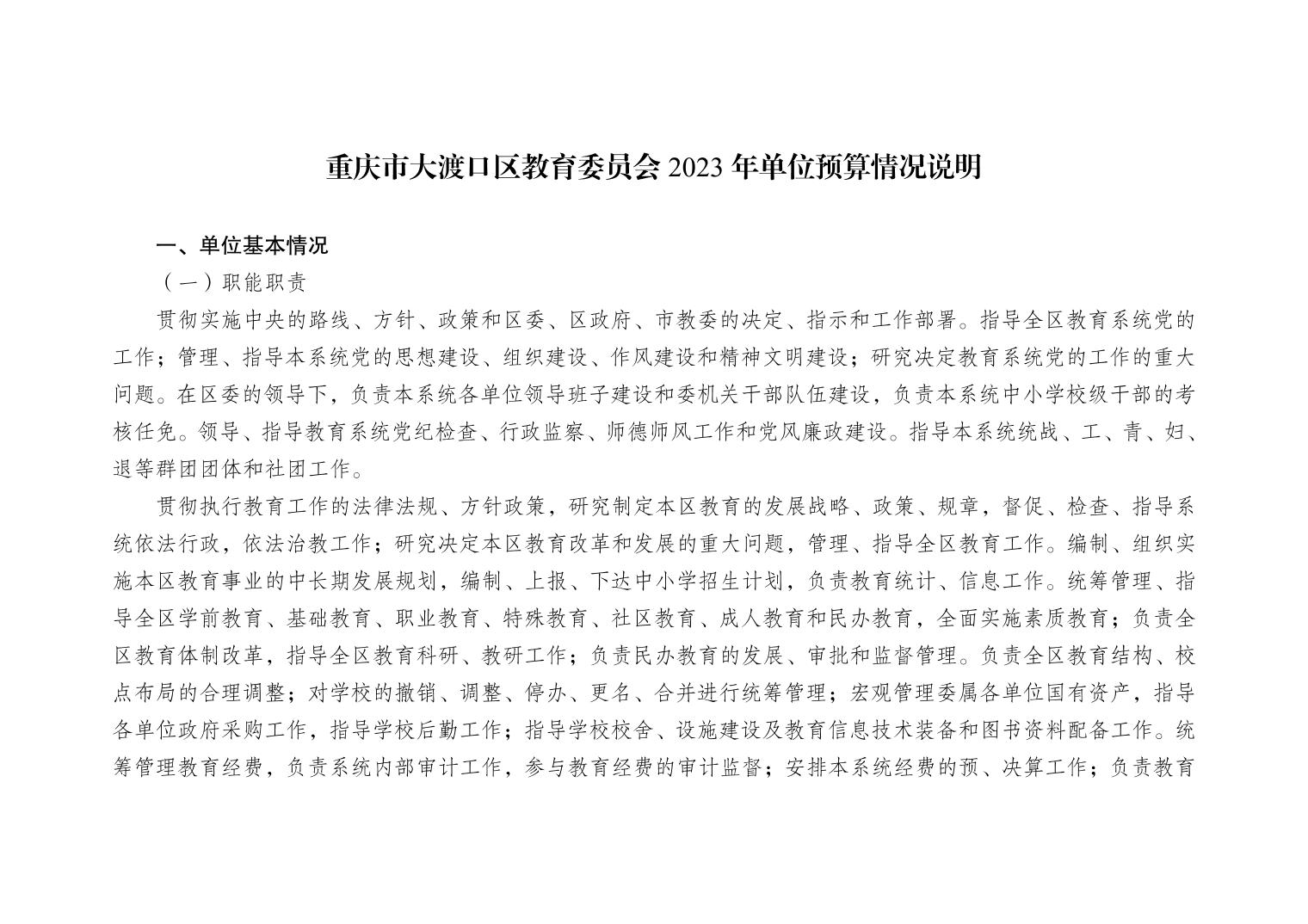 重庆市大渡口区教育委员会2023年单位预算情况说明