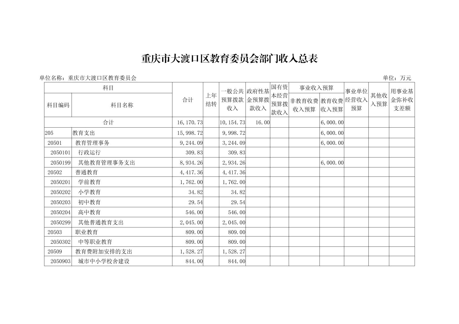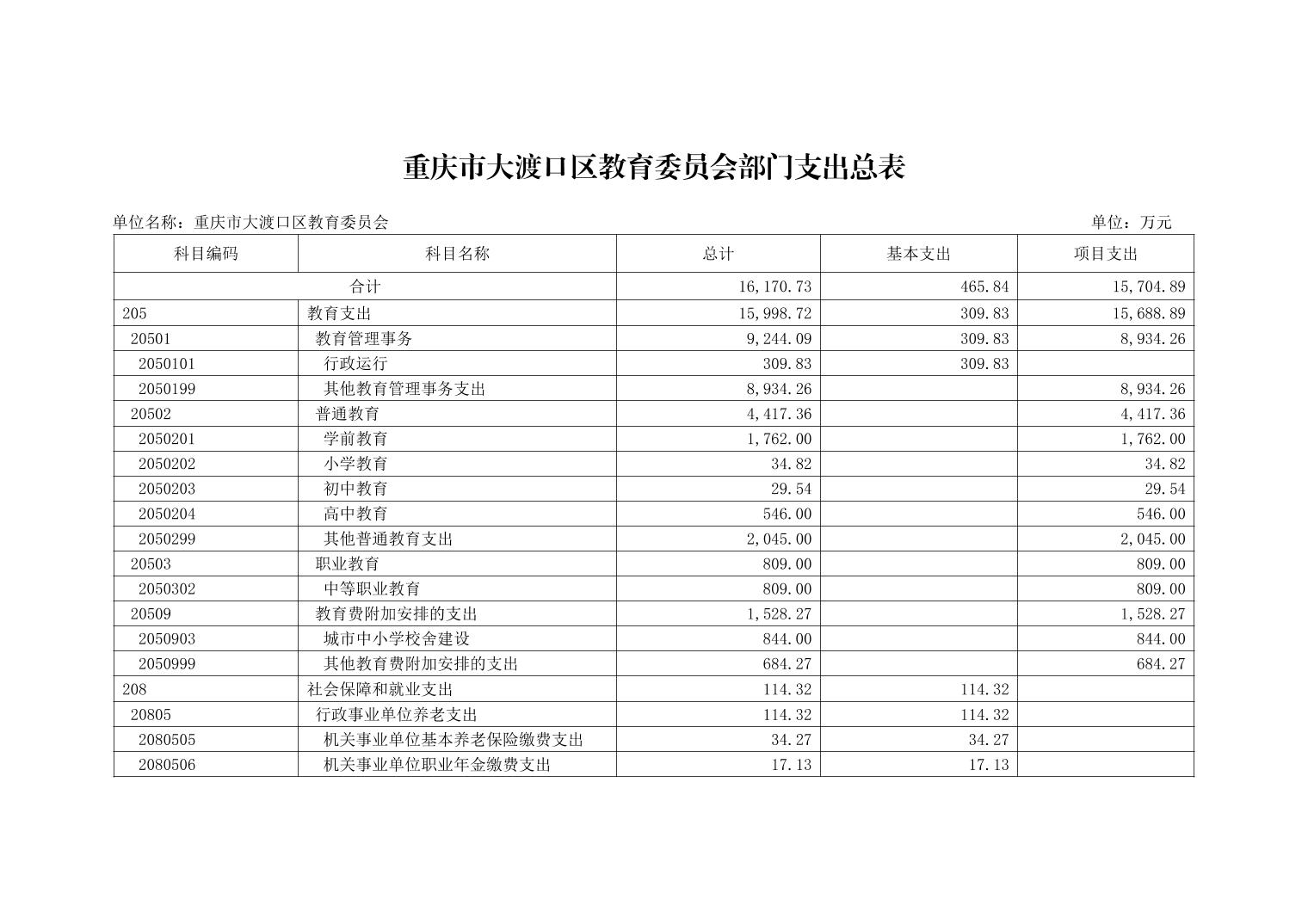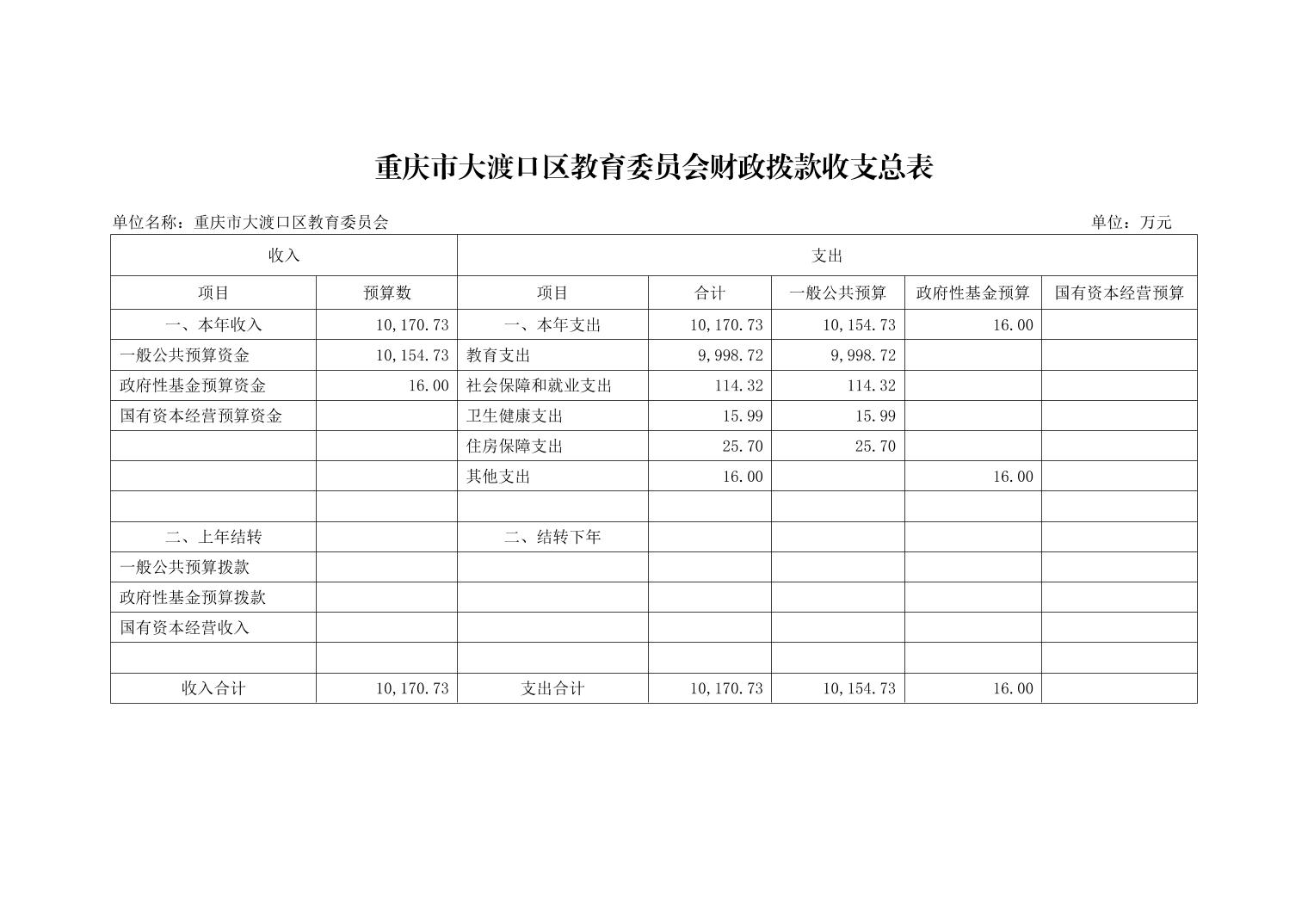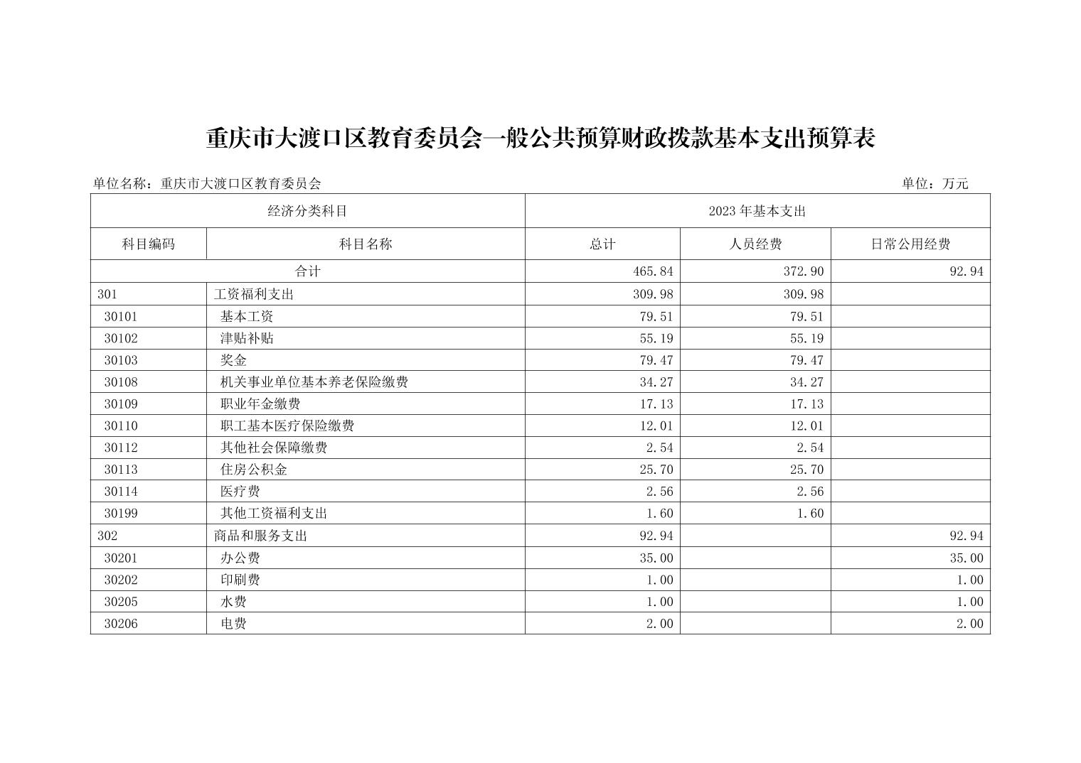 重庆市大渡口区教育委员会2023年单位预算情况说明