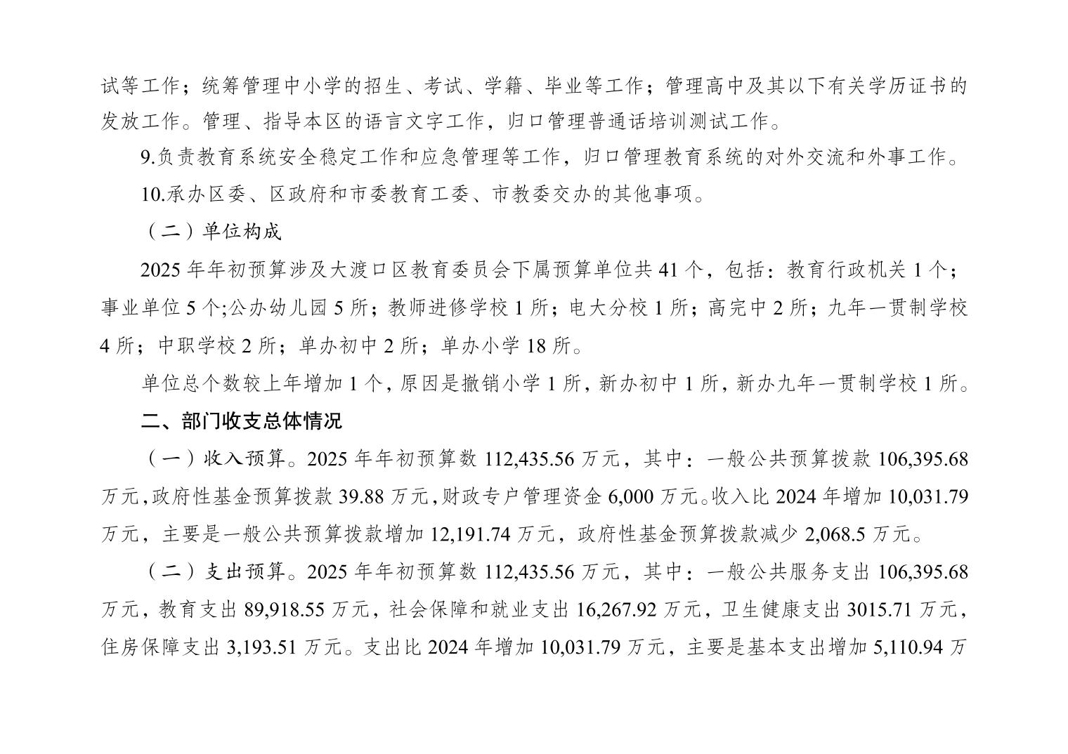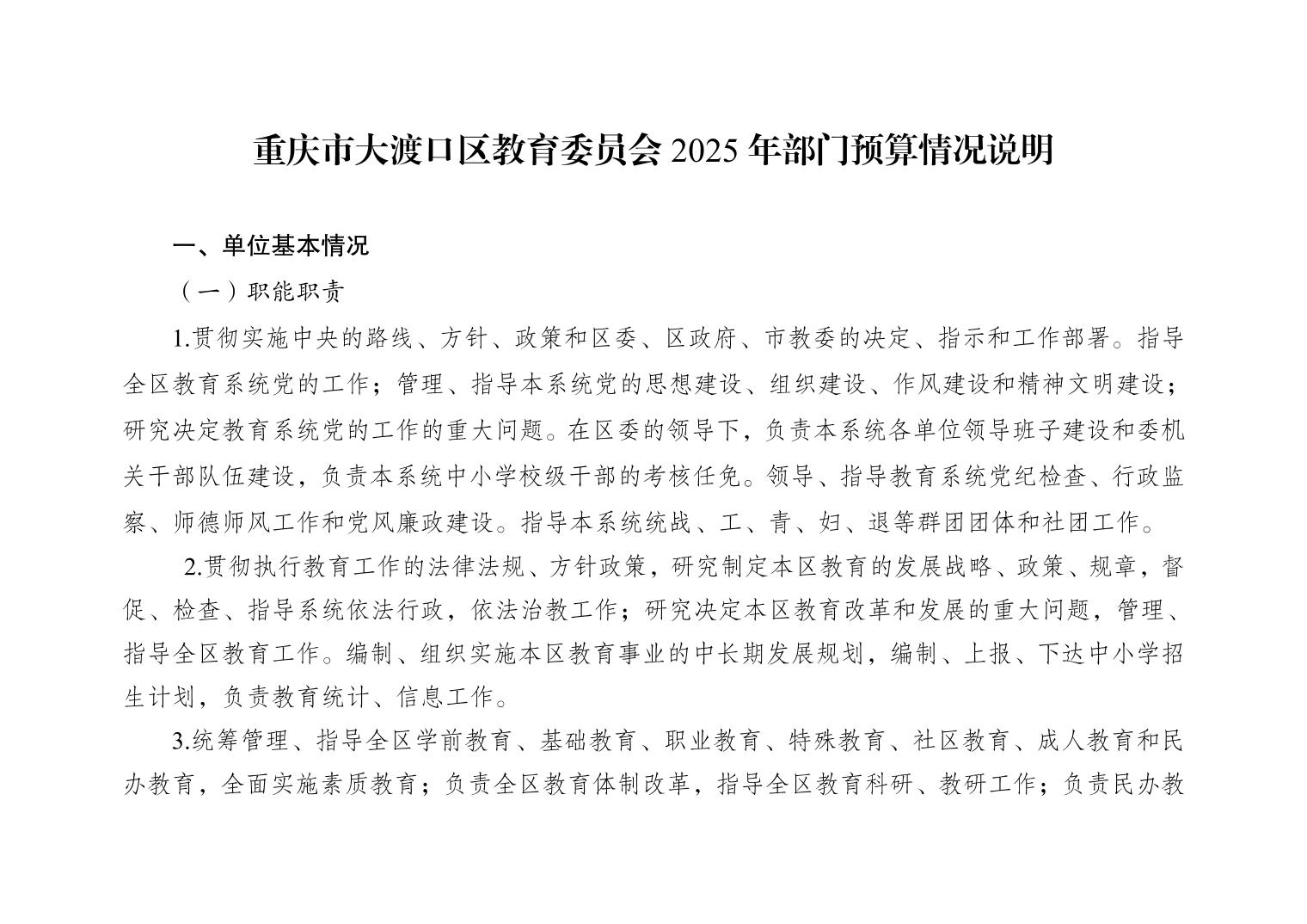 142重庆市大渡口区教育委员会2025年部门预算情况说明